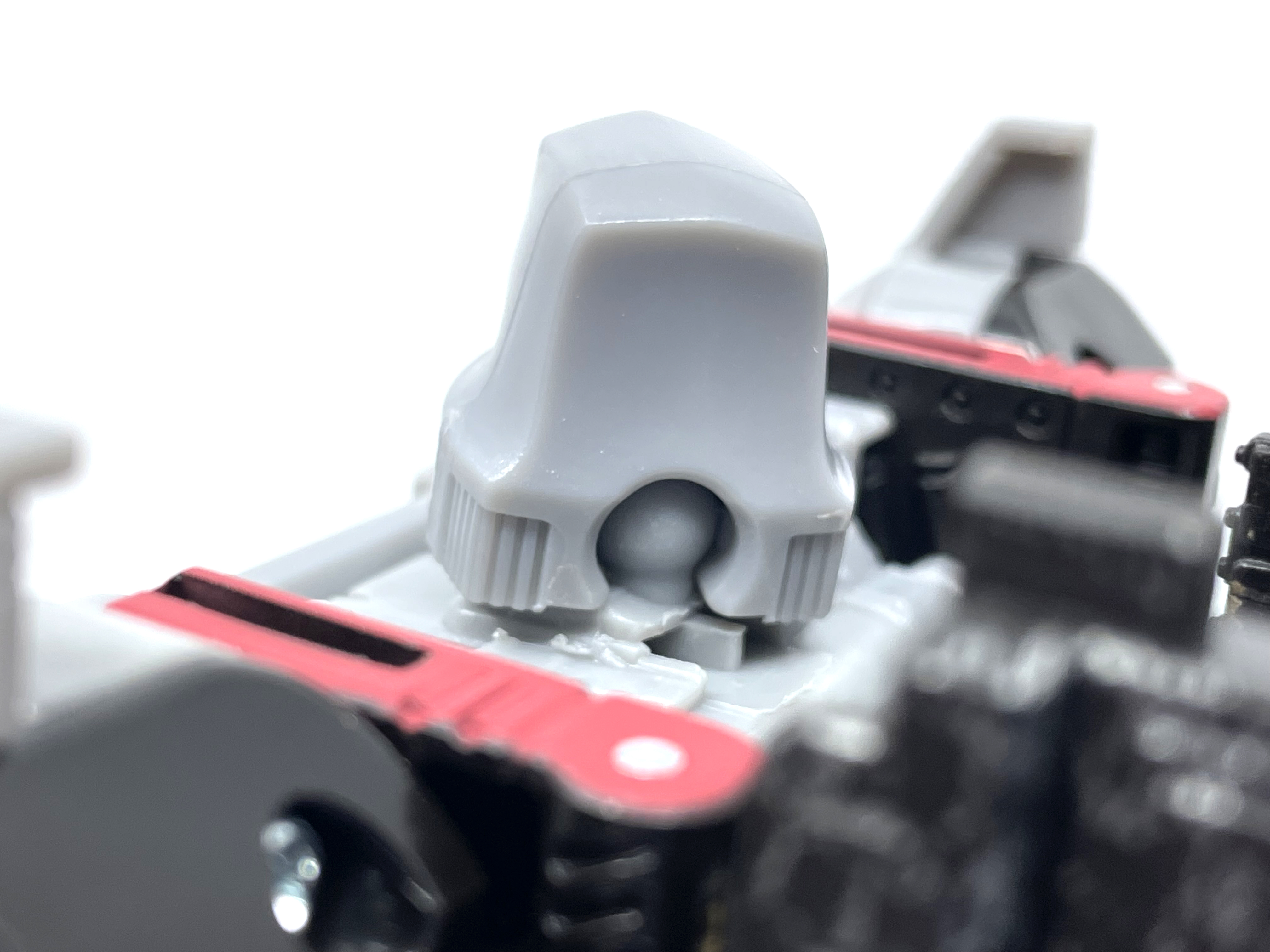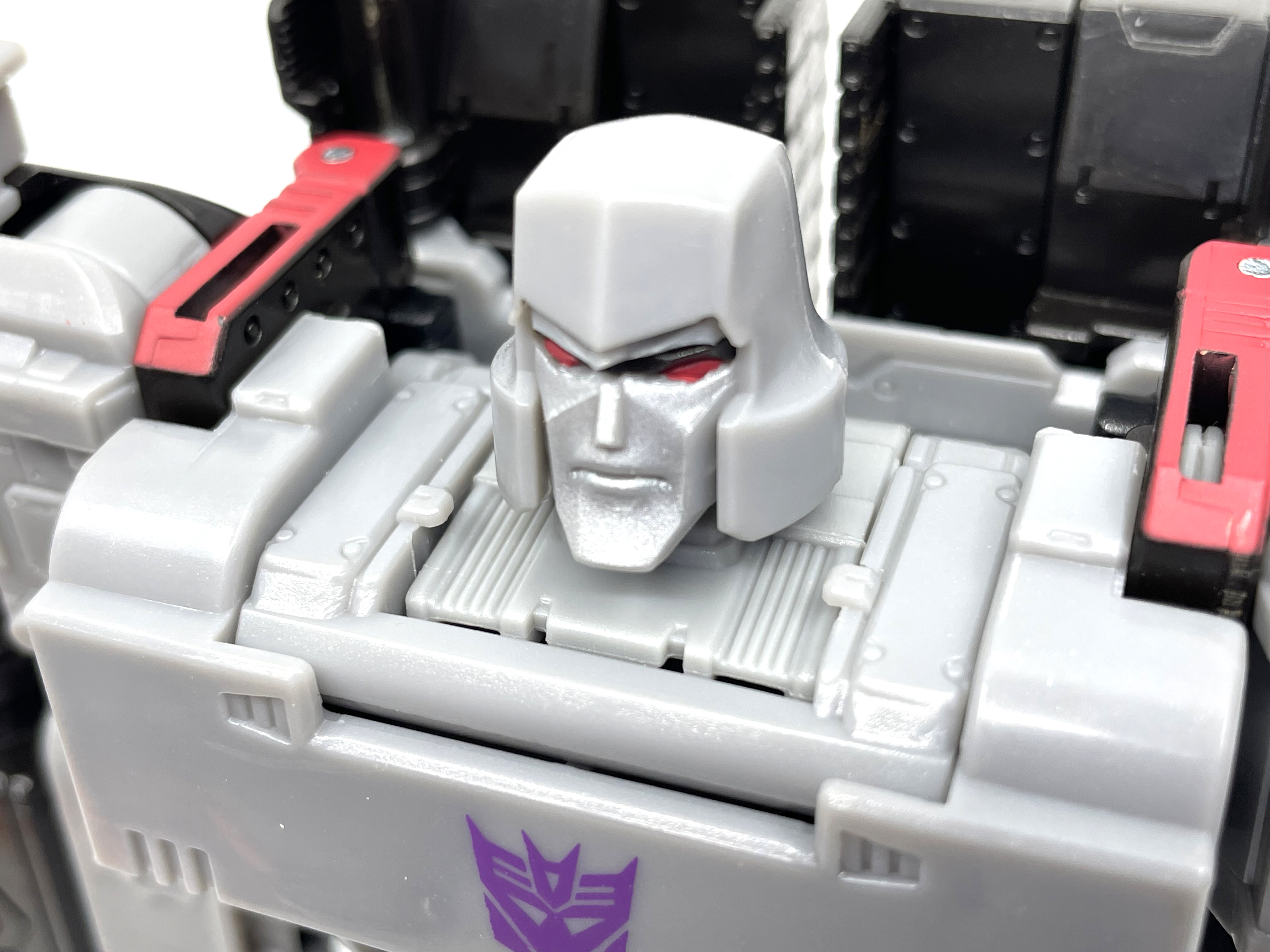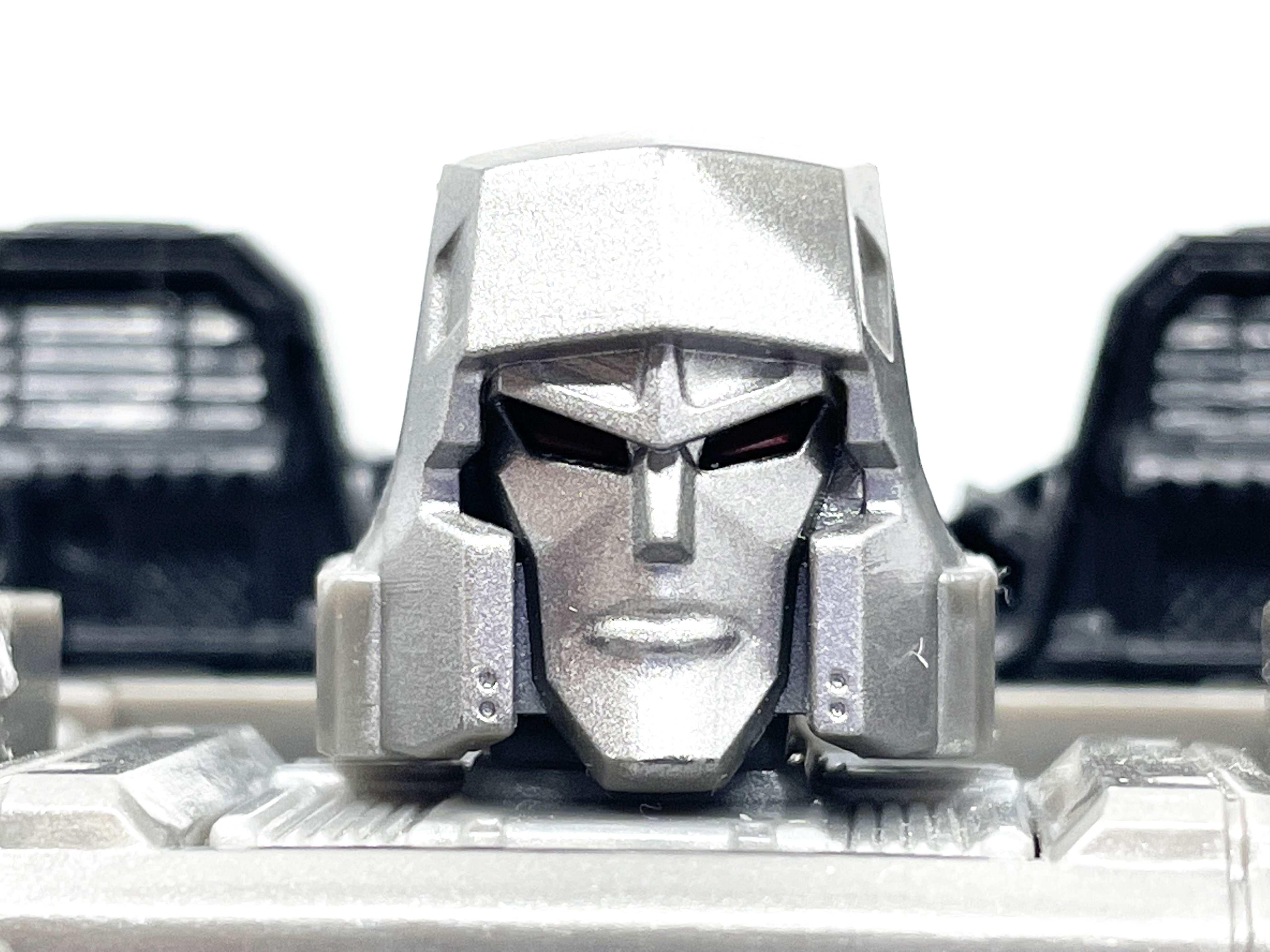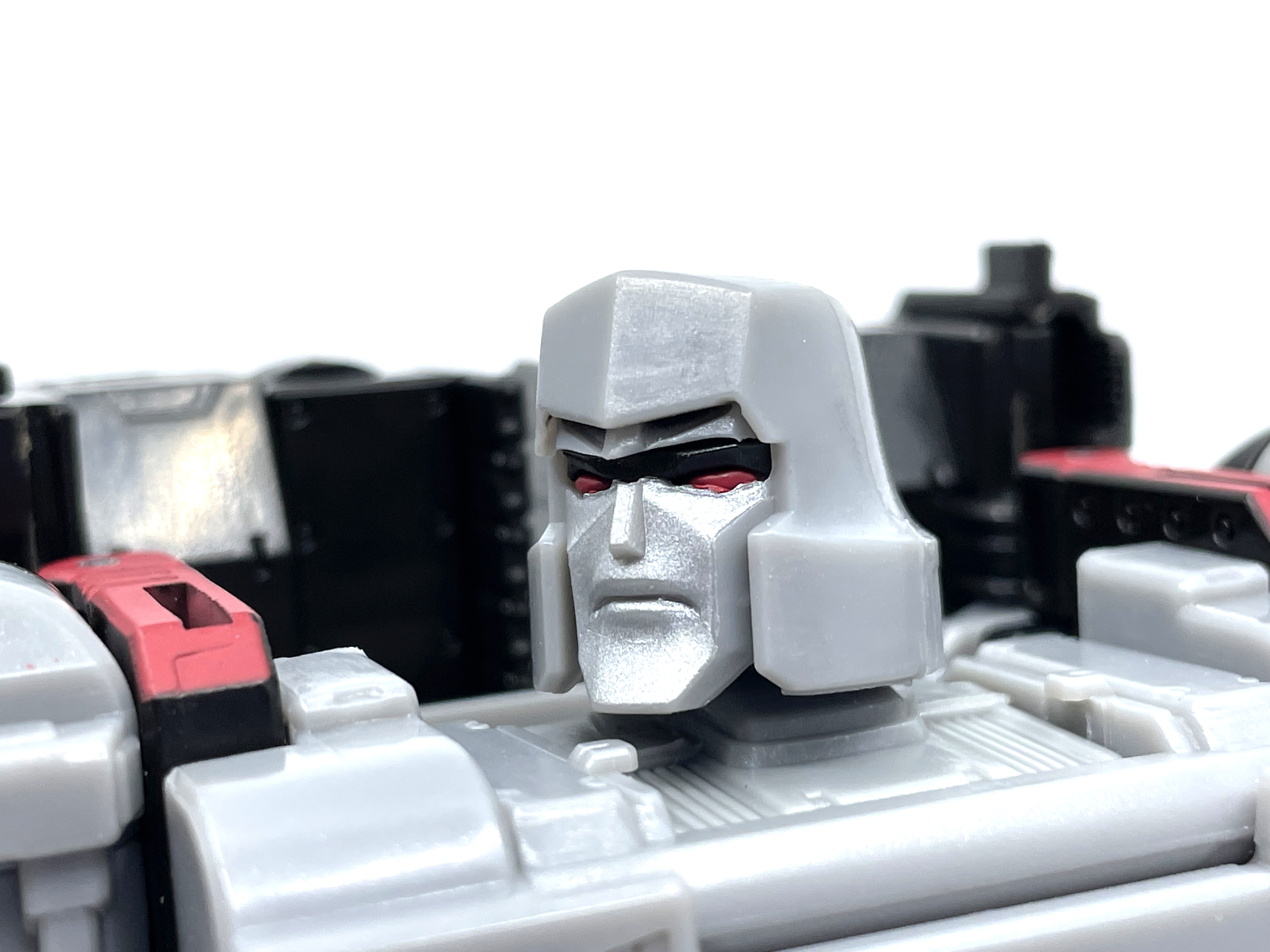 좀 안타까운 게 있다면, 모든 어스라이즈 메가트론 제품은 눈가가 망가진 상태라는 겁니다. 시즈 메가트론도 금형틀에 문제가 있는지 일부 제품에는 오른쪽 눈가가 파인 것을 볼 수 있지만, 어스라이즈 메가트론 제품은 모두 눈 주변이 깔끔하지 않아요. 금형틀에 조금만 더 신경 썼다면 이런 결과가 안 나왔을텐데…