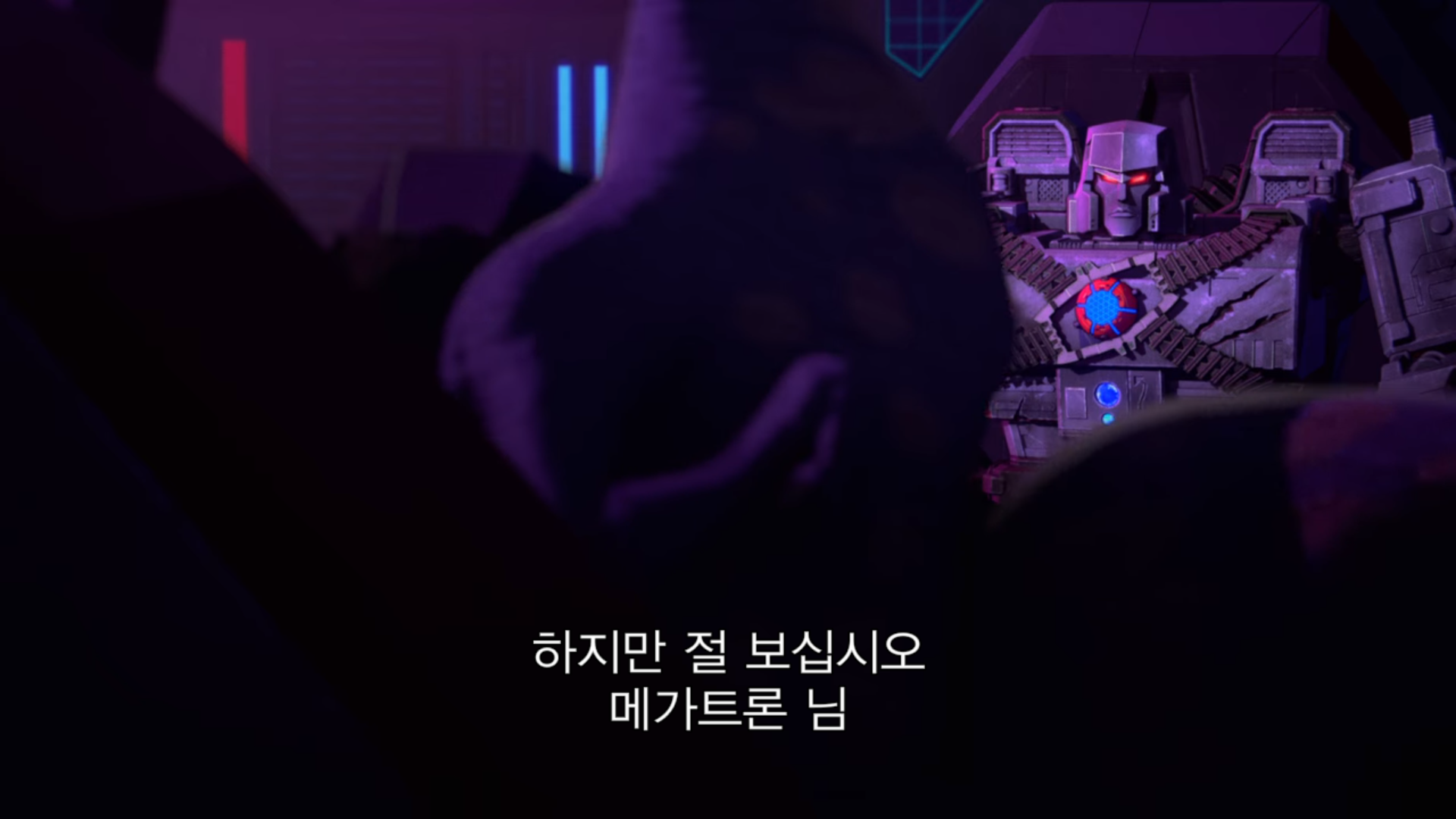 처음엔 목소리 샘플이 나왔을 땐, 데이비드 케이의 메가트론과 너무 비교됐는데 캐릭터성이 달라서 그런지 이런 목소리도 나쁘지 않다고 생각이 들더라고요. 어쨌듯, 원조 비스트 워즈 메가트론과 다르게 메가트론 찬양하는 모습이 참 일품.