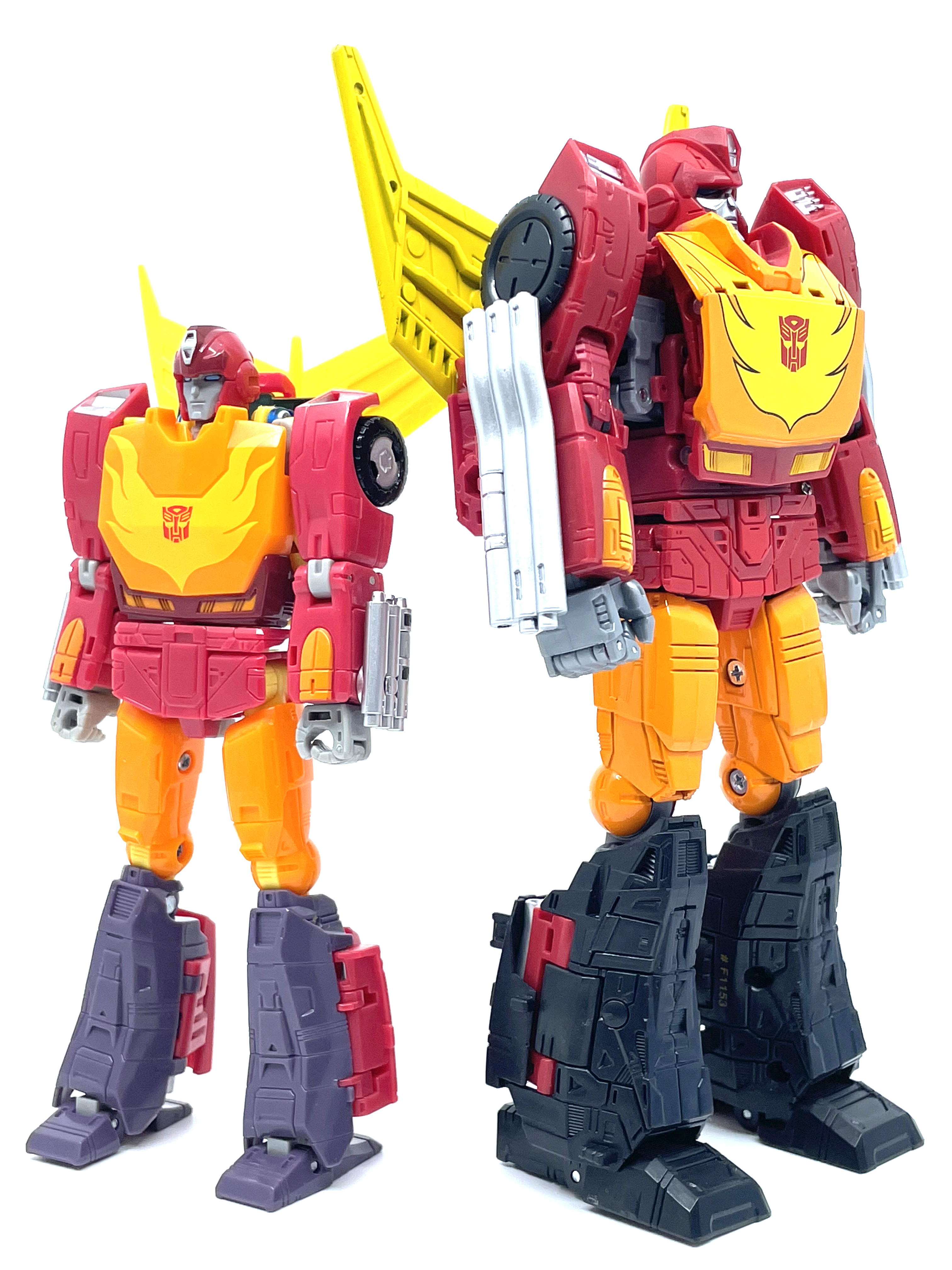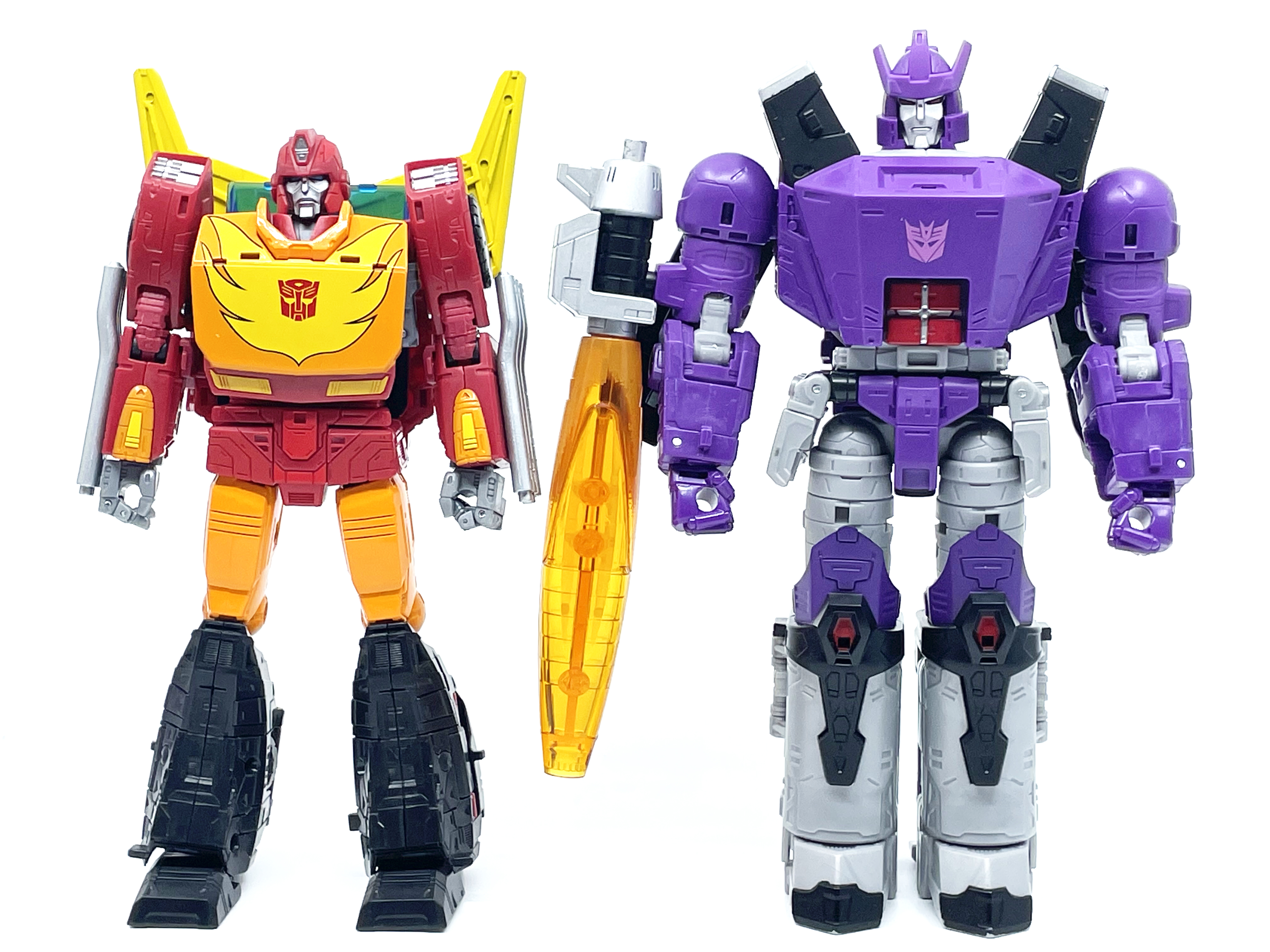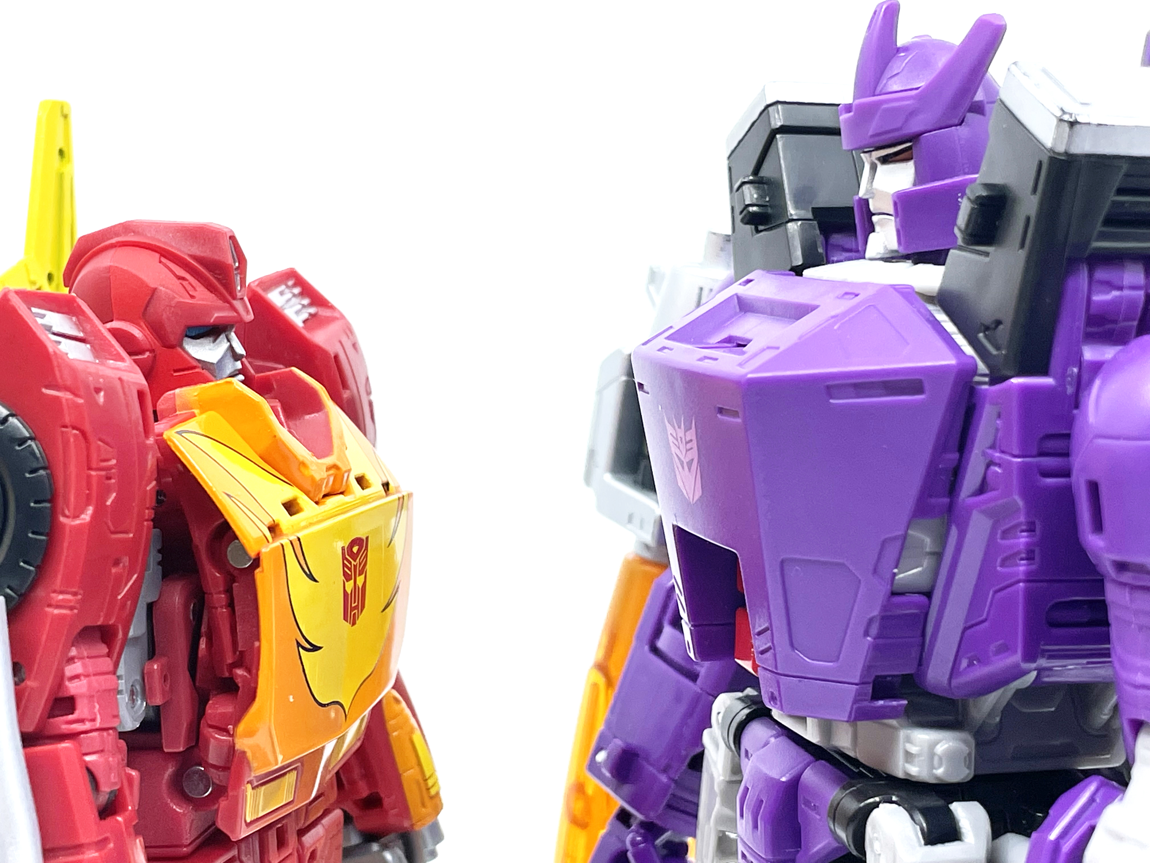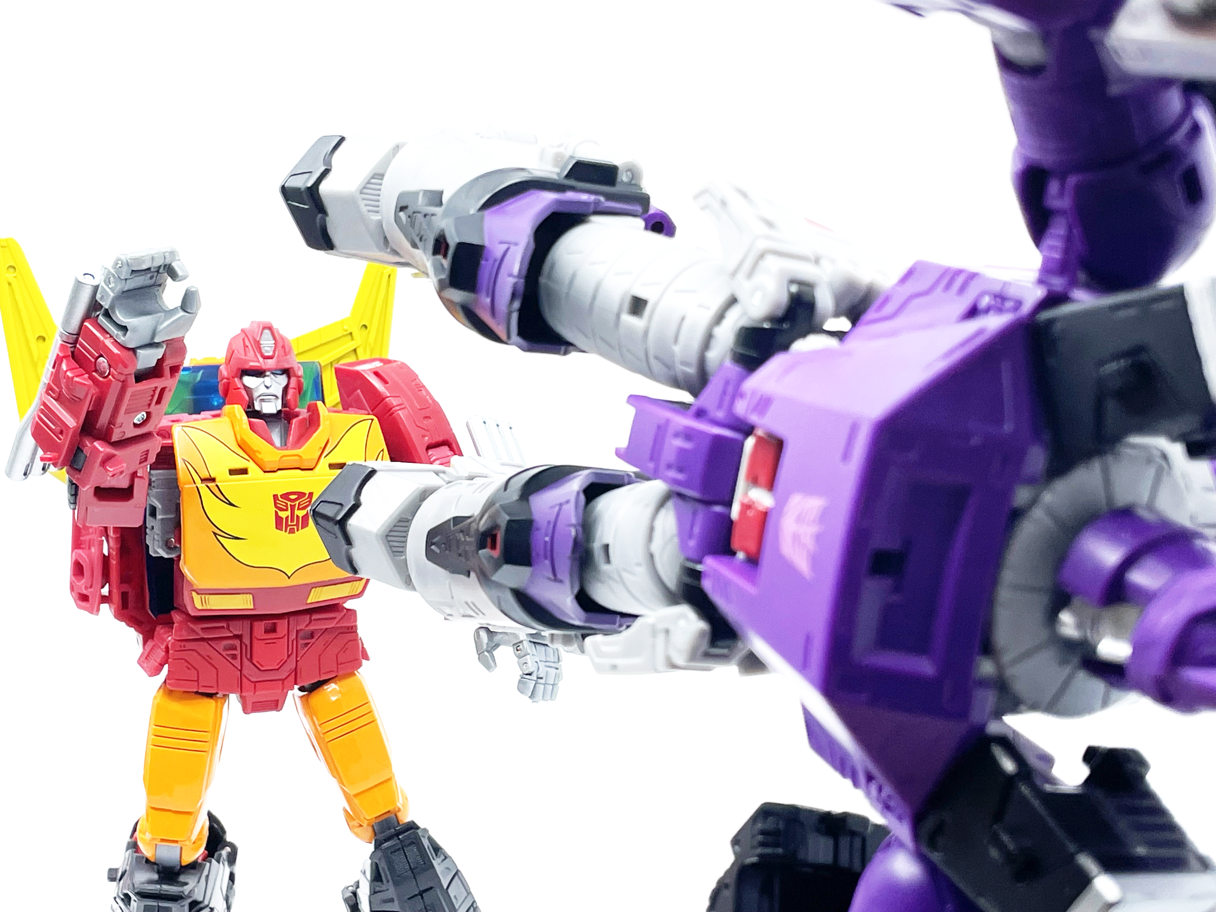 갈바트론은 거의 8인치 키를 자랑하기 때문에 신장 차이가 납니다. 완구와 달리 실제 G1 애니메이션에선 로디머스와 갈바트론은 같은 키입니다.