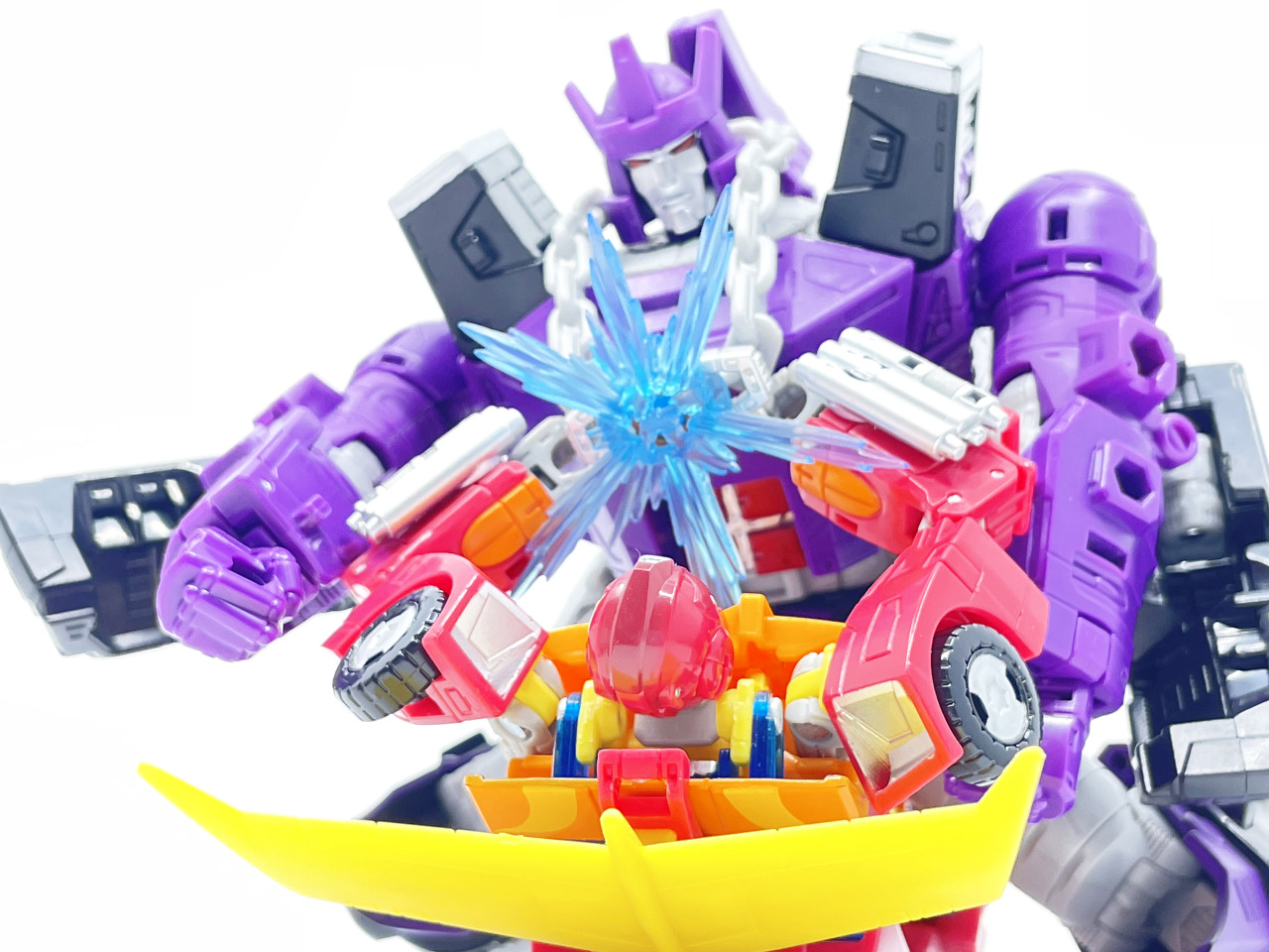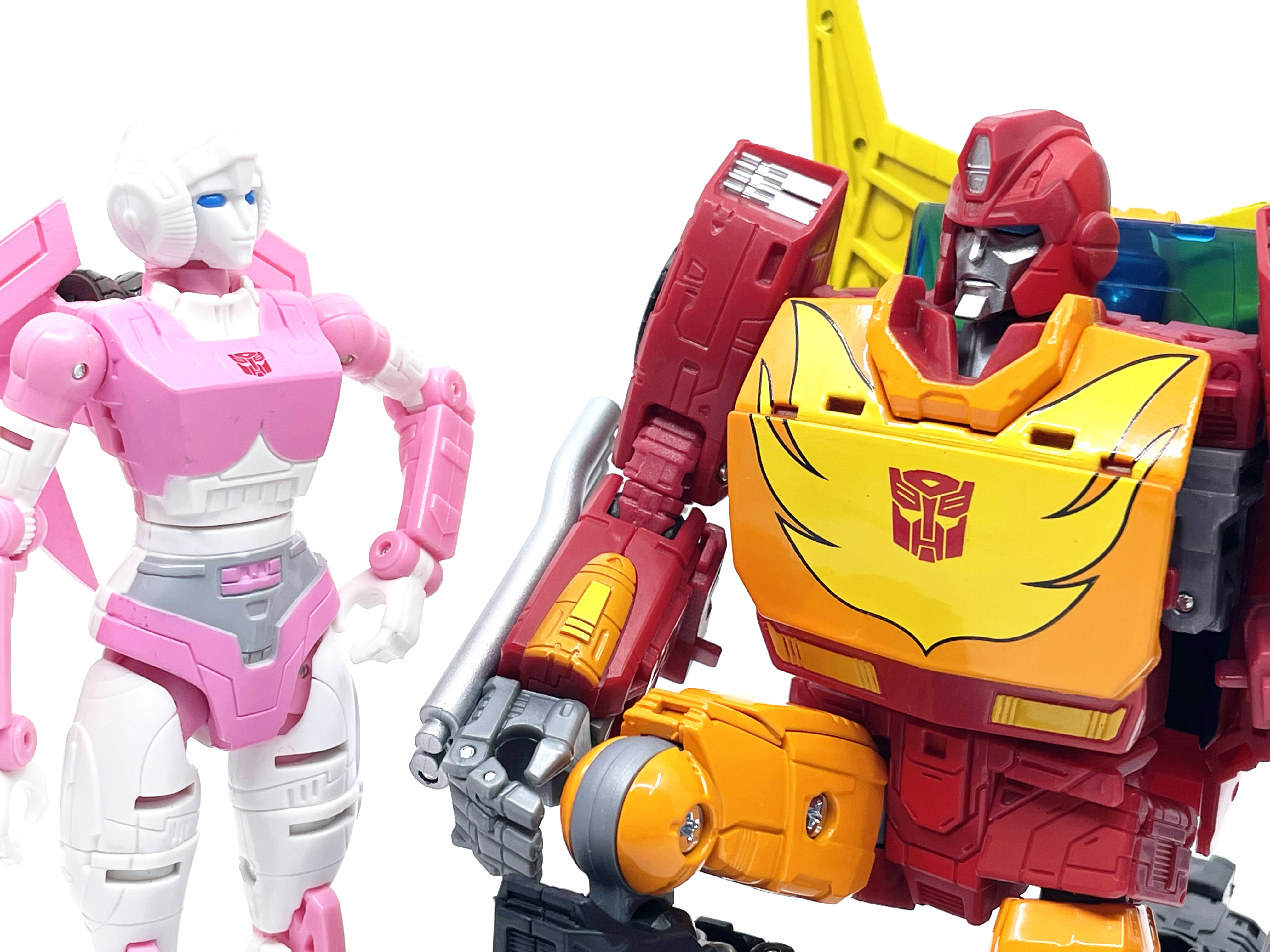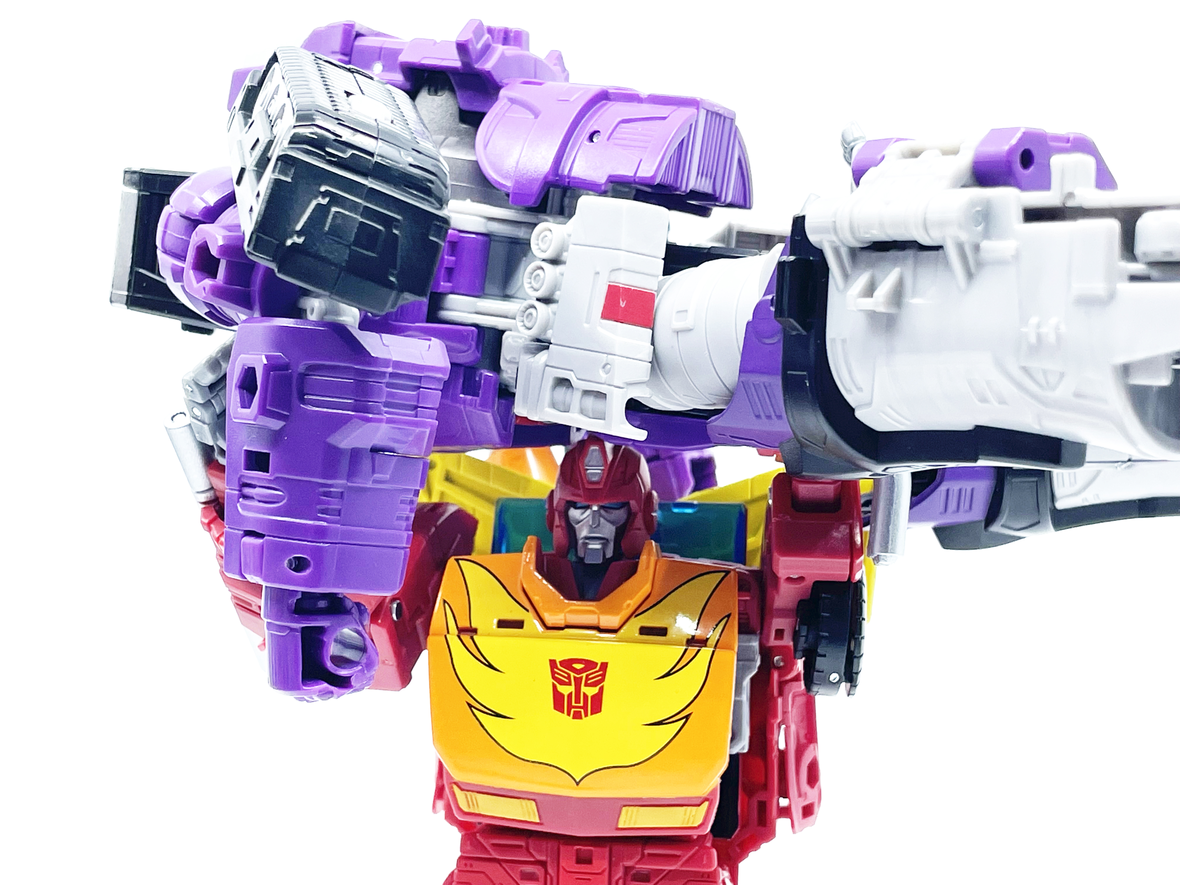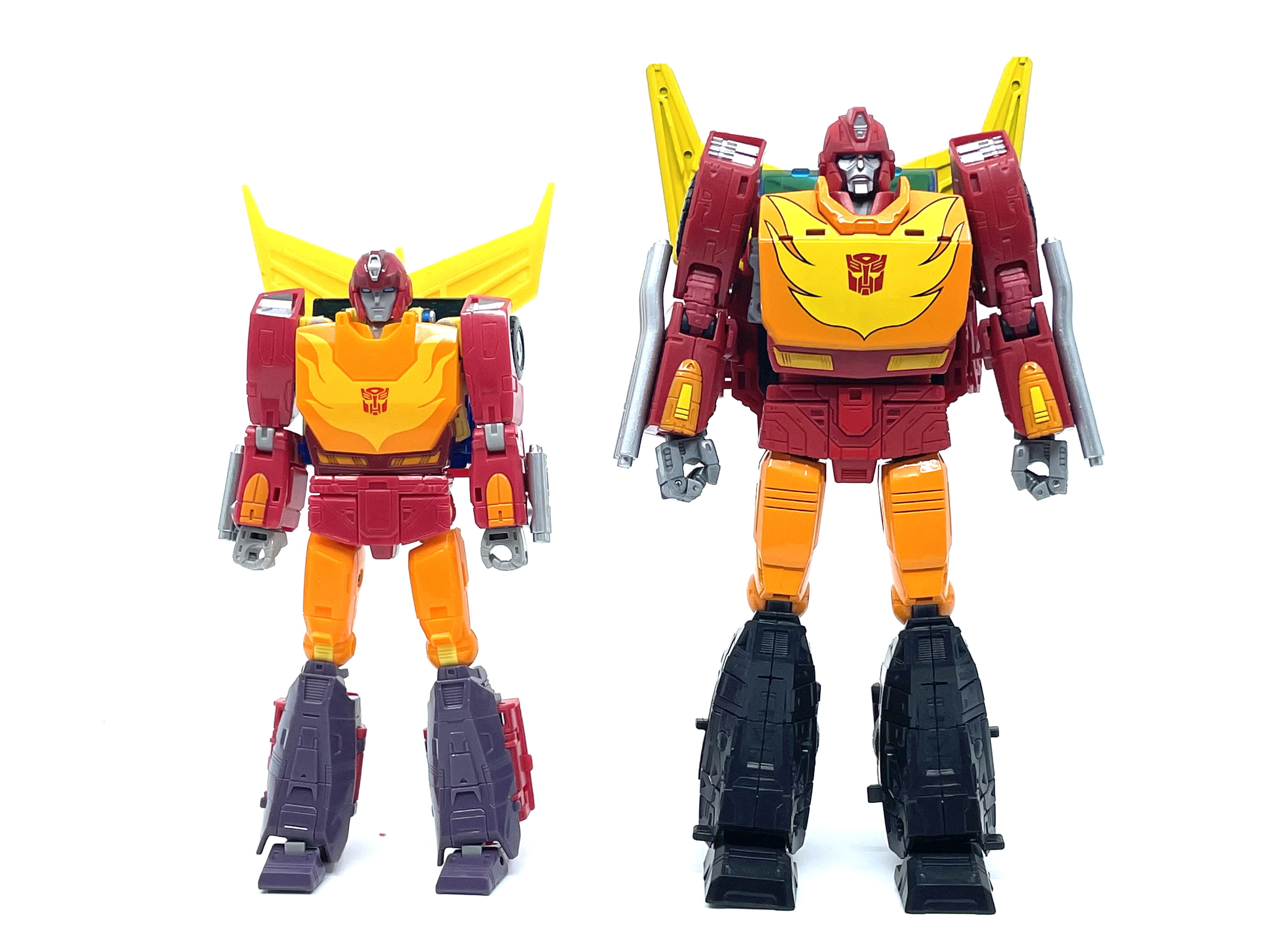 갈바트론은 거의 8인치 키를 자랑하기 때문에 신장 차이가 납니다. 완구와 달리 실제 G1 애니메이션에선 로디머스와 갈바트론은 같은 키입니다.