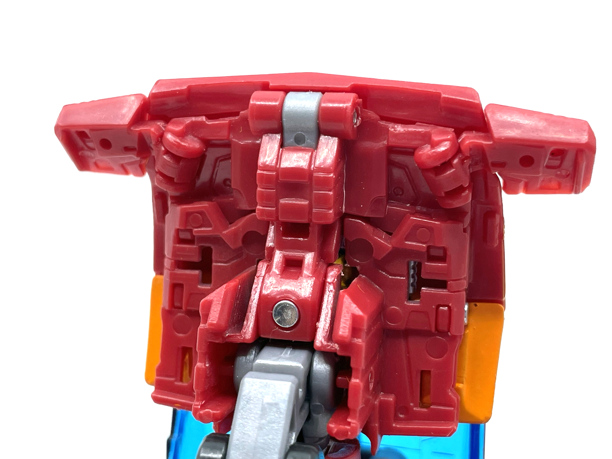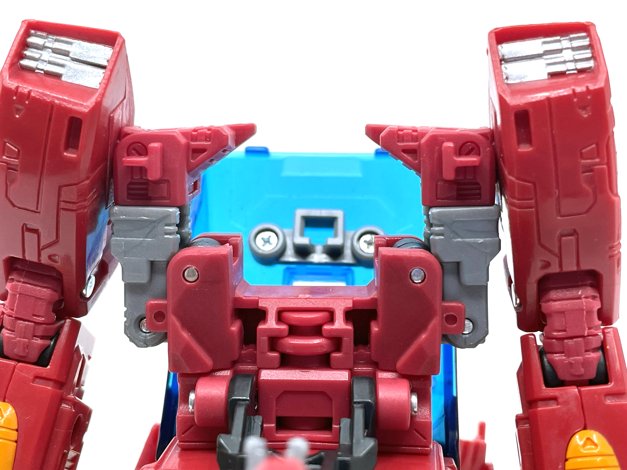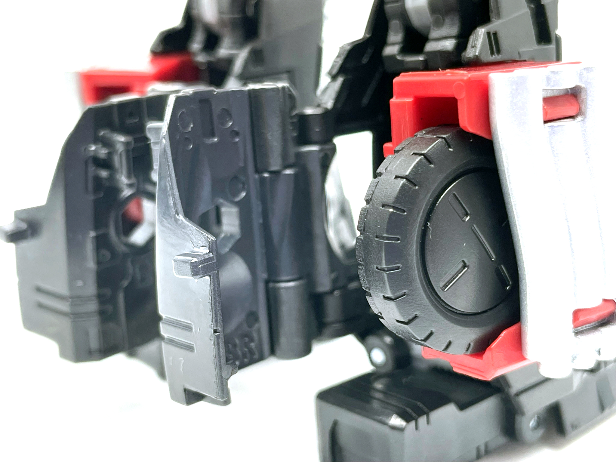 마지막으로 놓치기 쉬운 바퀴 정리. 어깨의 바퀴를 열어주고 밀어 넣어 준 뒤, 결합시키면 변신 완료.