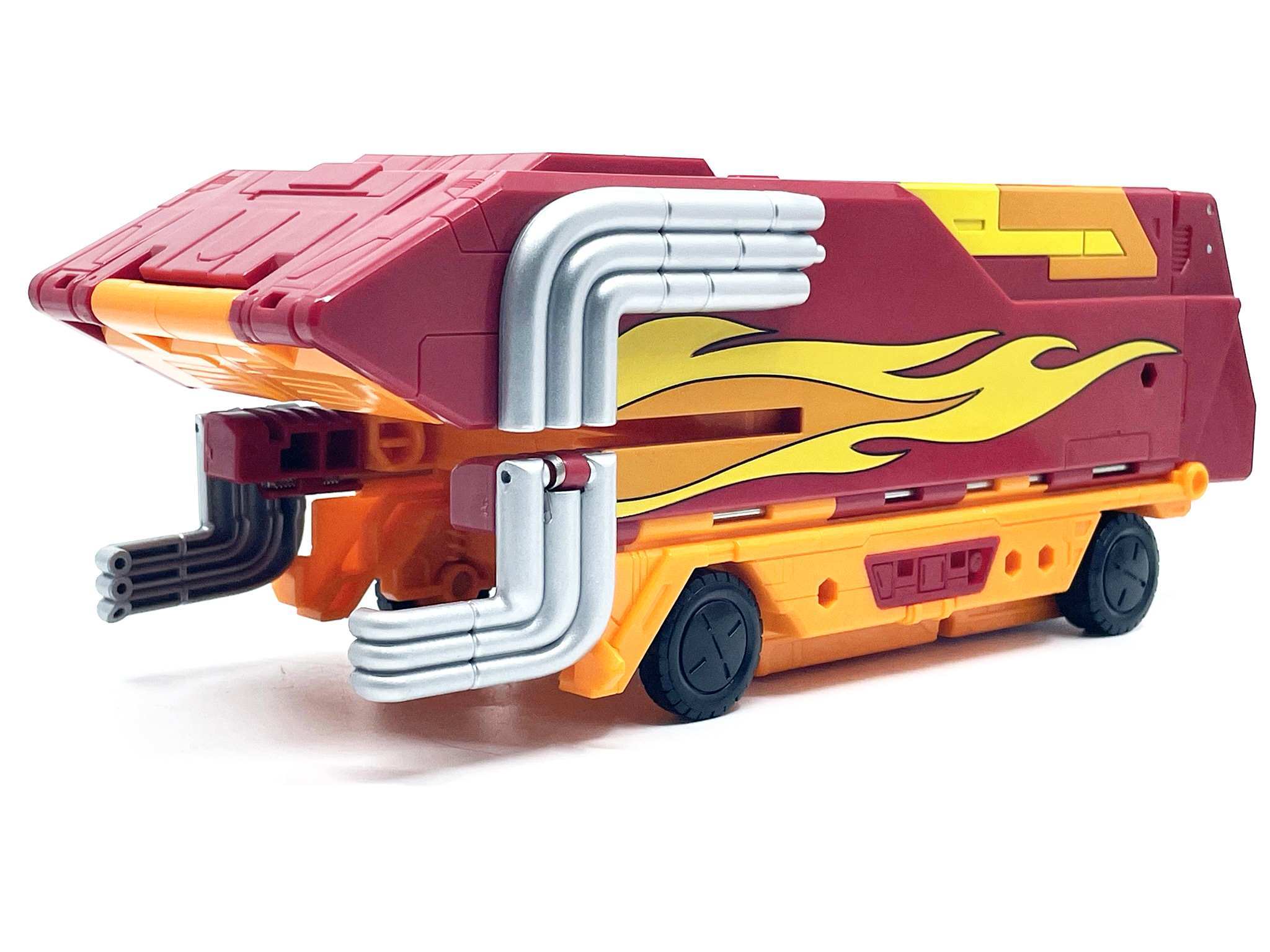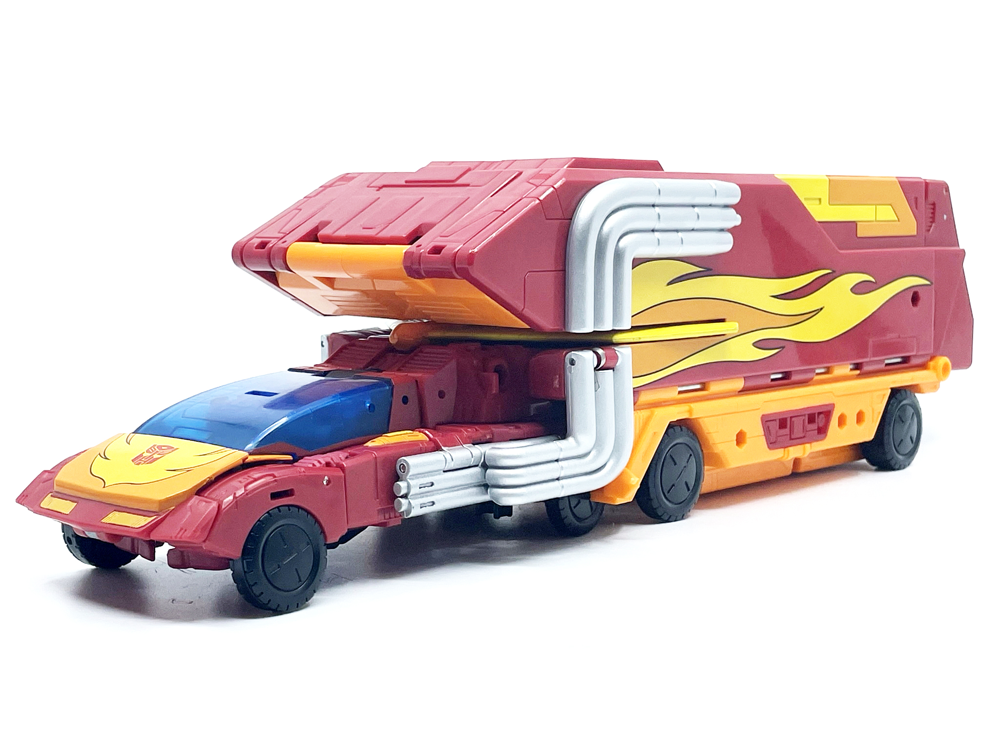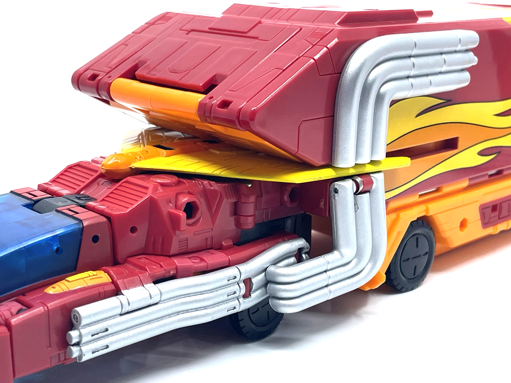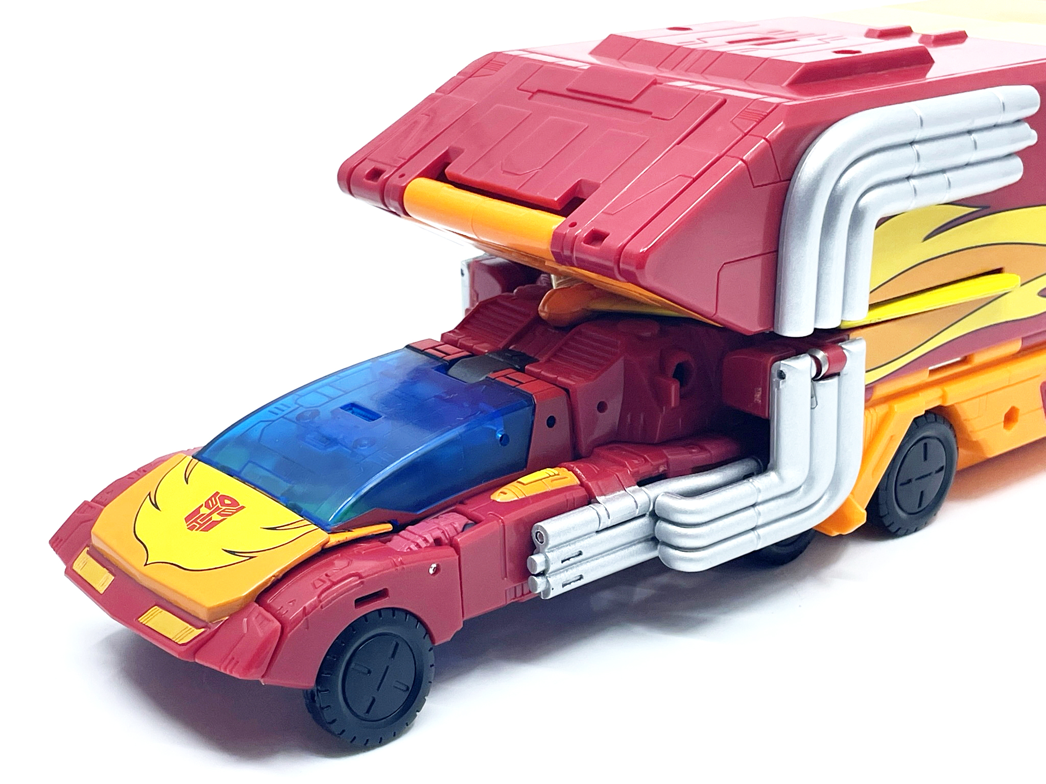 핫 로드와 다른 변신 방식으로 인해 양팔엔 기다란 배기 파이프가 달렸습니다.