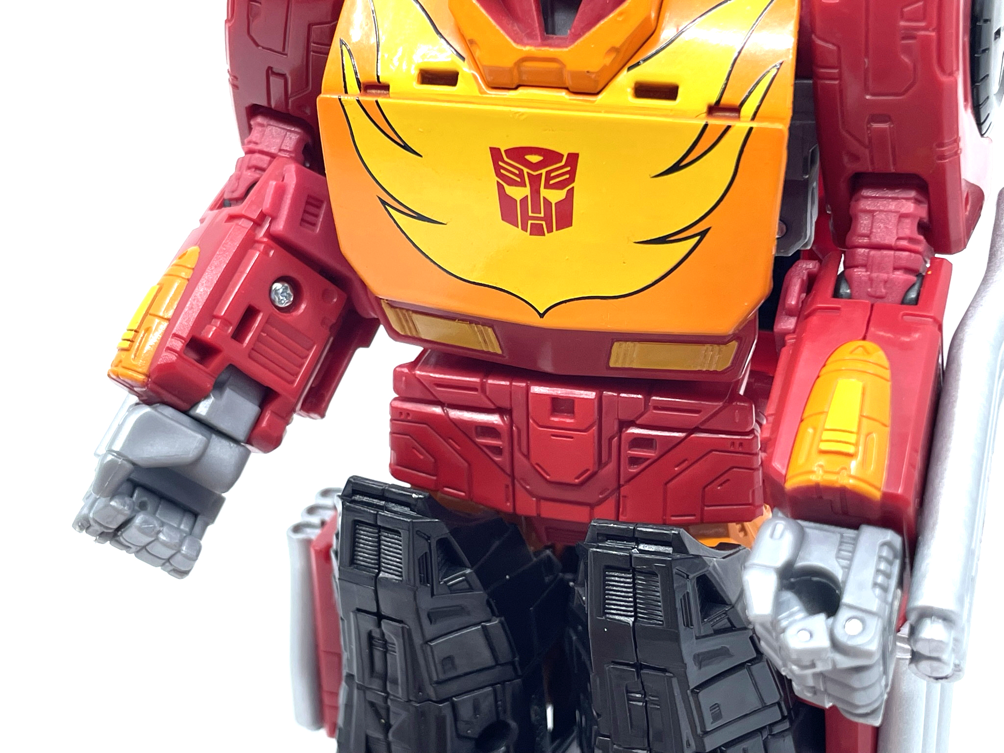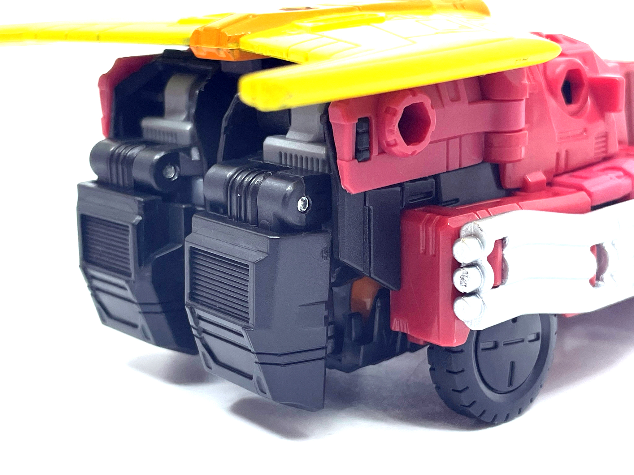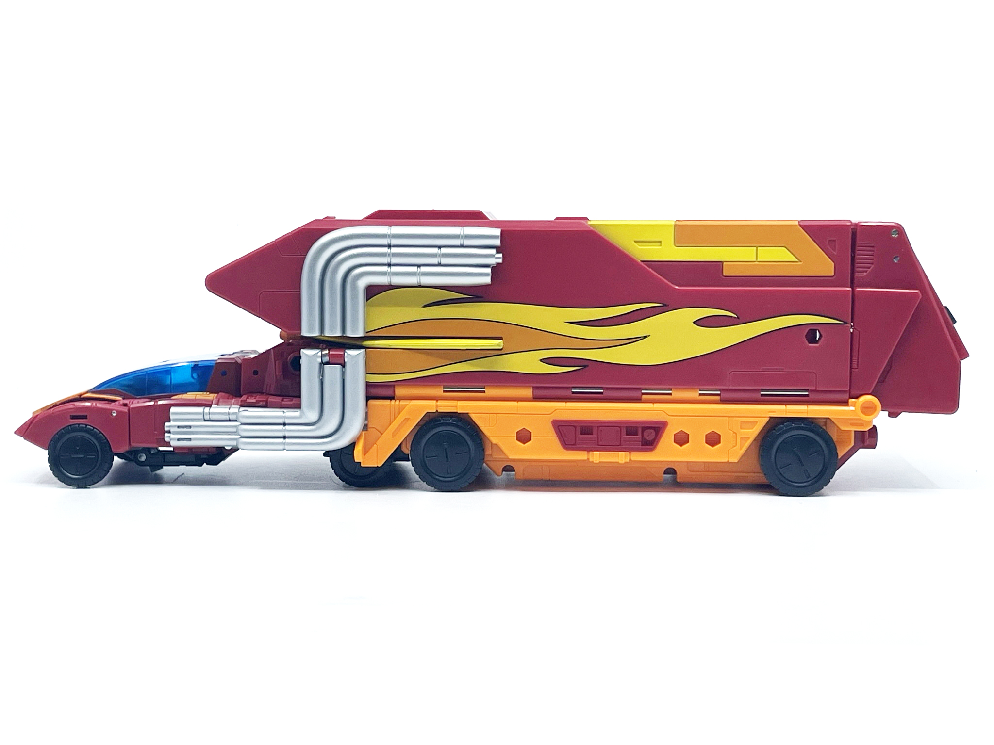 핫 로드와 다른 변신 방식으로 인해 양팔엔 기다란 배기 파이프가 달렸습니다.