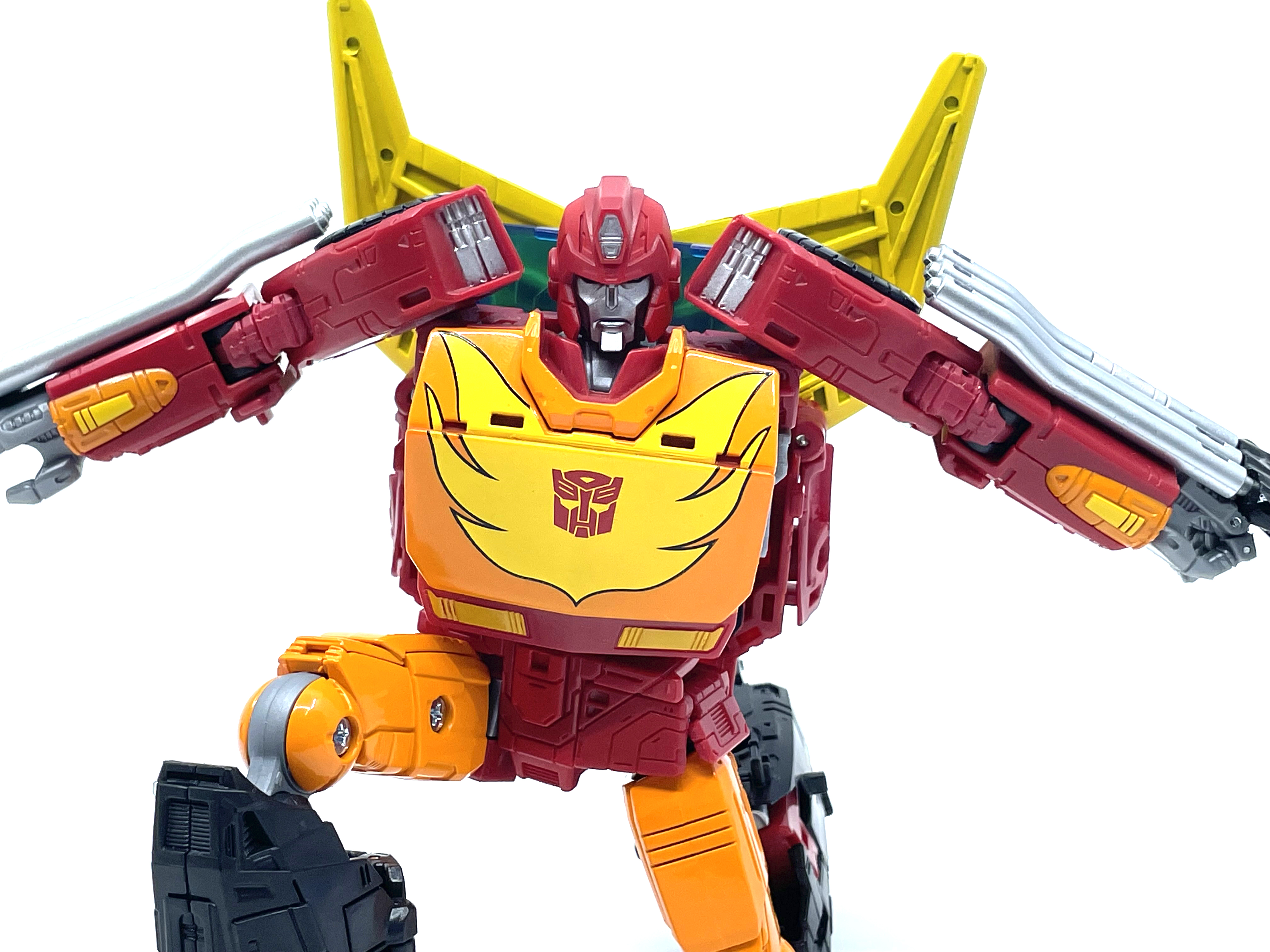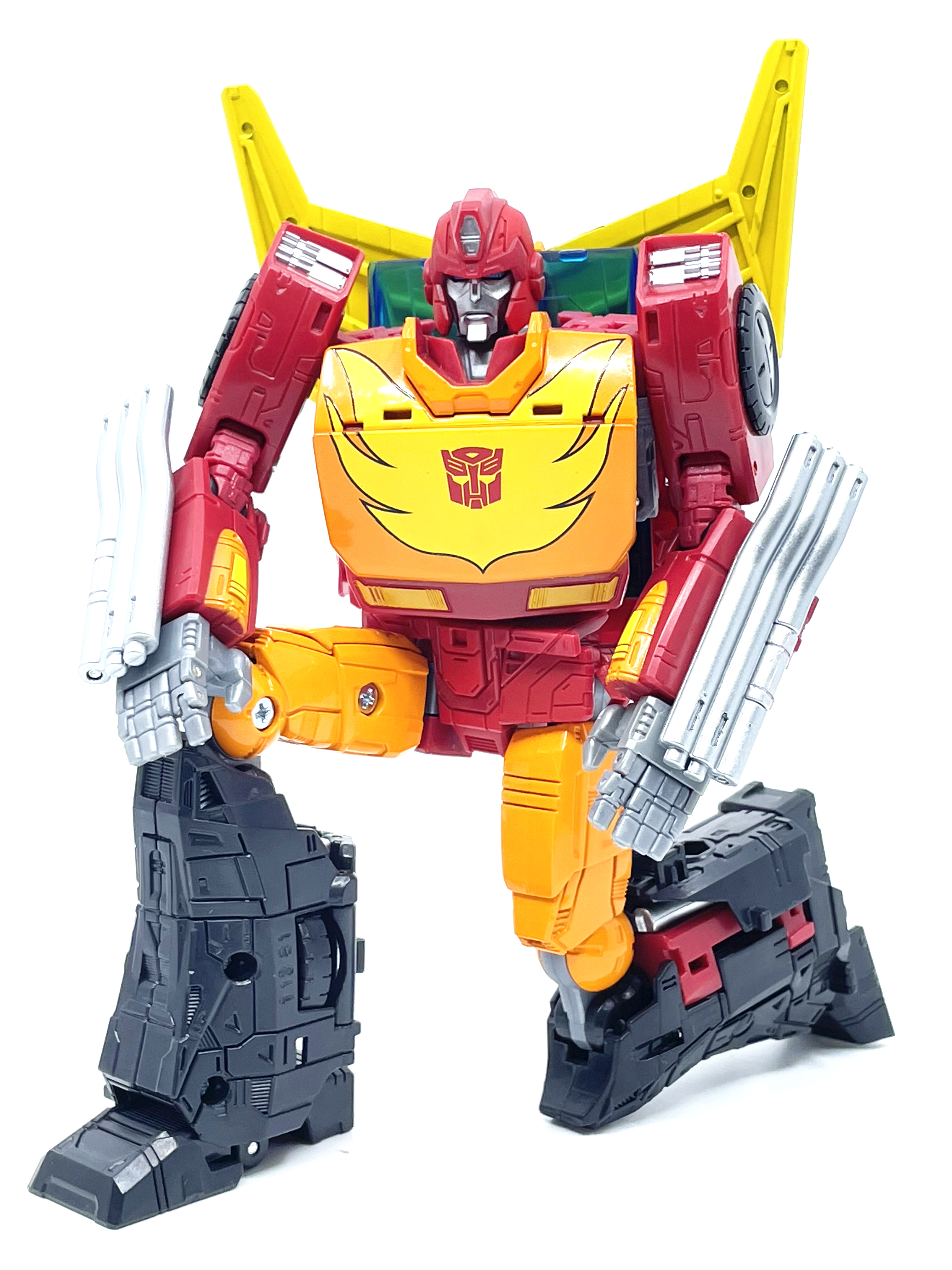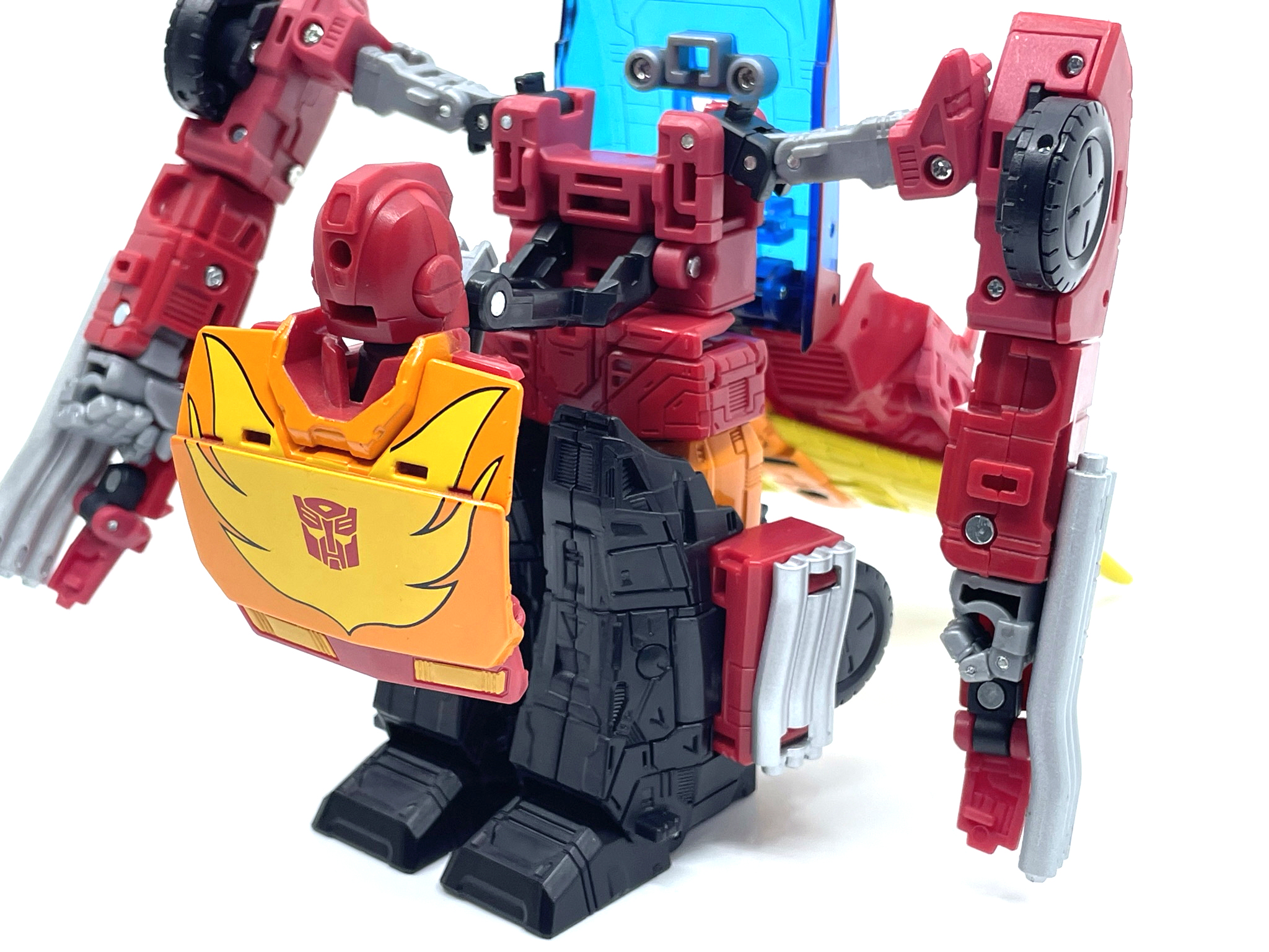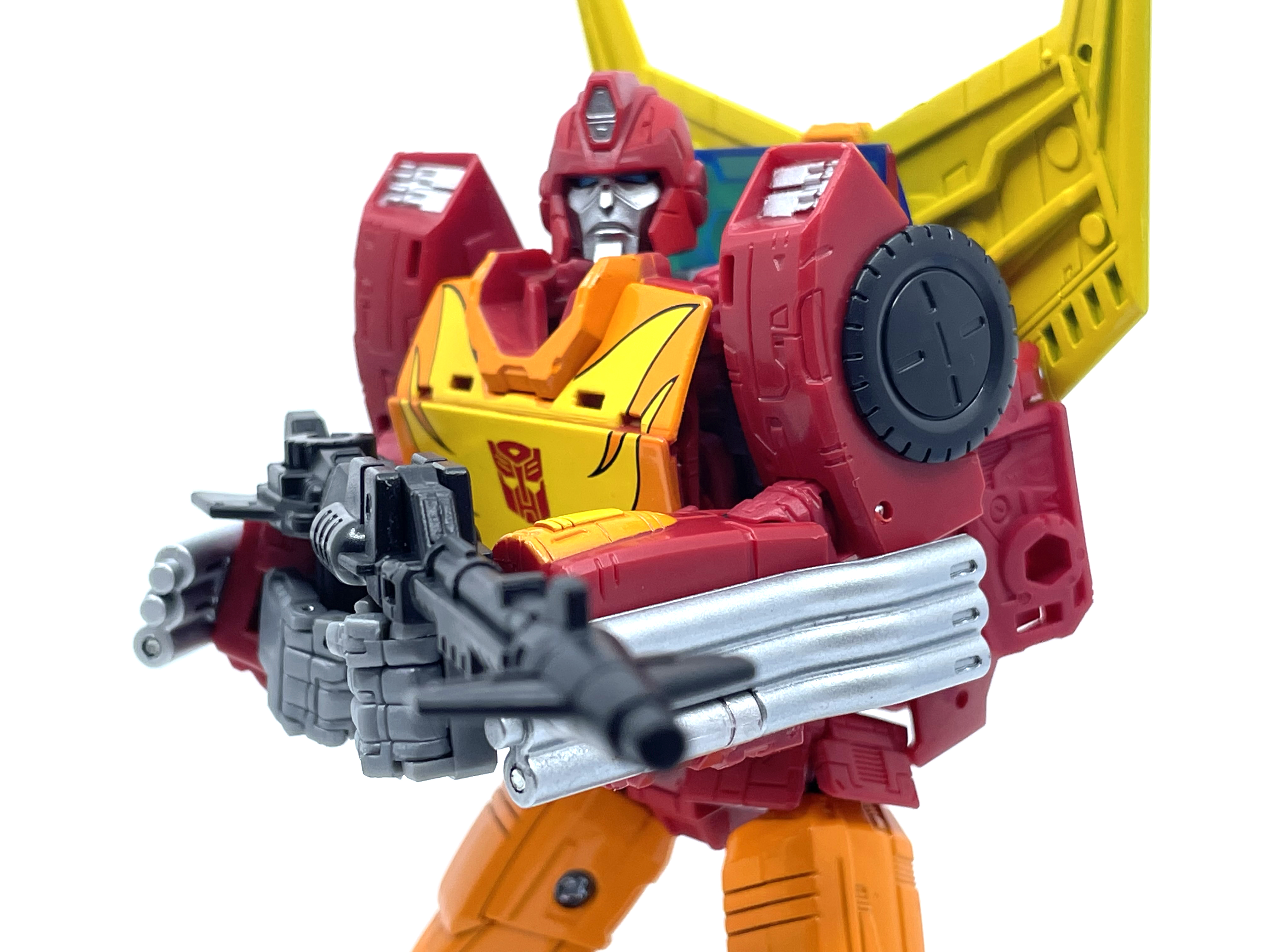 핫 로드와 다른 변신 방식으로 인해 양팔엔 기다란 배기 파이프가 달렸습니다.