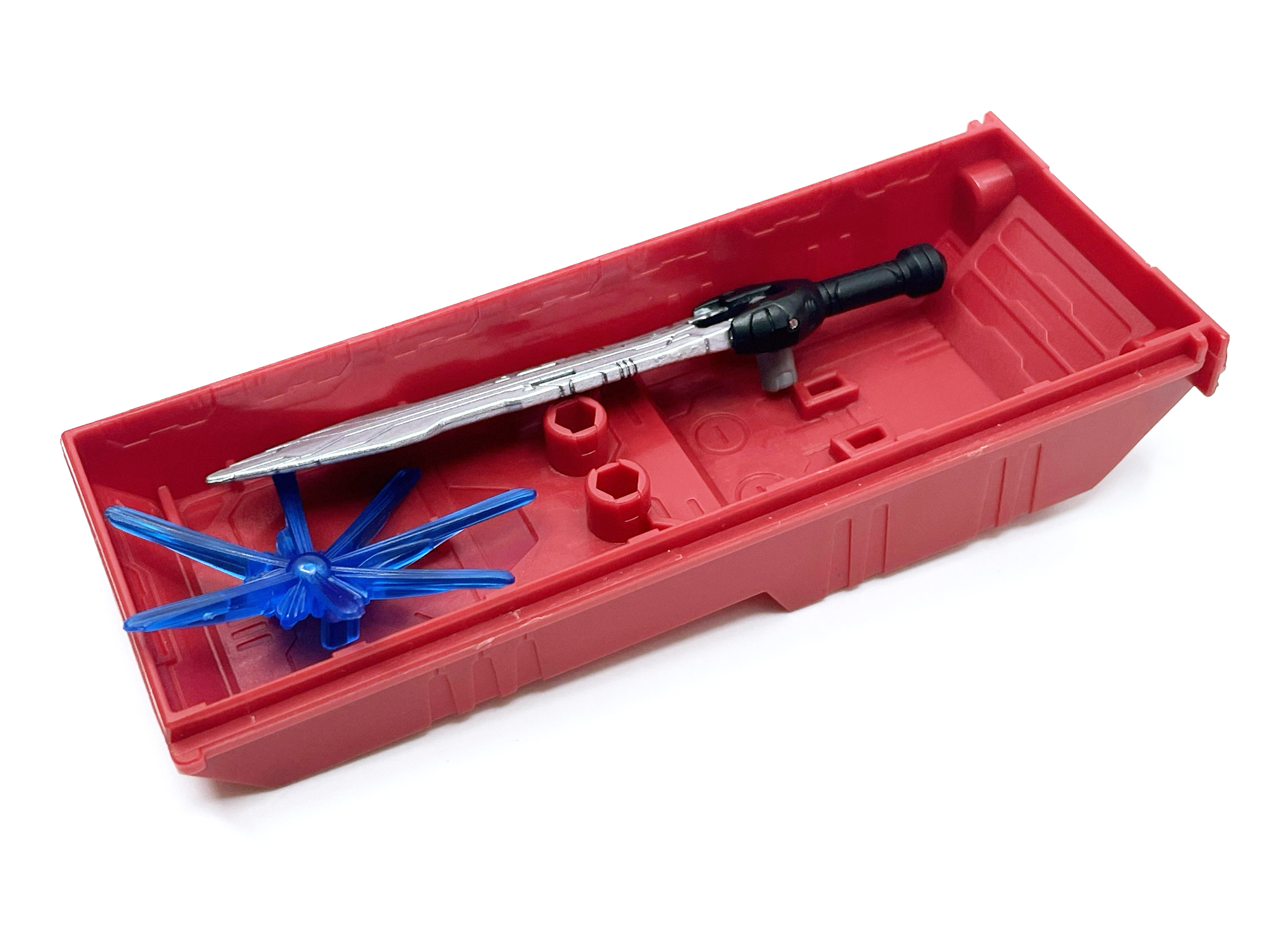 박스에는 프라이머스의 검을 든 로디머스가 그려졌습니다. 로디머스 뒤에는 일종의 마법진 같은 것이 그려졌는데 이탓에 시공간을 넘어와 본편 시간대에 합류하는 것 아닌가는 추측이 있기도 했습니다. 비록 애니메이션에선 이뤄지지 못했지만, 완구는 별개의 스토리를 가지고 있기에 추측한 방식으로 합류하는 것 아닐까 생각합니다.
