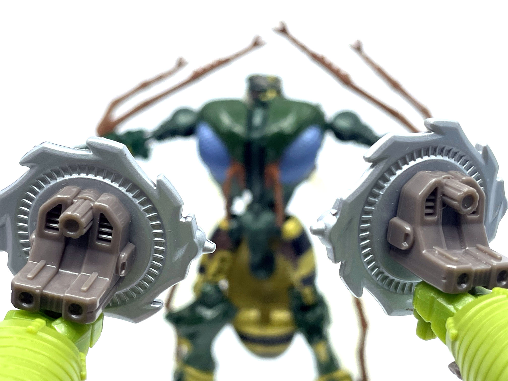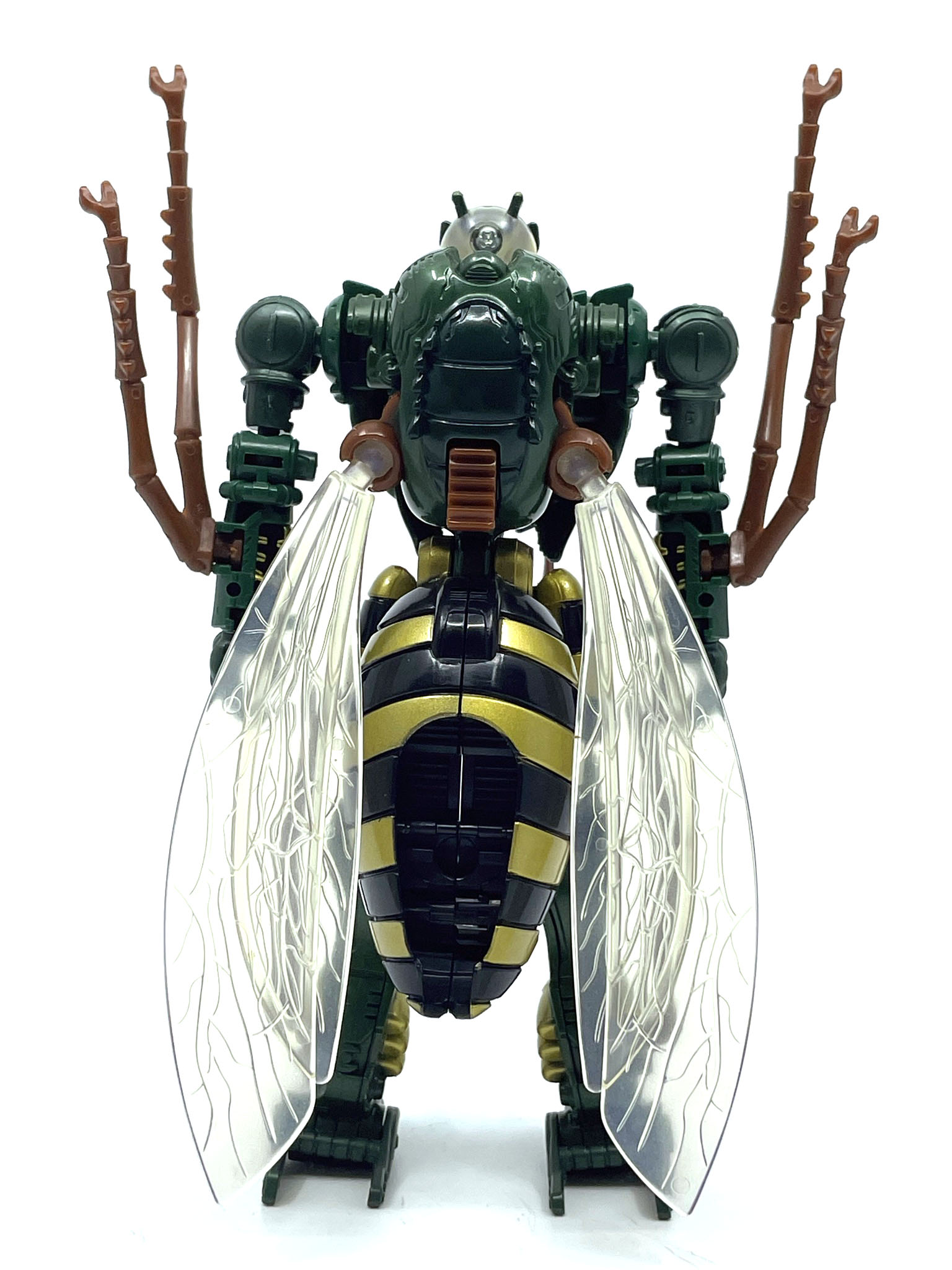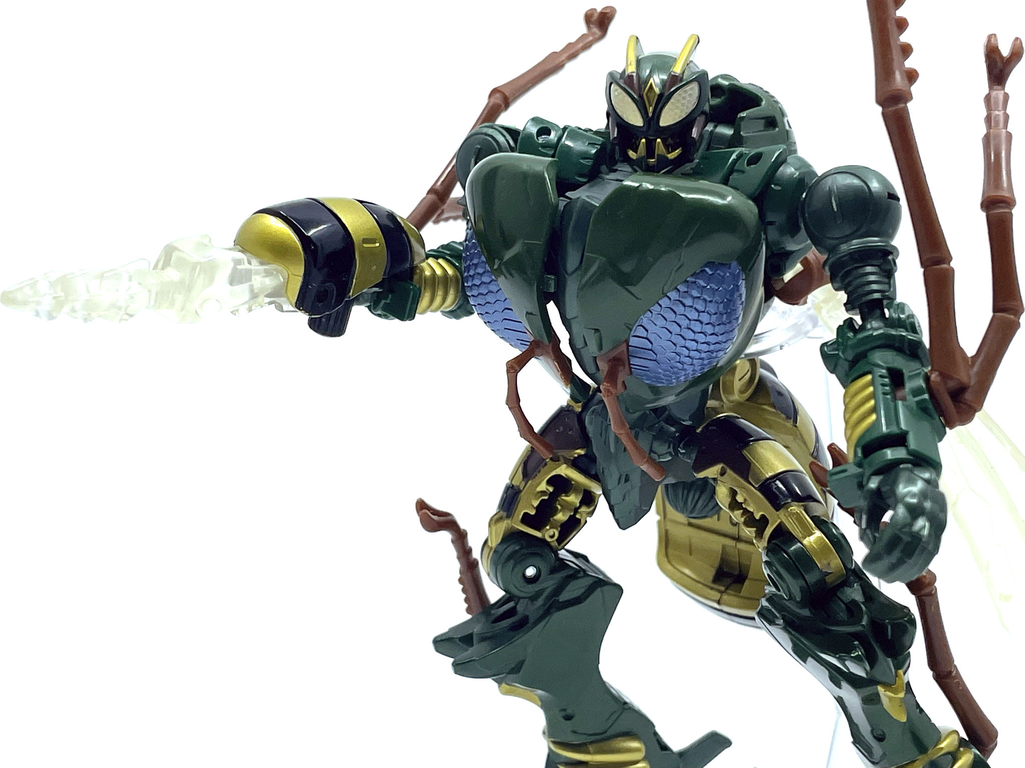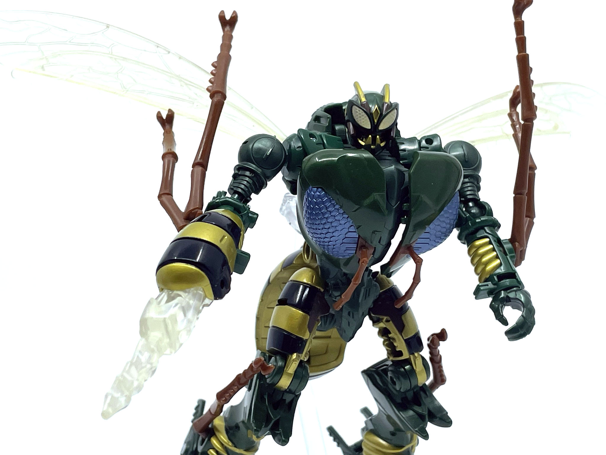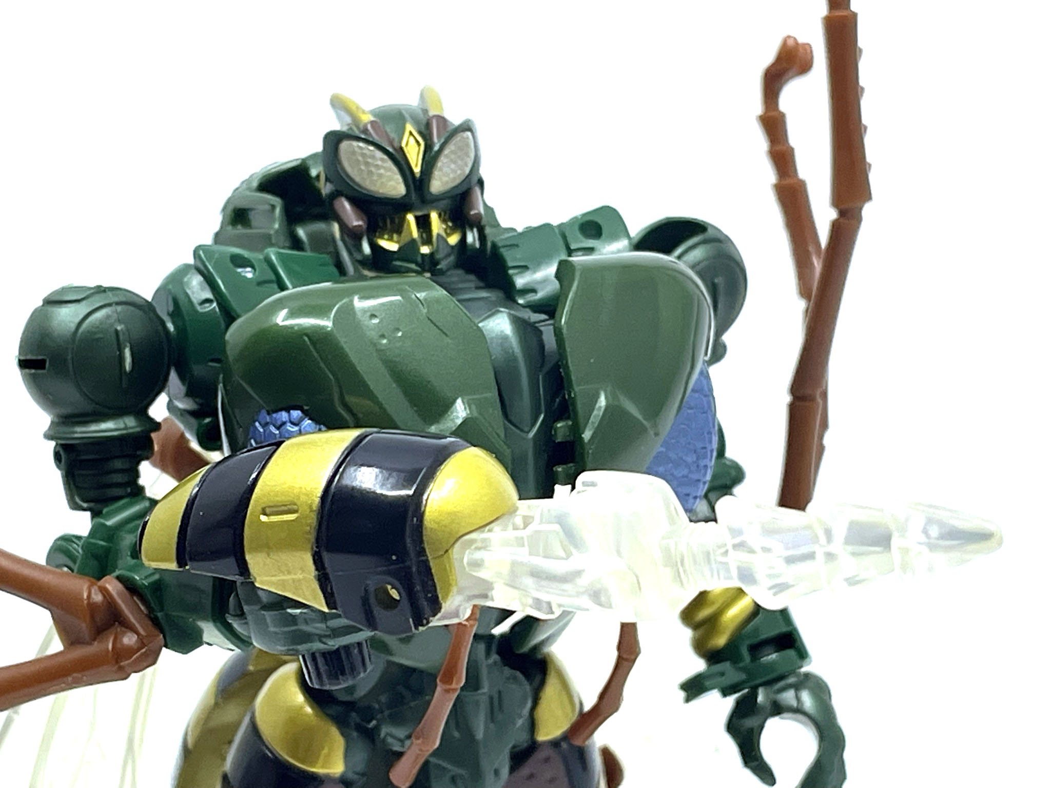 원래 애니메이션에선 이거 말고도 다이노봇마냥 눈에서 레이저를 발사하기도 했는데, 결국엔 벌침 총 원툴로 활약합니다. 그나마 장점인 공중전 조차 작품 후반에는 비행하는 애들이 많아져서…