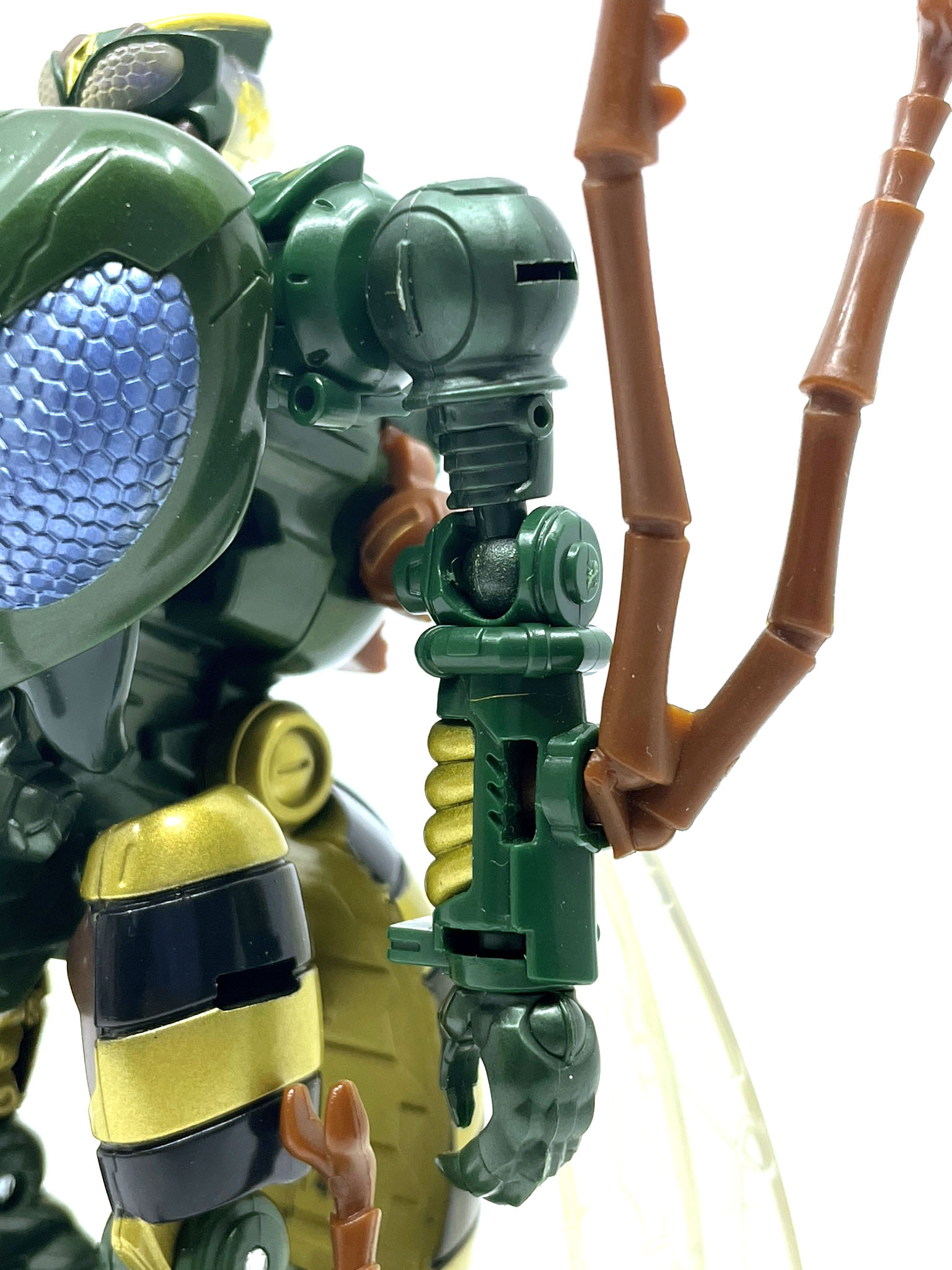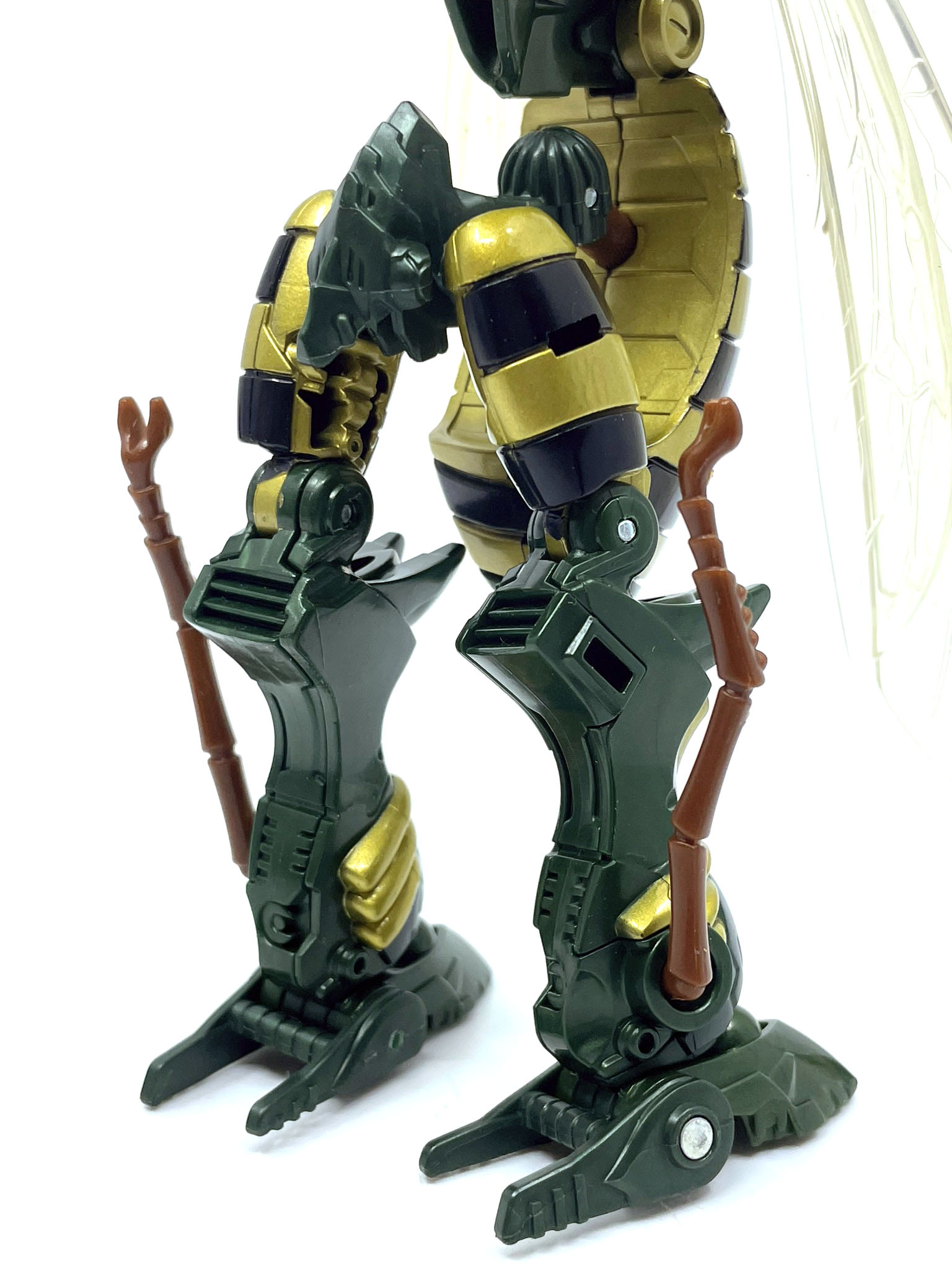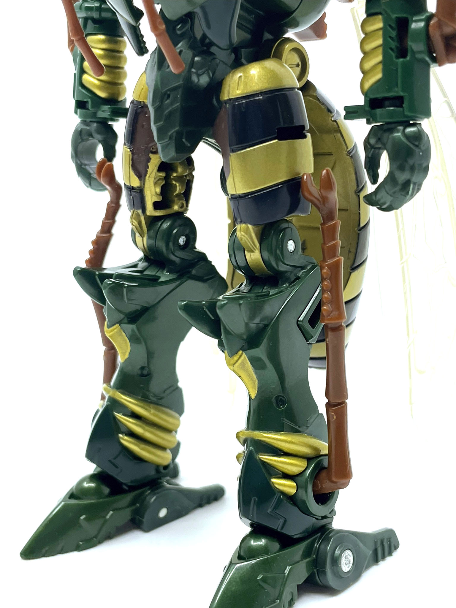 벌 다리가 달린 팔과 다리. 애니메이션에선 벌다리가 압축해서 몸에 들어가는 방식이지만 완구에선 그게 불가능해서 기다란 벌 다리가 남아 있습니다.