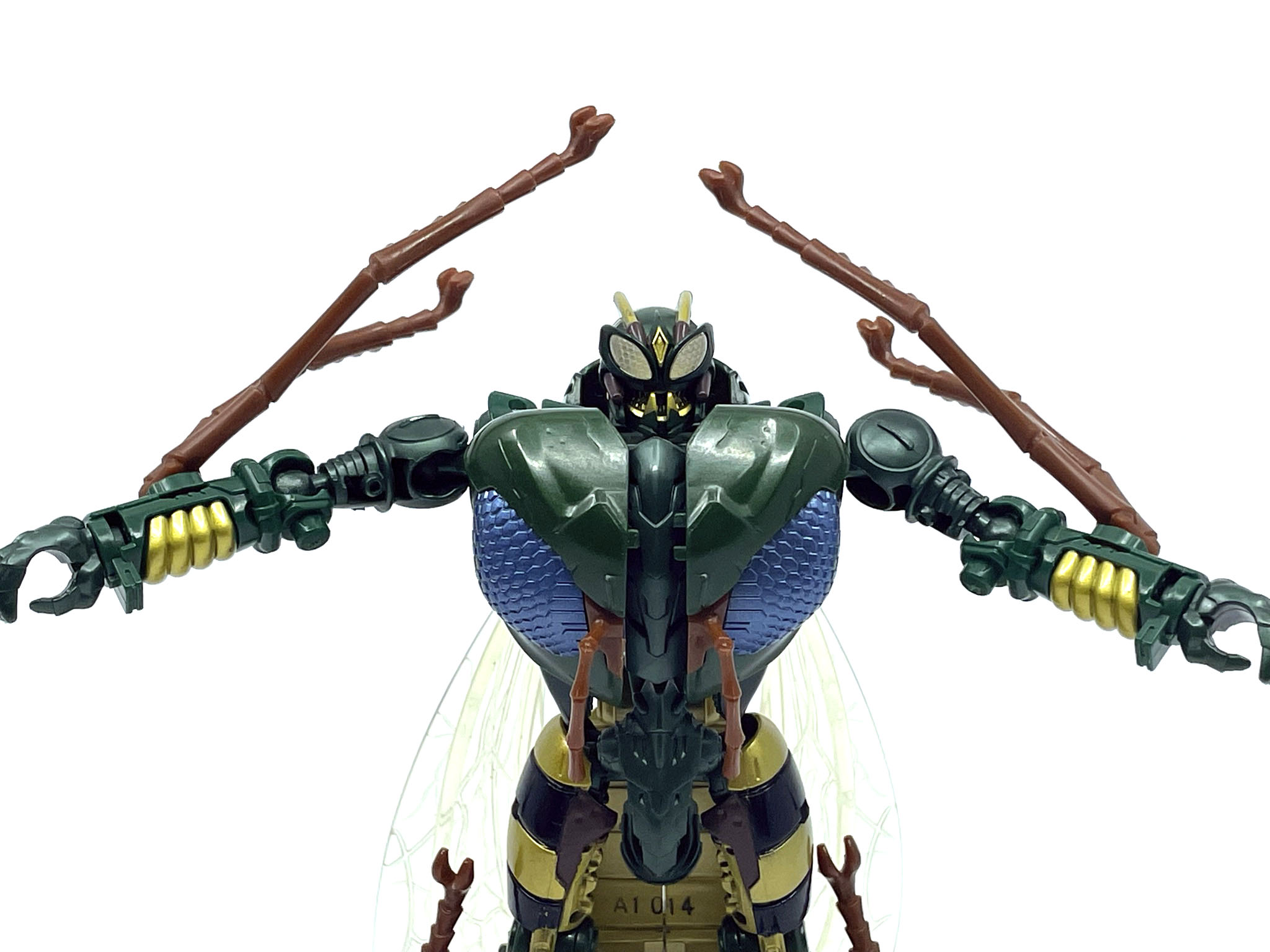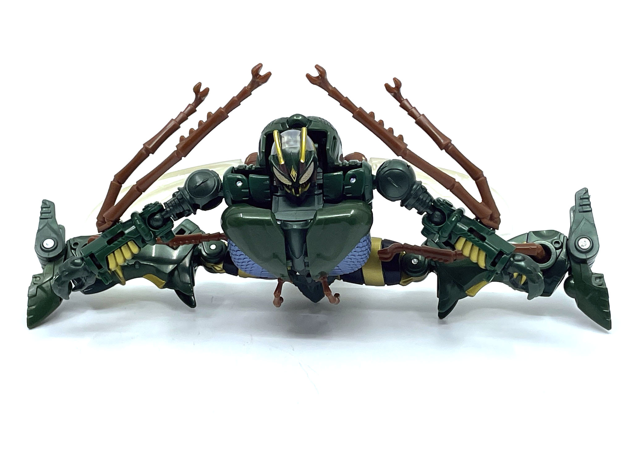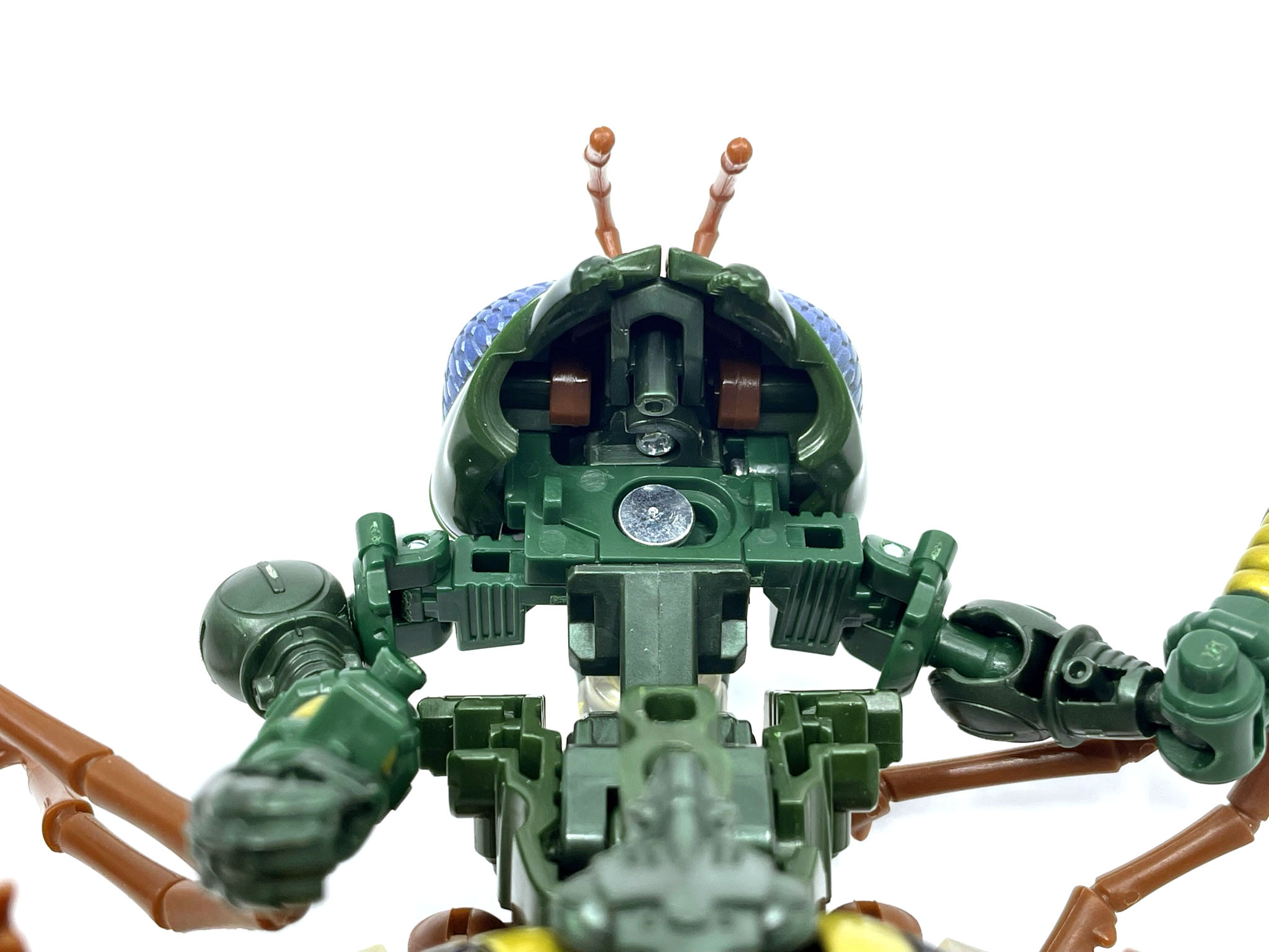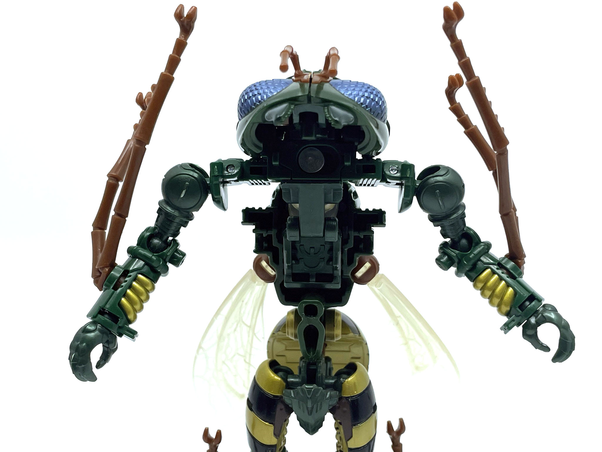 벌 다리가 달린 팔과 다리. 애니메이션에선 벌다리가 압축해서 몸에 들어가는 방식이지만 완구에선 그게 불가능해서 기다란 벌 다리가 남아 있습니다.