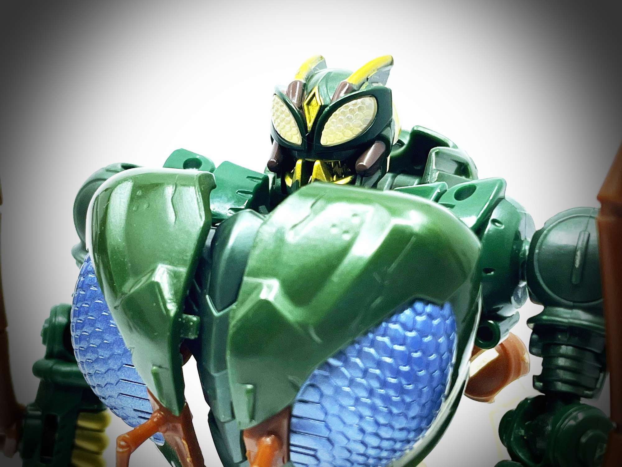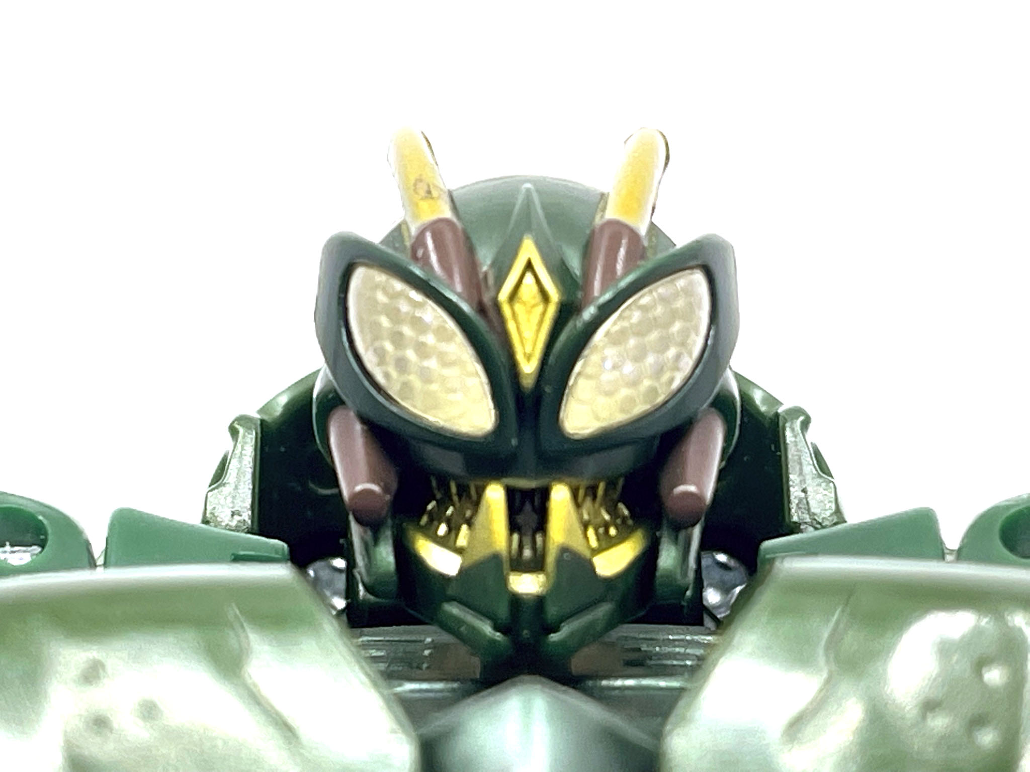 더듬이의 검은 줄무늬만 안 됐지 살인적인 퀄리티를 자랑합니다. 도색 역시 색분할이 훌륭해서 입가의 금칠이 무척 잘 됐습니다. 해즈브로판은 입가에 도색이 전혀 안 됐는데, 이 당시 타카라토미의 레전즈판을 모으는 이유가 여기에 있지요.