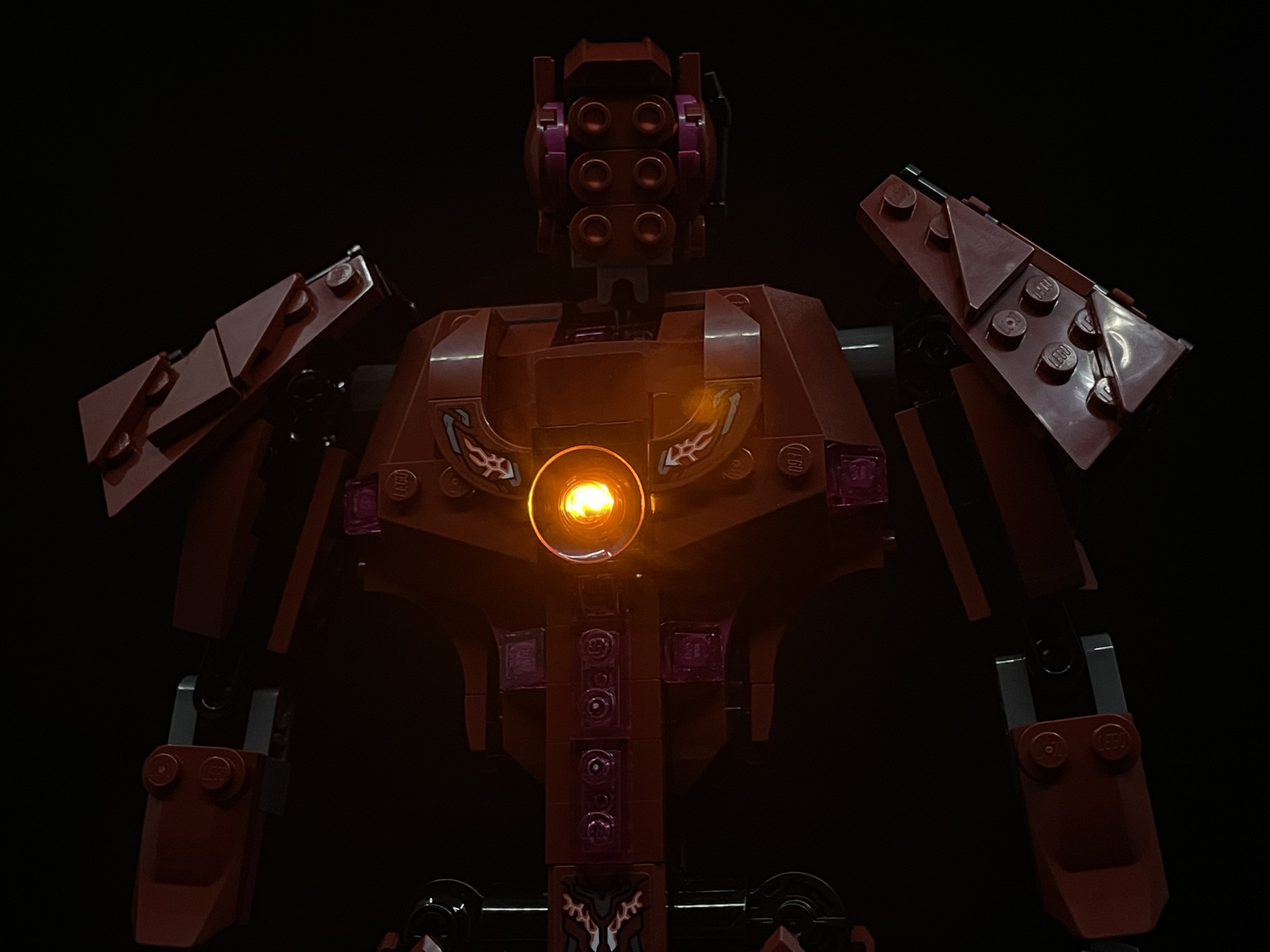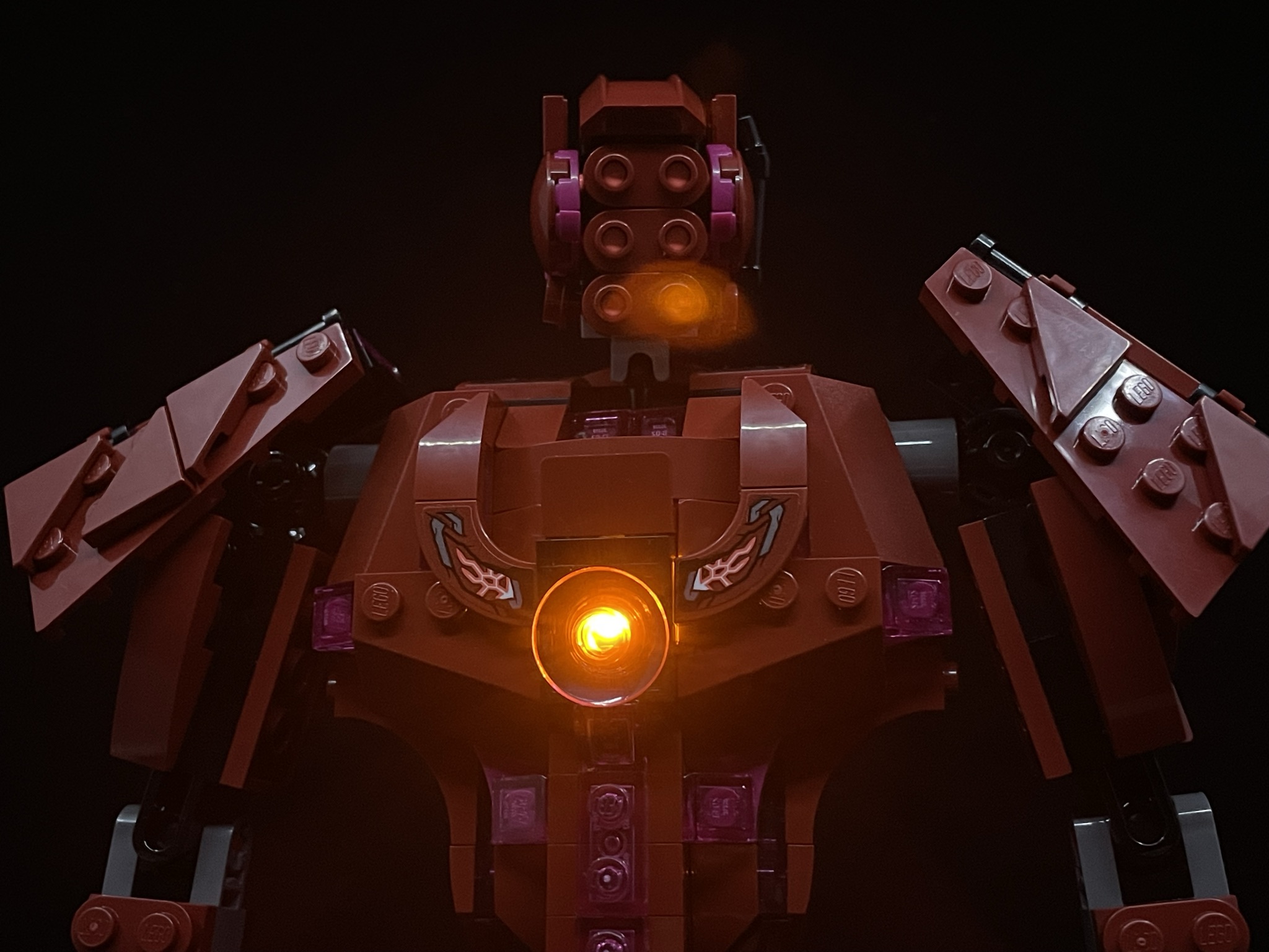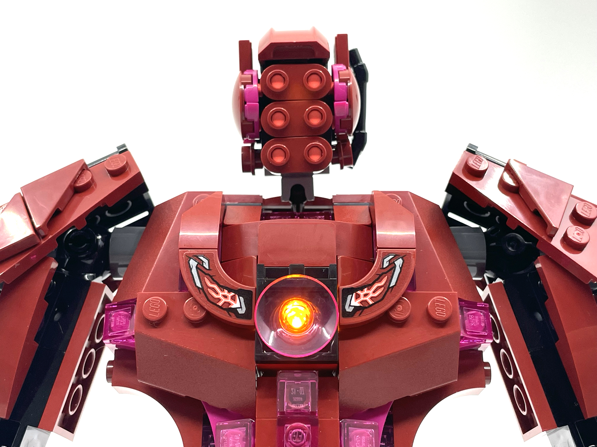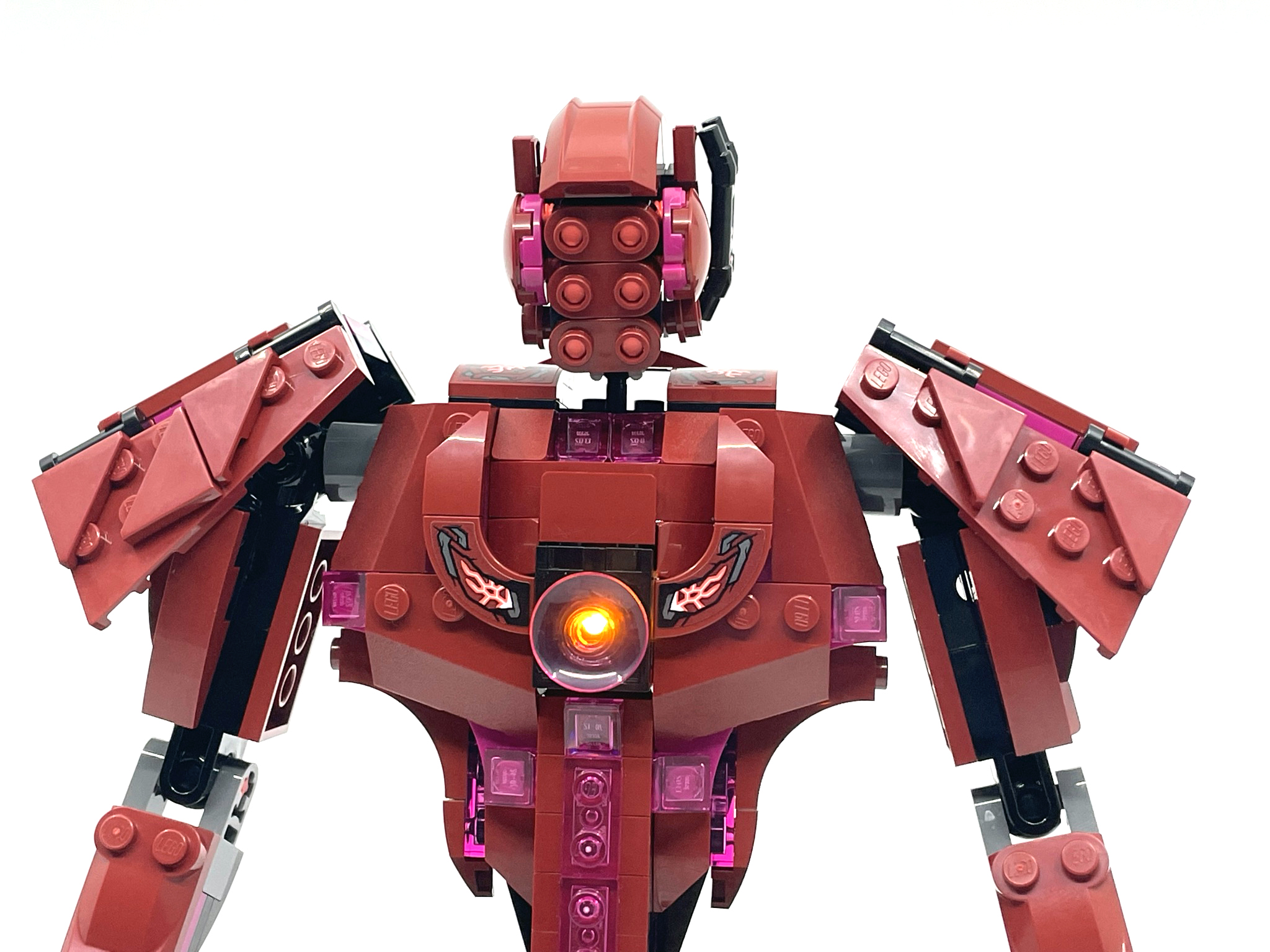 아리솀의 가슴엔 발광 브릭이 존재해 뒤에서 버튼을 눌러주면 빛을 발산합니다.