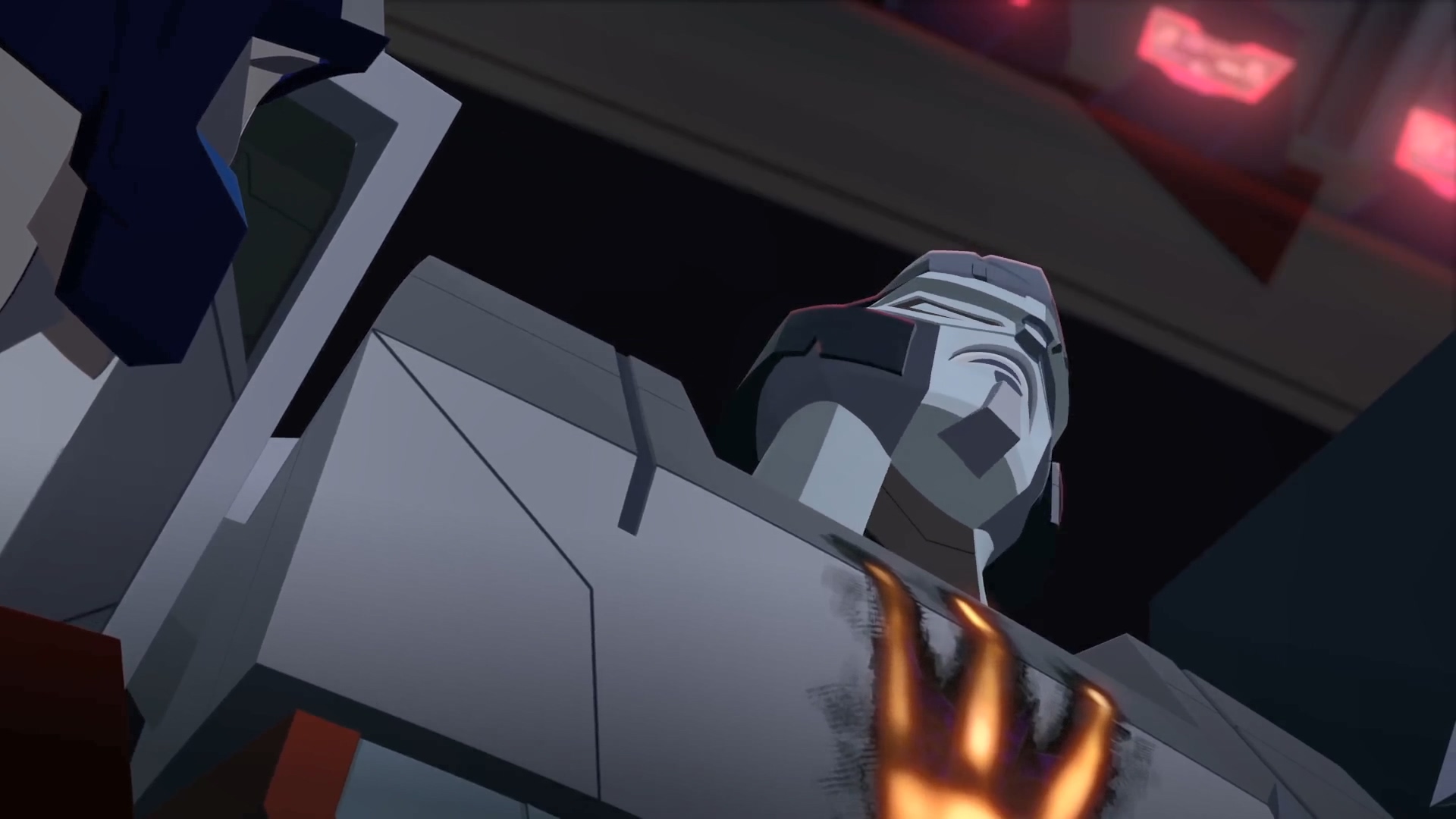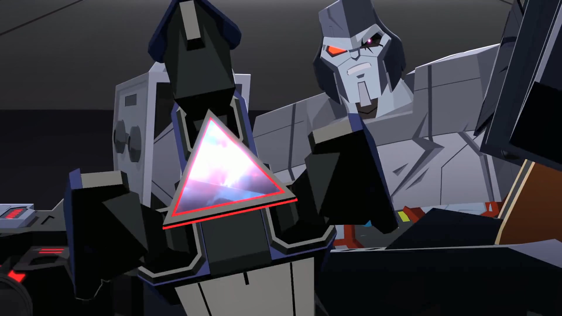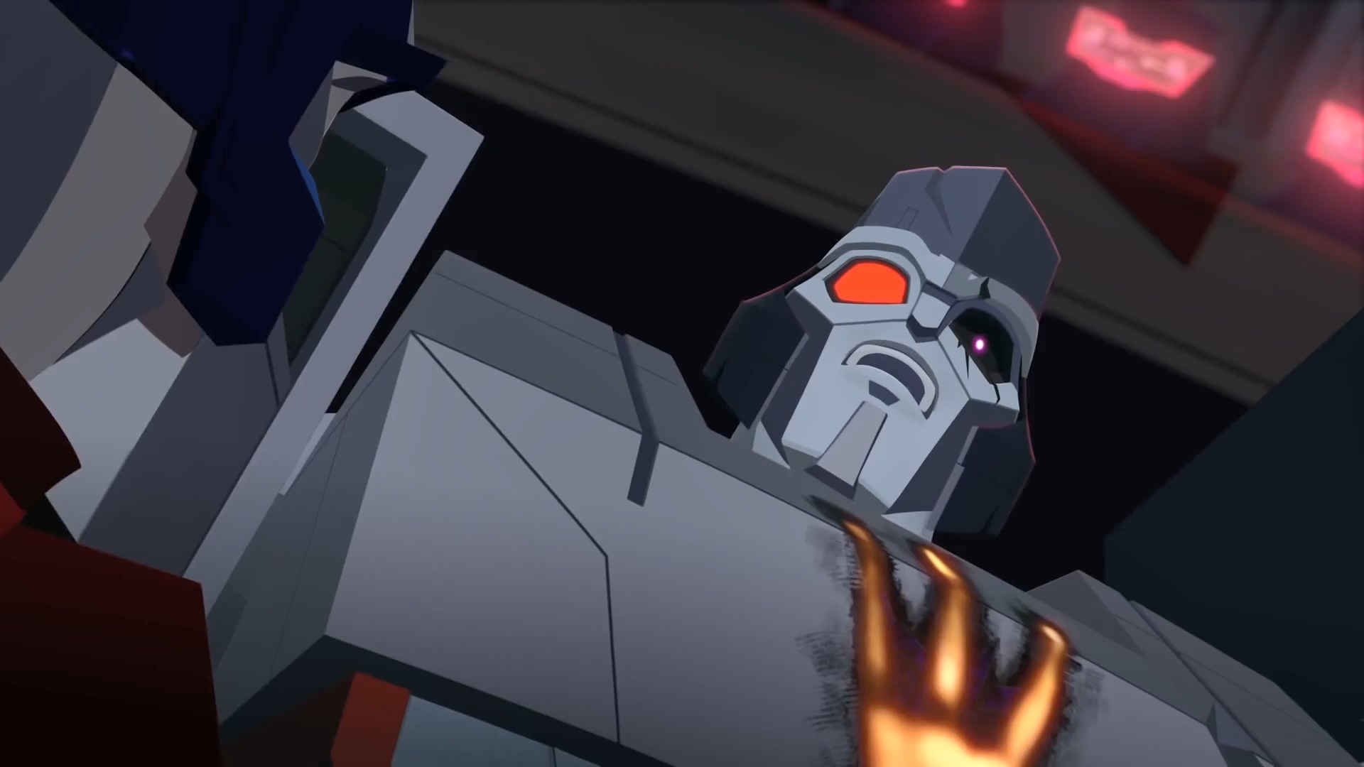 시즌 1에서도 잠깐 나왔던 메가트론이 옵티머스 프라임에게 제안하는 순간입니다. 본편 우주에서의 메가트론은 자신의 제안을 거절한 옵티머스 프라임을 돌려보냈지만, 여기서 분기점이 발생합니다. 메가트론은 자신을 거절하는 옵티머스를 돌려보내지 않고 바로 공격해 무력화시킵니다.