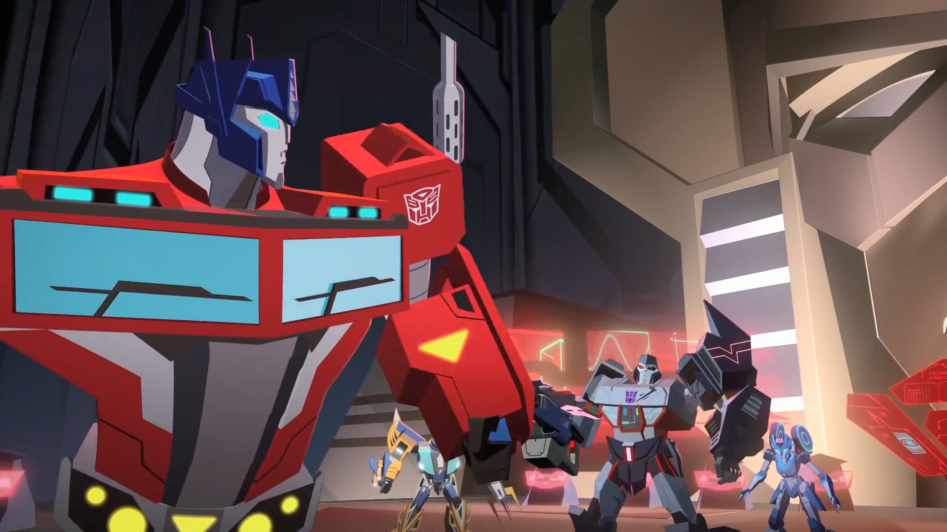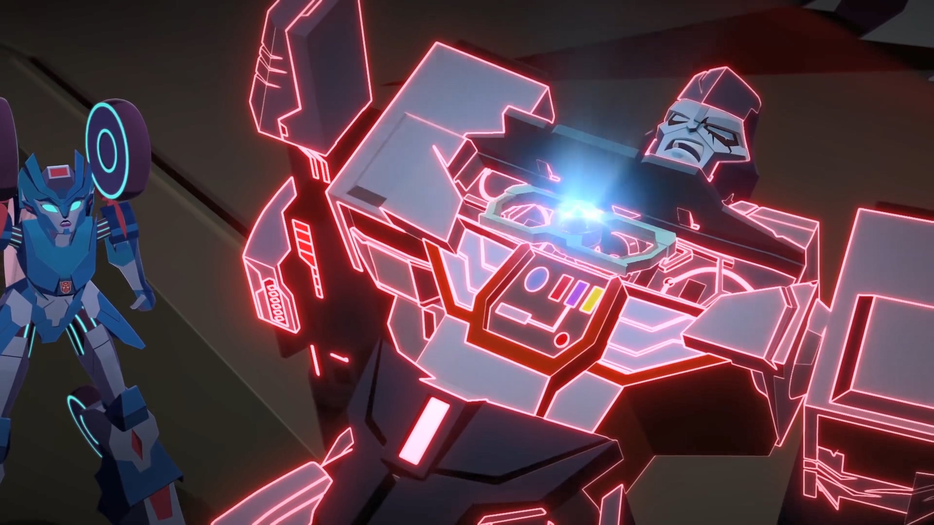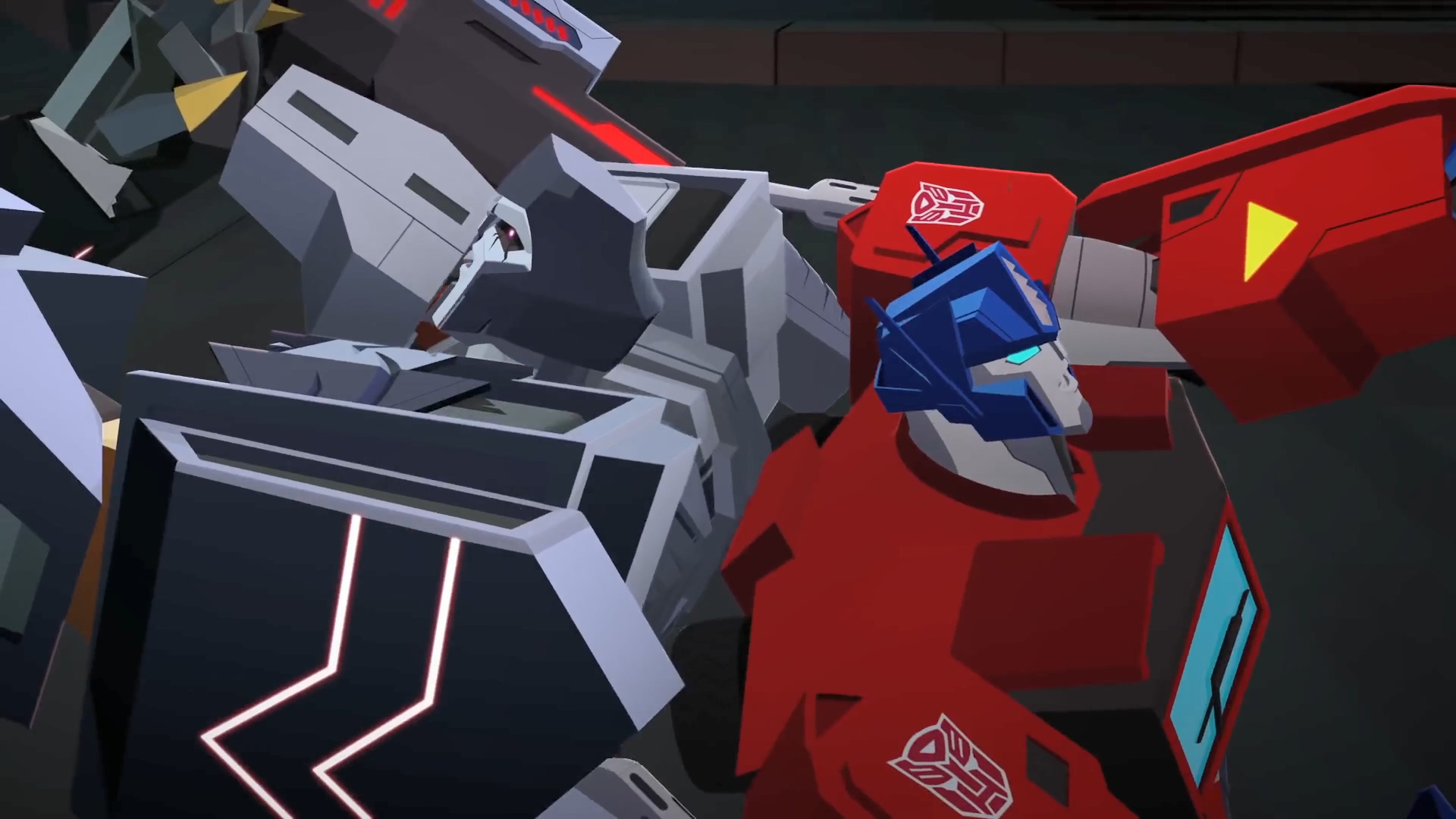 시즌 1에서도 잠깐 나왔던 메가트론이 옵티머스 프라임에게 제안하는 순간입니다. 본편 우주에서의 메가트론은 자신의 제안을 거절한 옵티머스 프라임을 돌려보냈지만, 여기서 분기점이 발생합니다. 메가트론은 자신을 거절하는 옵티머스를 돌려보내지 않고 바로 공격해 무력화시킵니다.