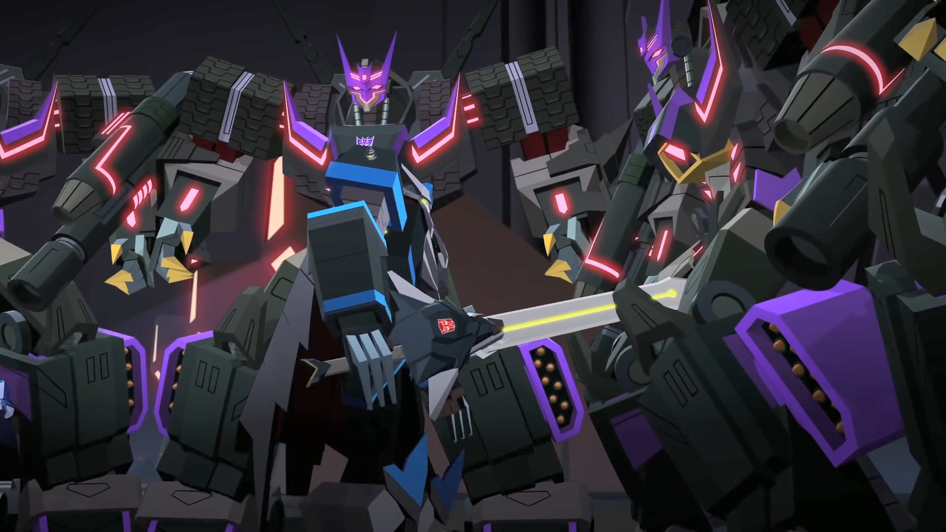 양쪽 진영의 리더들도 밀릴 정도로 막강한 완벽한 디셉티콘들. 옵티머스와 메가트론은 매트릭스의 힘을 모두에게 나눕니다.