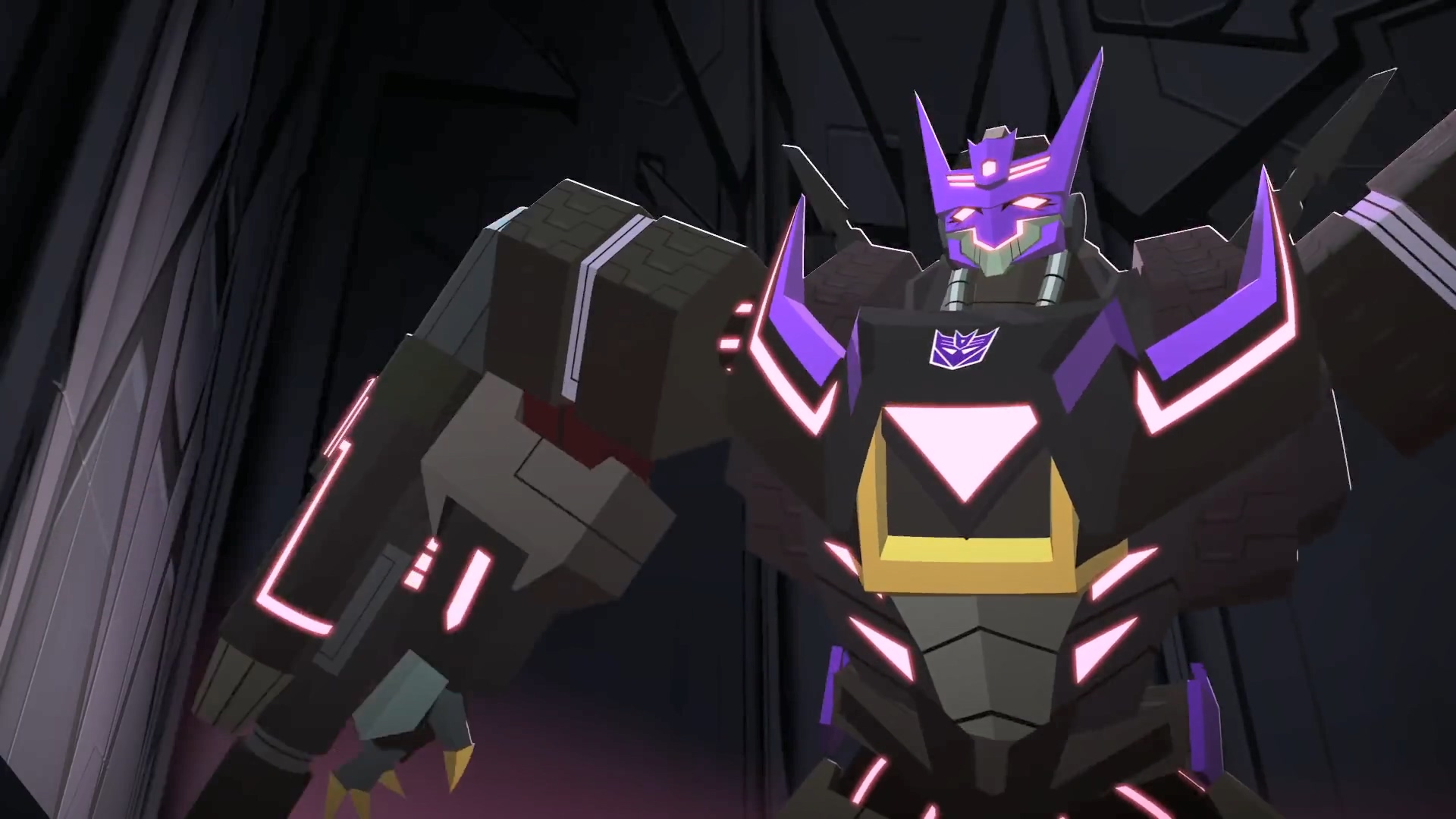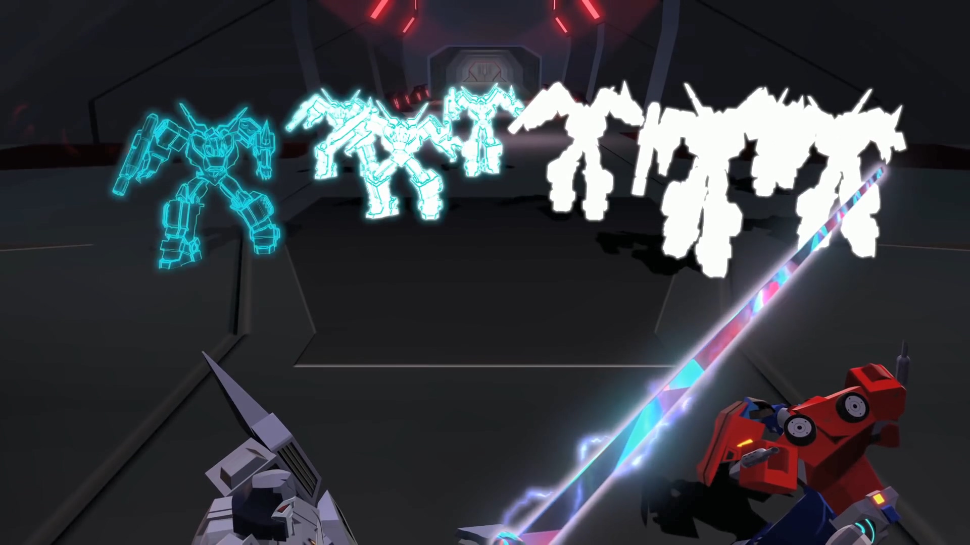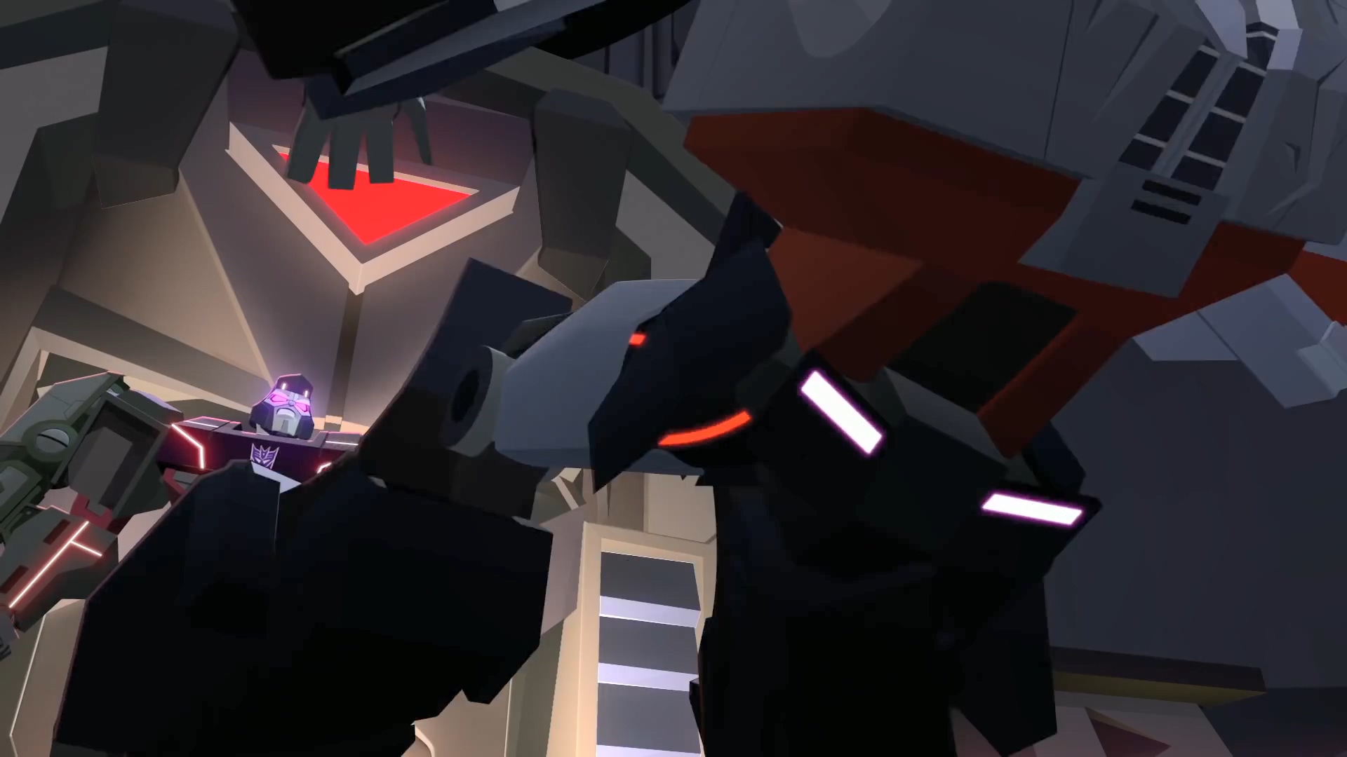 하지만 벡터 시그마 없이 어떻게 이들을 만들었는지 의문을 가진 범블비. 메가트론은 범블비의 말이 맞다며 이 완벽한 디셉티콘 군단은 메가트론이 아닌 다른 존재의 디셉티콘 군대임을 알립니다. 이에 대한 정보 자체가 없던 섀도우 스트라이커는 무슨 말을 하는지 몰라서 설명을 요구.