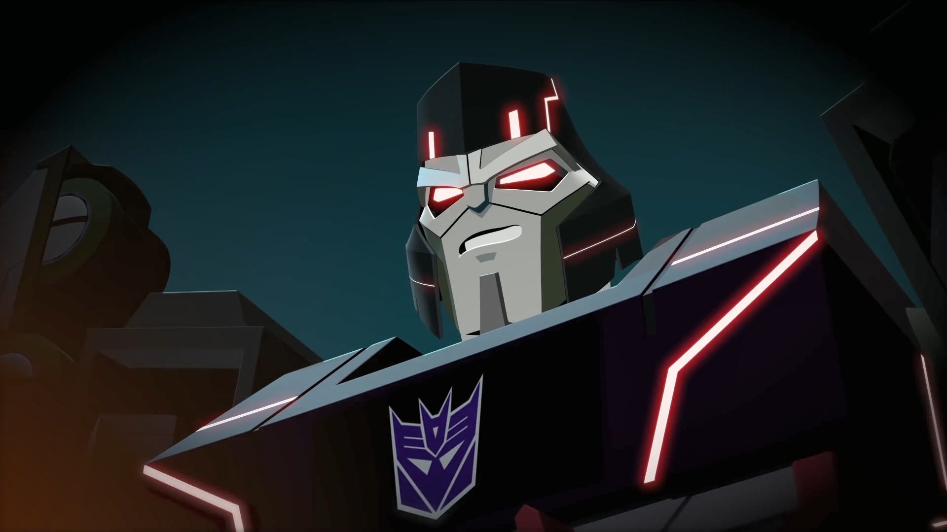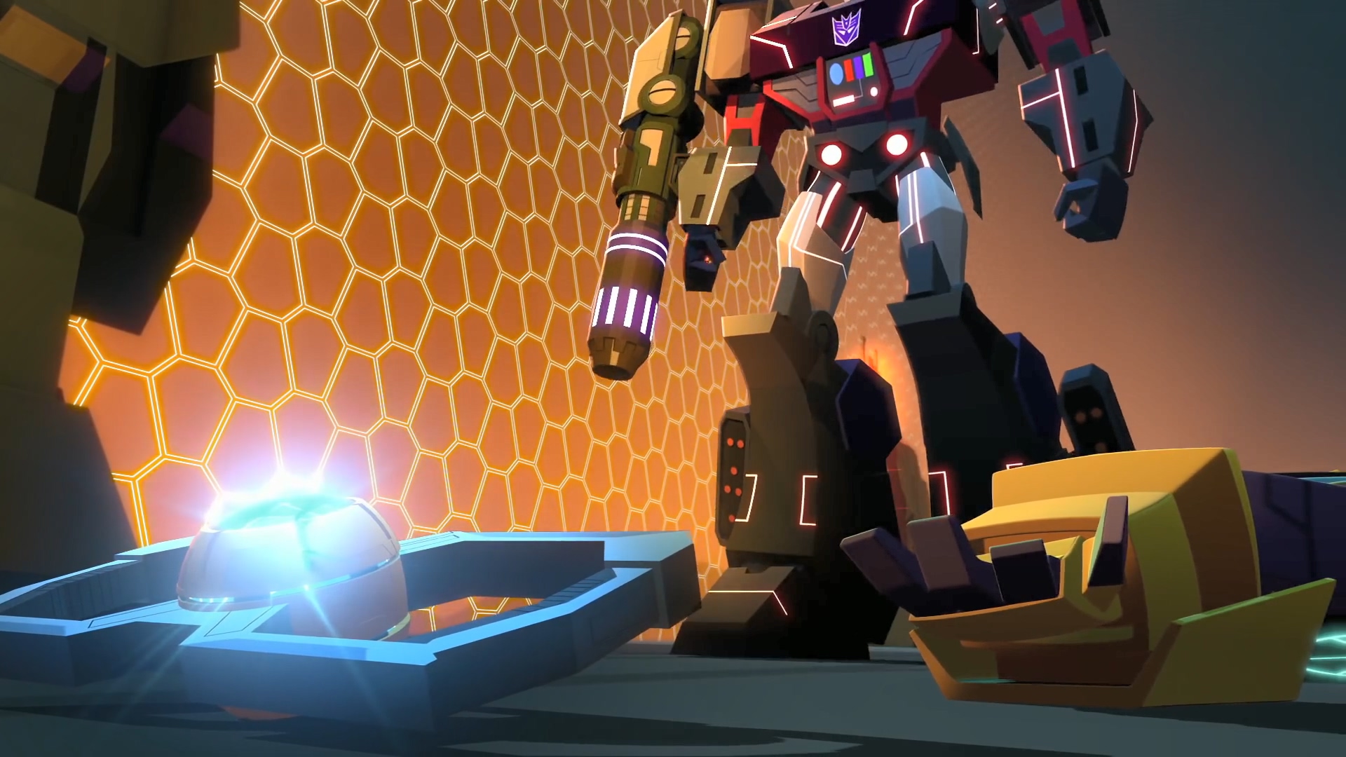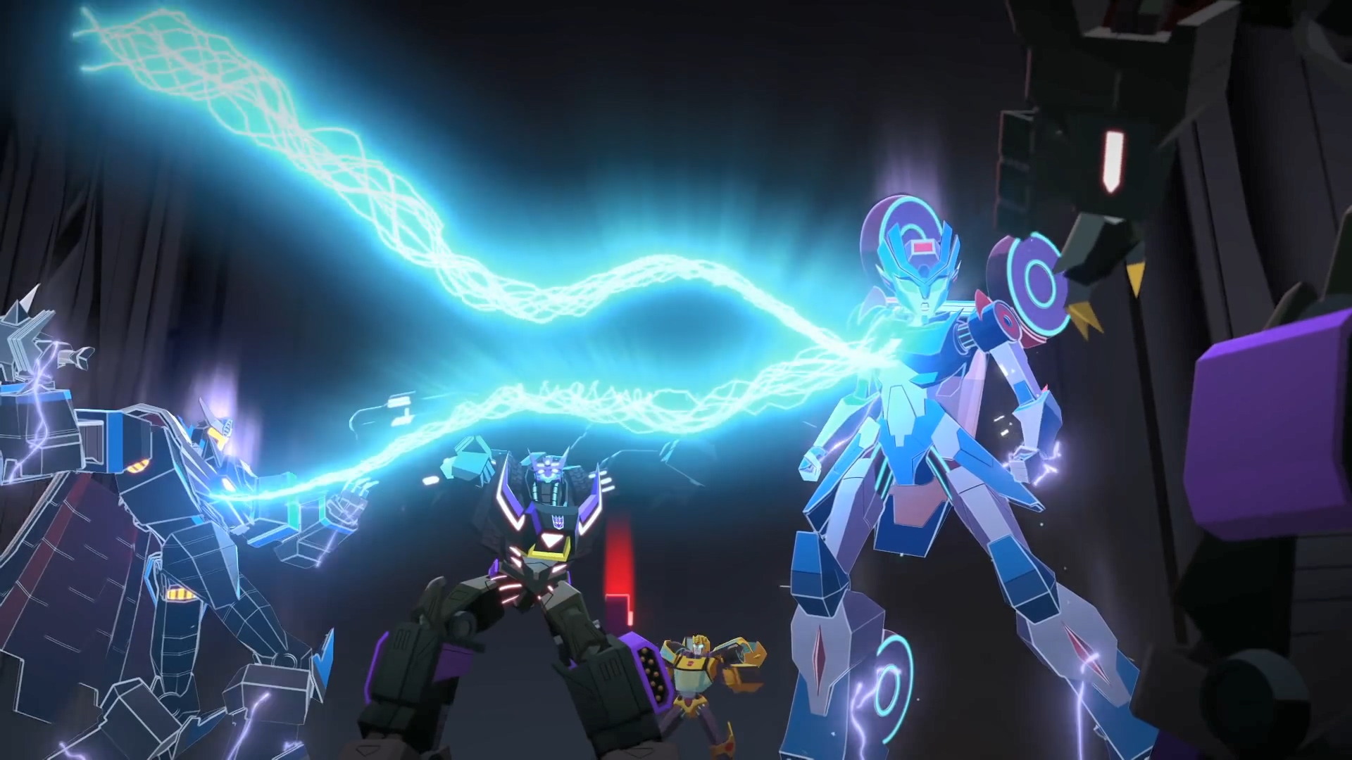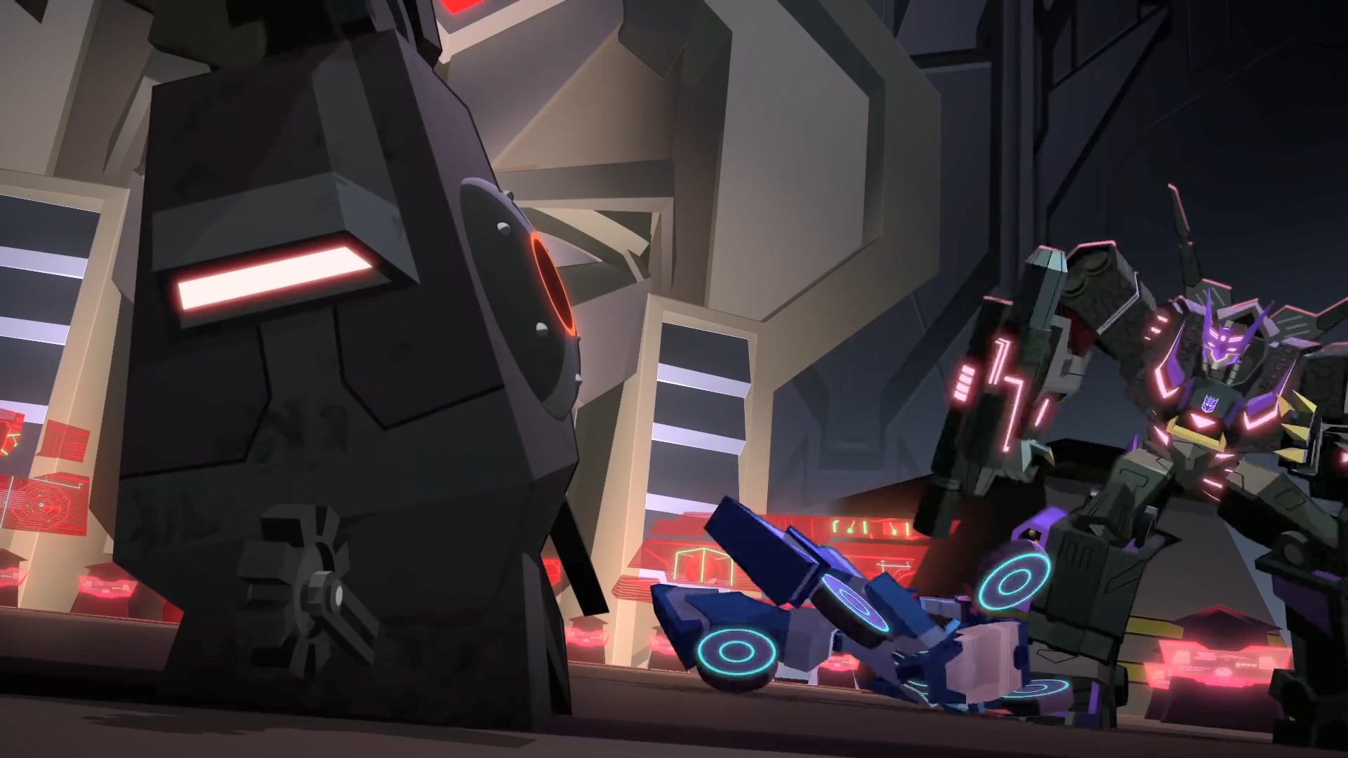 하지만 벡터 시그마 없이 어떻게 이들을 만들었는지 의문을 가진 범블비. 메가트론은 범블비의 말이 맞다며 이 완벽한 디셉티콘 군단은 메가트론이 아닌 다른 존재의 디셉티콘 군대임을 알립니다. 이에 대한 정보 자체가 없던 섀도우 스트라이커는 무슨 말을 하는지 몰라서 설명을 요구.