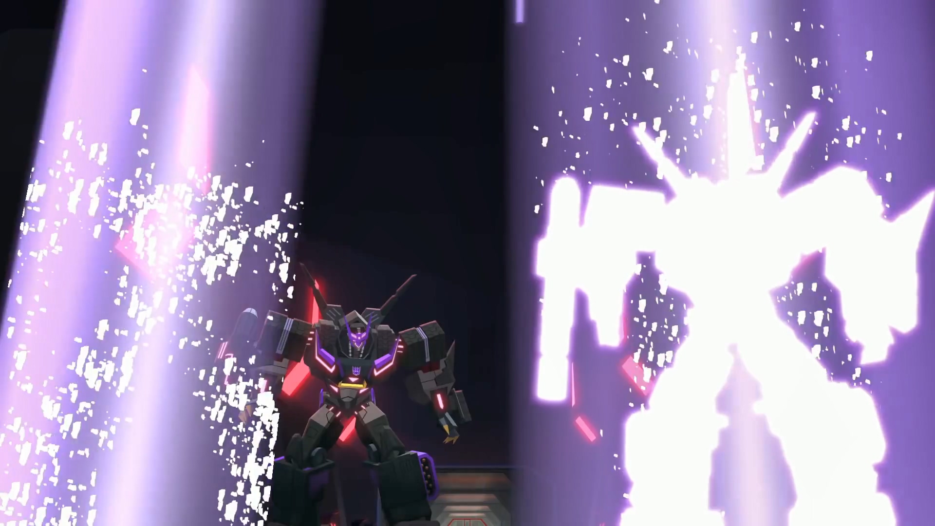 쉴틈 없이 몰려오는 완벽한 디셉티콘 군대. 메가트론은 아스트로트레인이 만든 비우주화 시키는 대포로 순식간에 적들을 우주의 틈새로 보내버립니다.