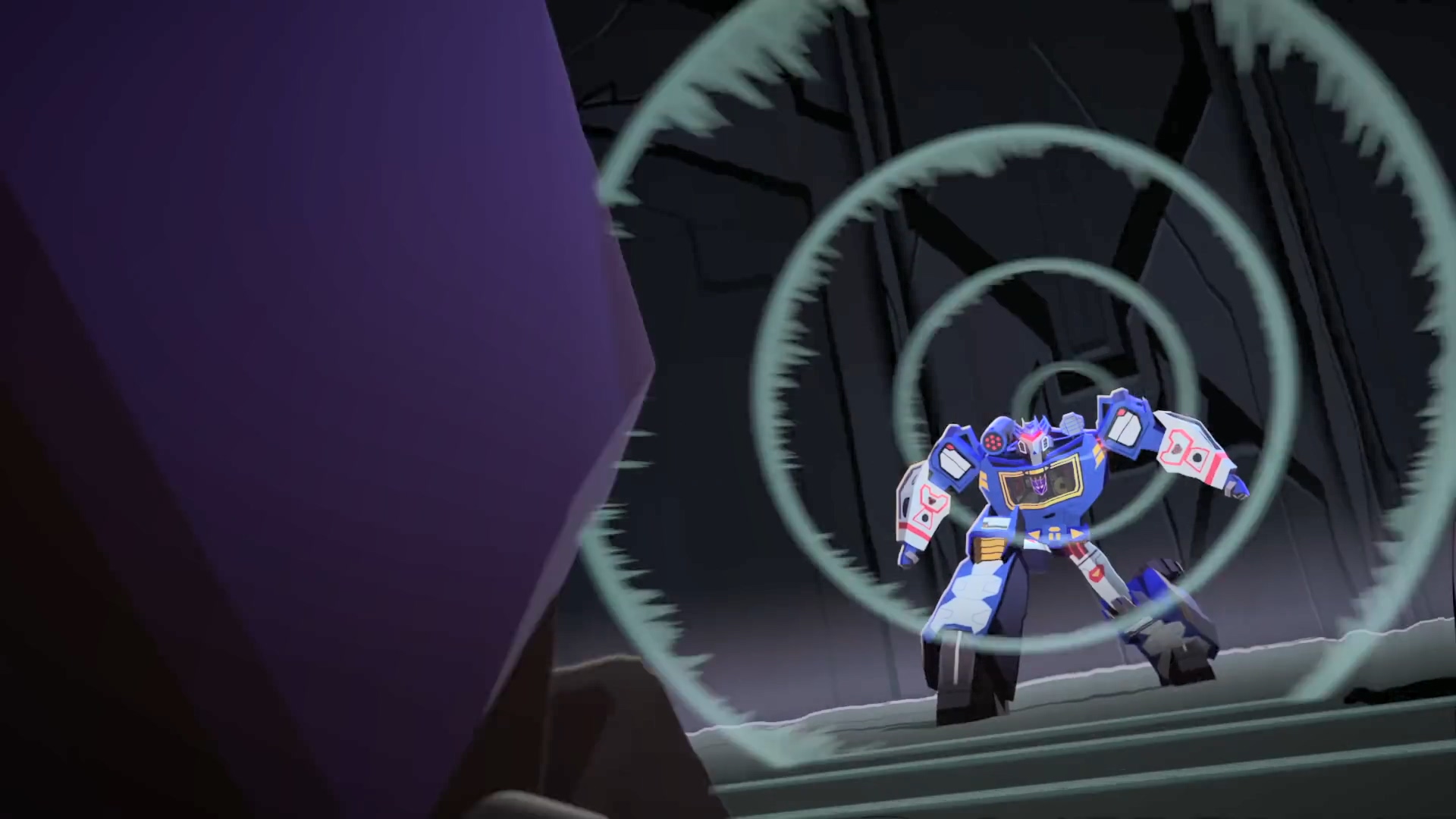 사운드웨이브가 강력한 음파 공격을 날리자 처음엔 주춤하지만 아무렇지 않게 뚫고 들어와 사운드웨이브를 날려버립니다.