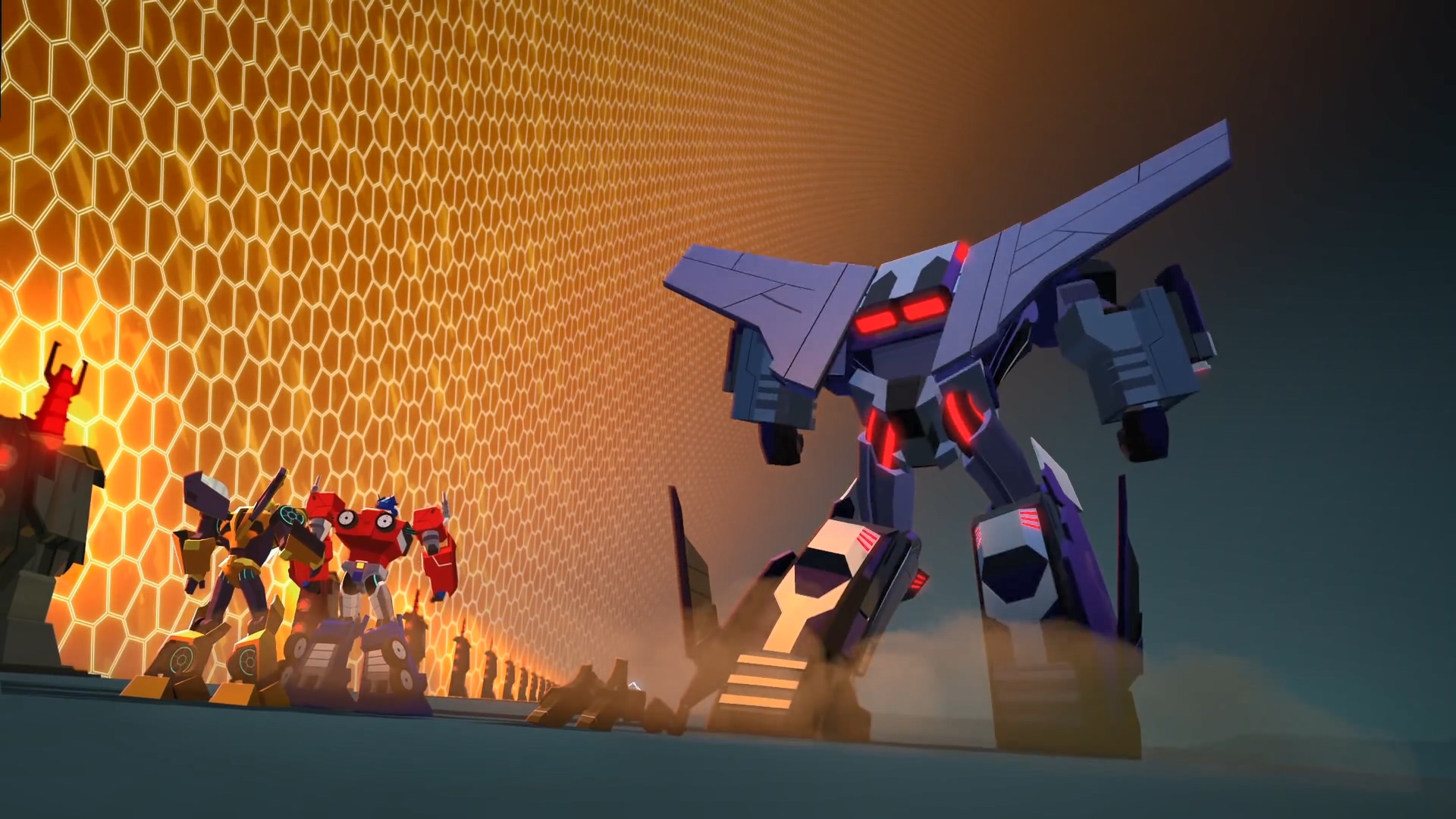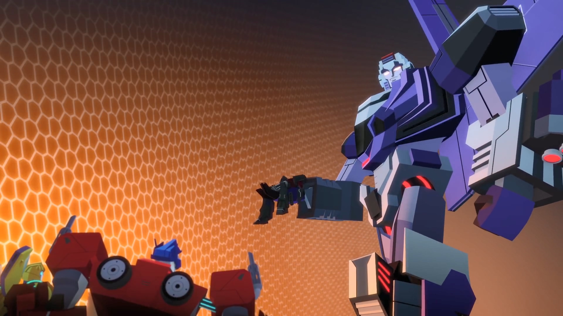 허나, 메가트론 X는 이들의 충성을 거절합니다. 메가트론 X는 이미 완벽한 디셉티콘 군대가 존재합니다. 메가트론에게 필요한 것은 자신에게 충성스러운 디셉티콘 부하들이 아닌 완벽한 디셉티콘 군단임을 알 수 있는 장면.