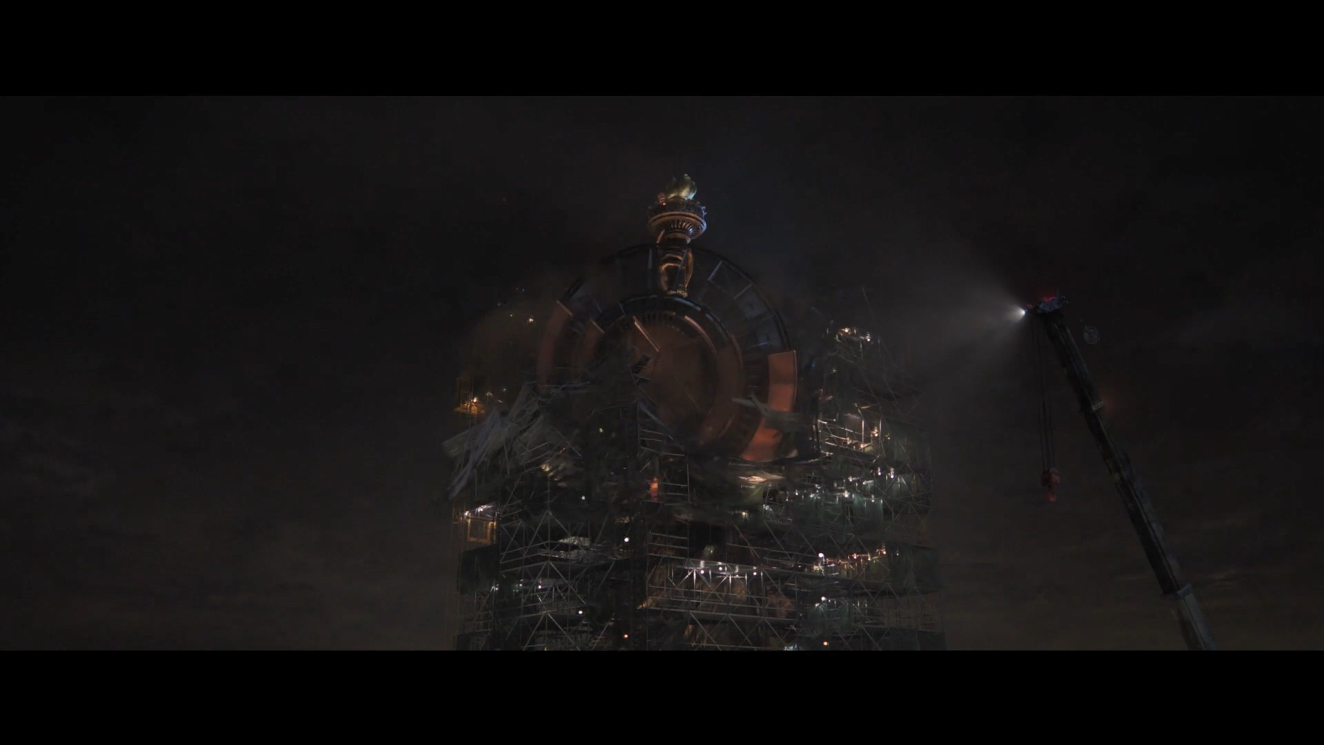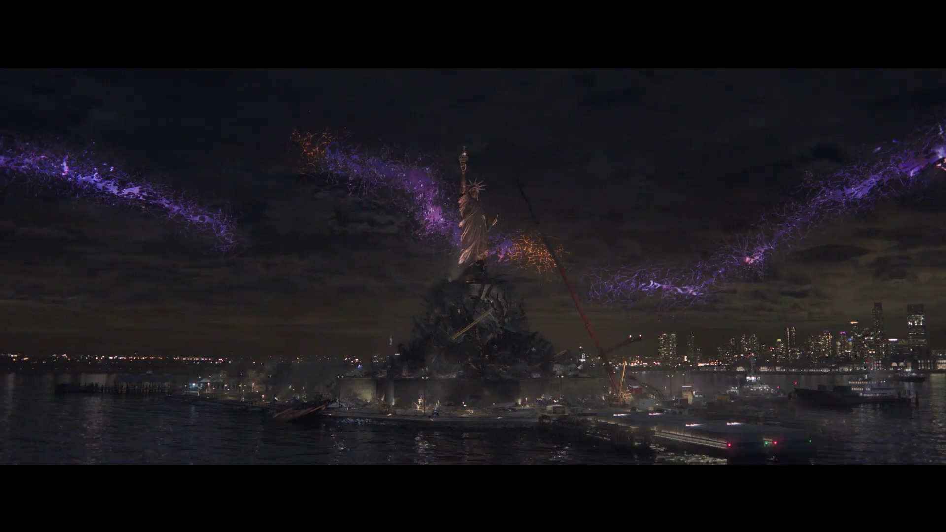 캡틴 아메리카의 방패를 든 것으로 개조되는 자유의 여신상이 무너집니다.