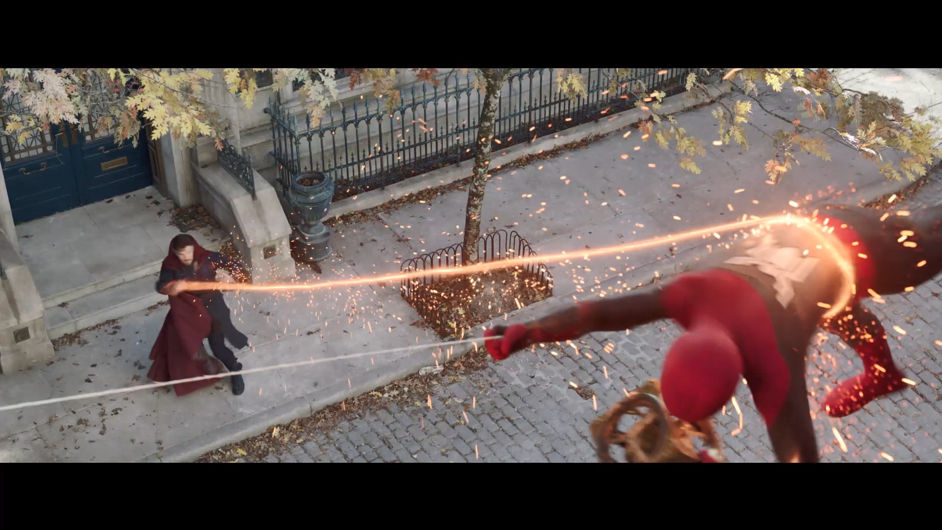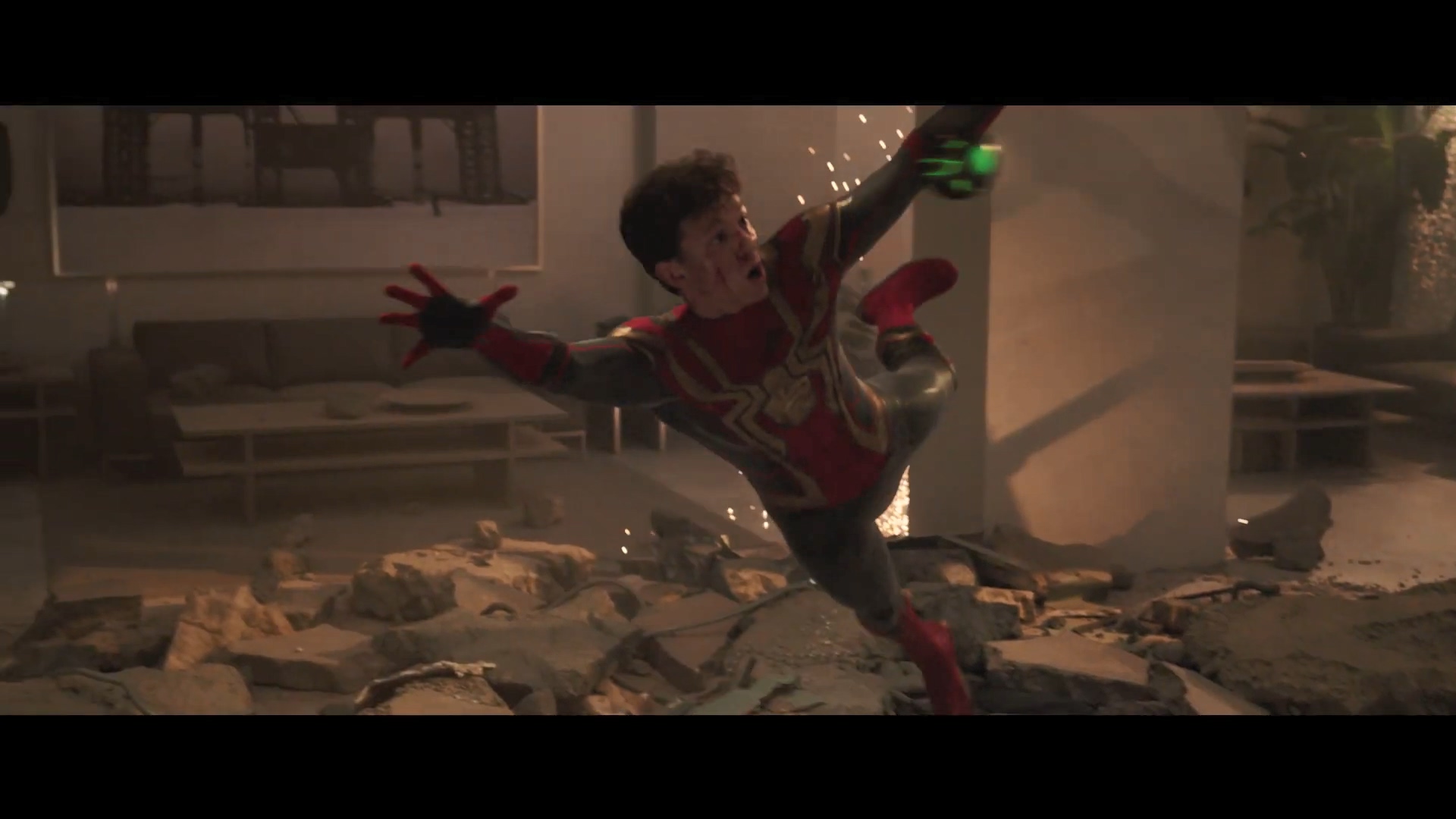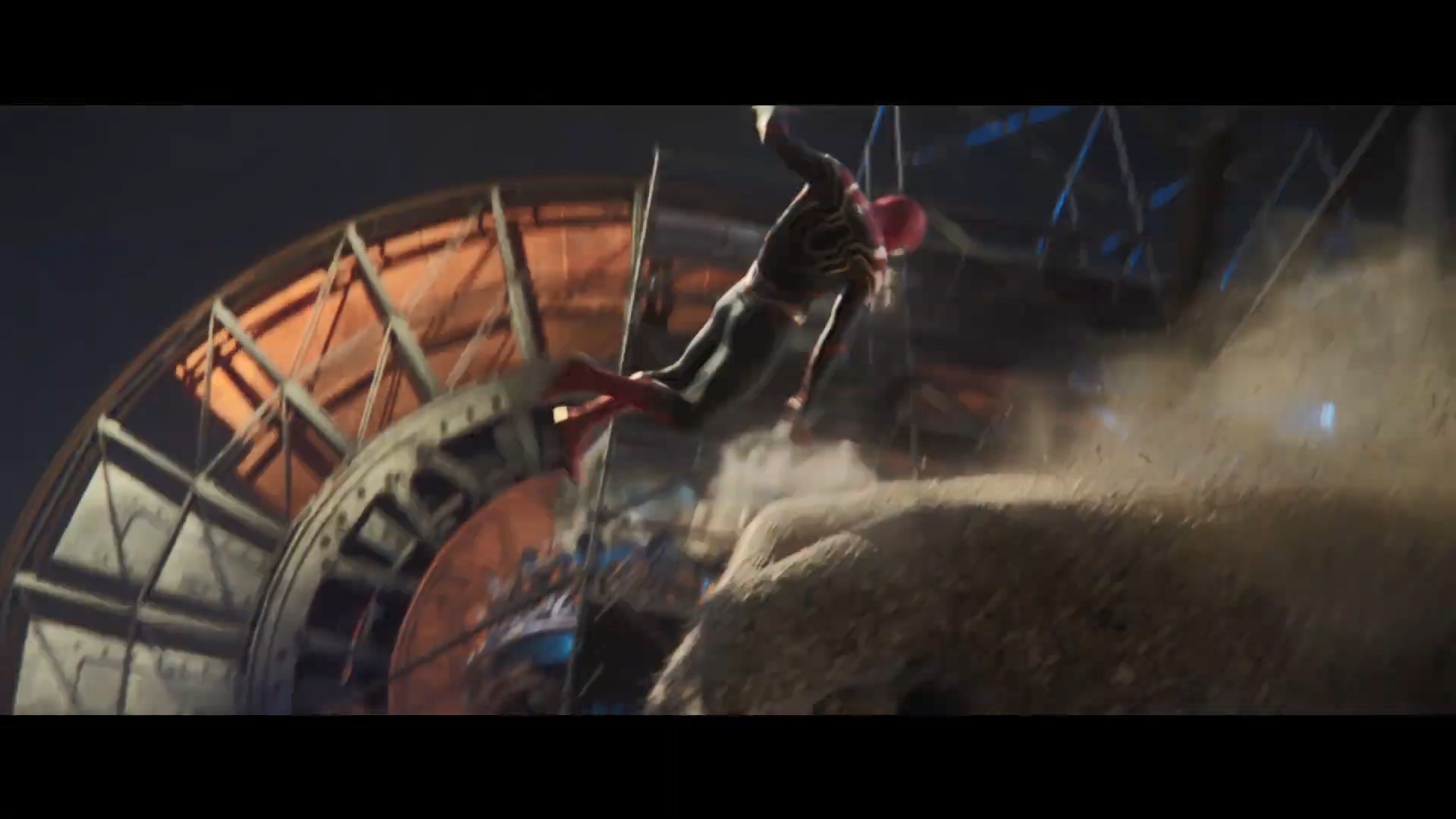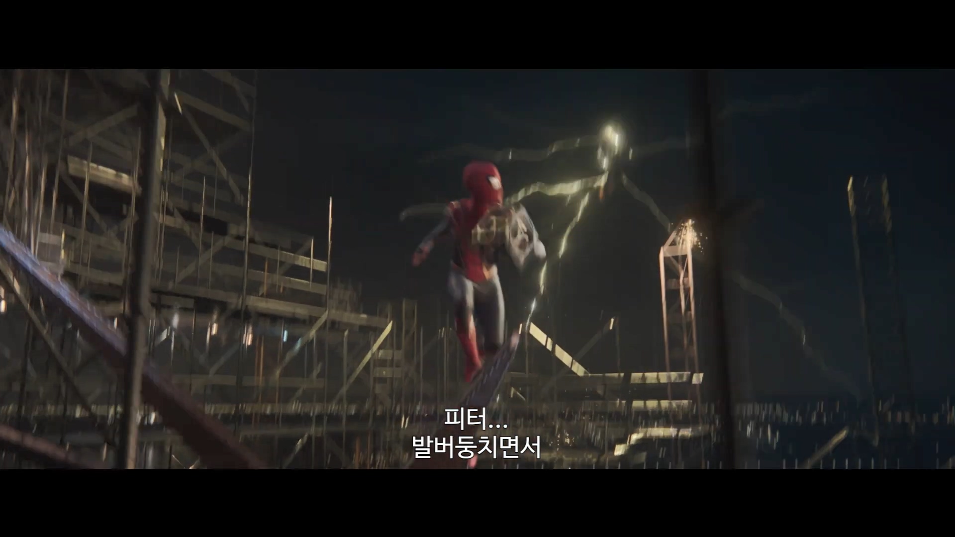 1차 예고편에서 나온 것과 상반된 대사를 말하는 옥토퍼스. 옥토퍼스는 단순히 아이언 스파이더의 모습을 보고 자기 우주의 피터 파커가 새로운 복장을 갖췄다고 생각했던 것으로 보이는데, 얼굴을 보고서 피터 파커가 아니라는 걸 깨닫습니다.