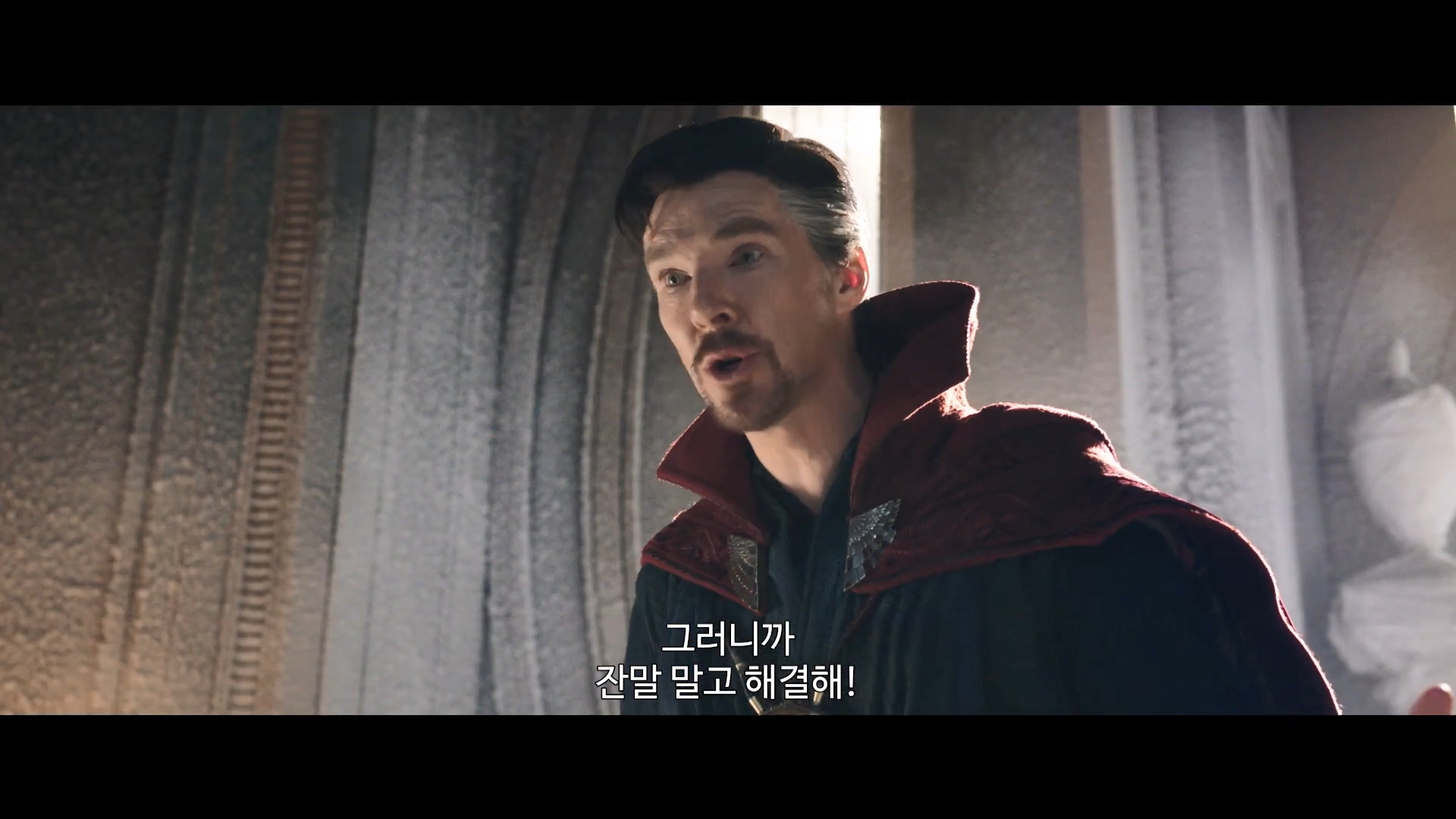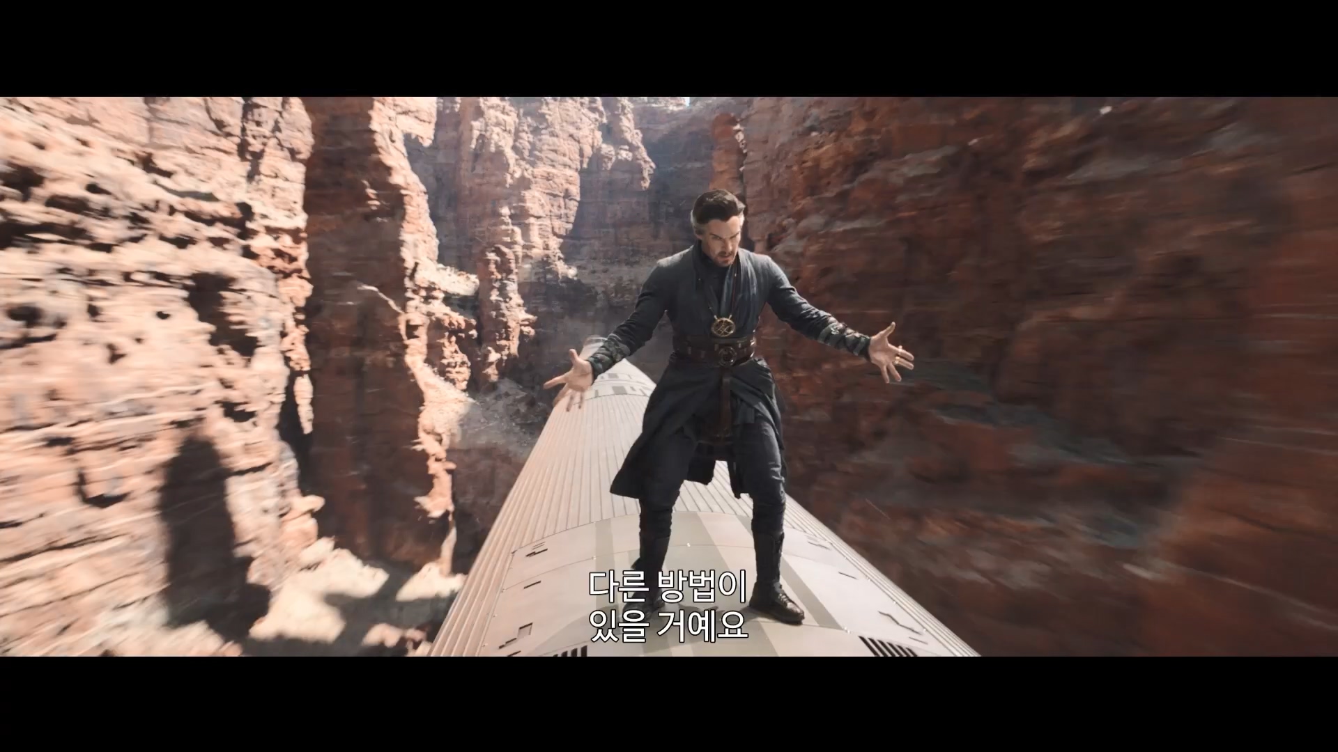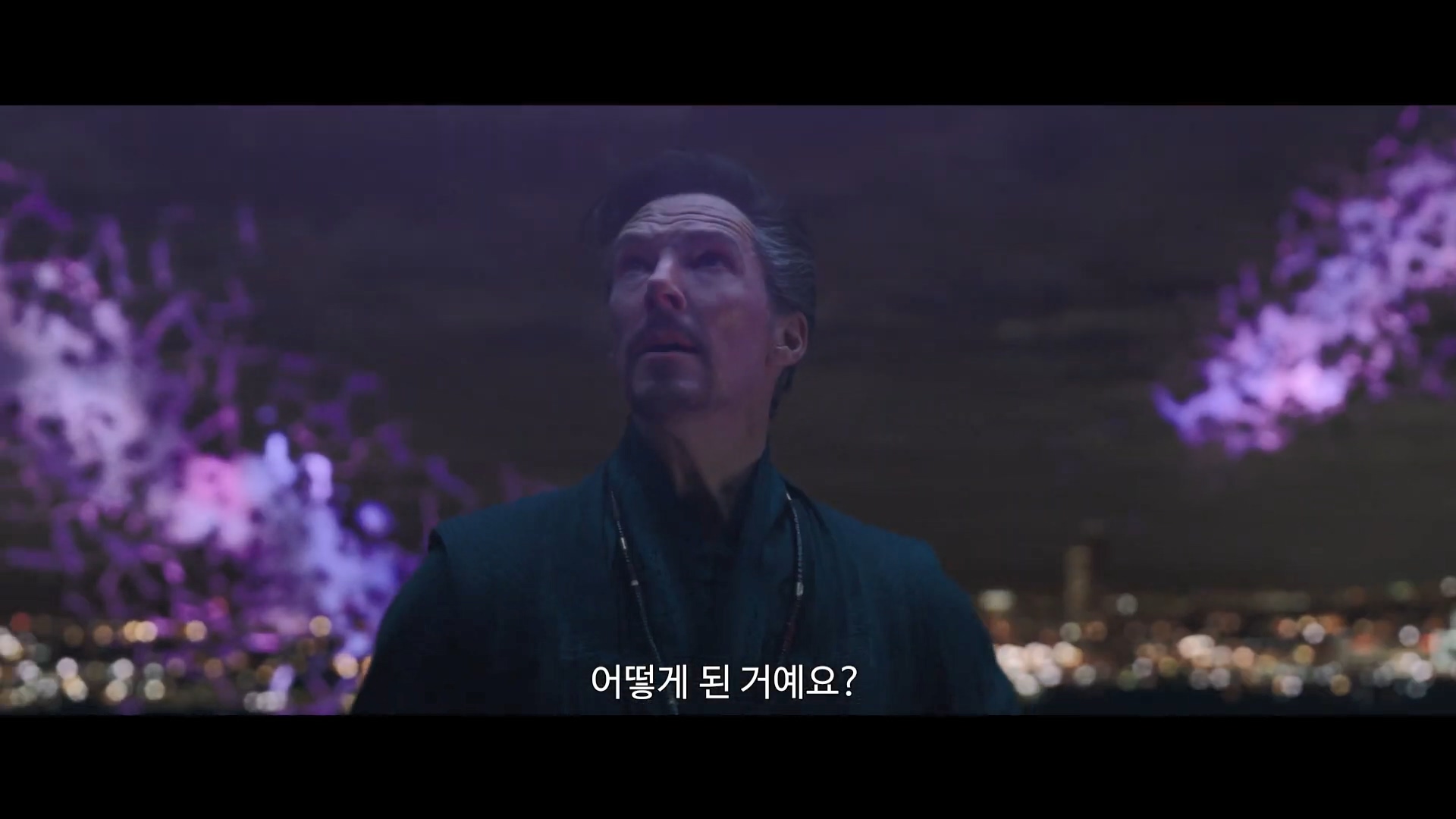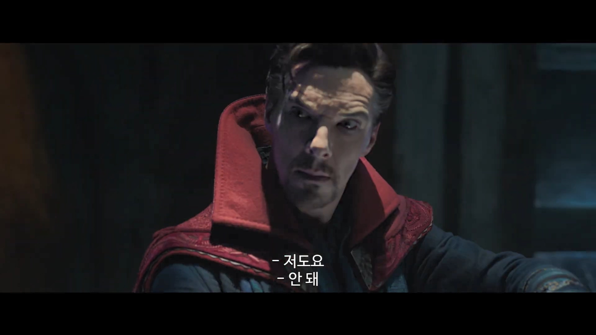 뒷부분은 무언가가 밀려온다고 말하며 이 사태를 막을 수 없다는 닥터 스트레인지의 대사로 위기감을 고조하게 합니다.