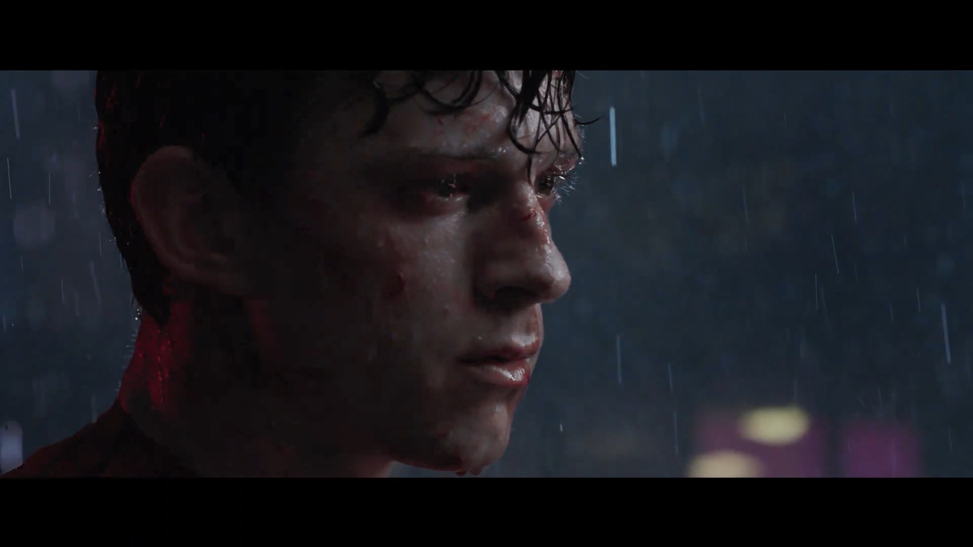 비를 맞으면서 피투성이가 된 피터 파커를 보여주며 시작.