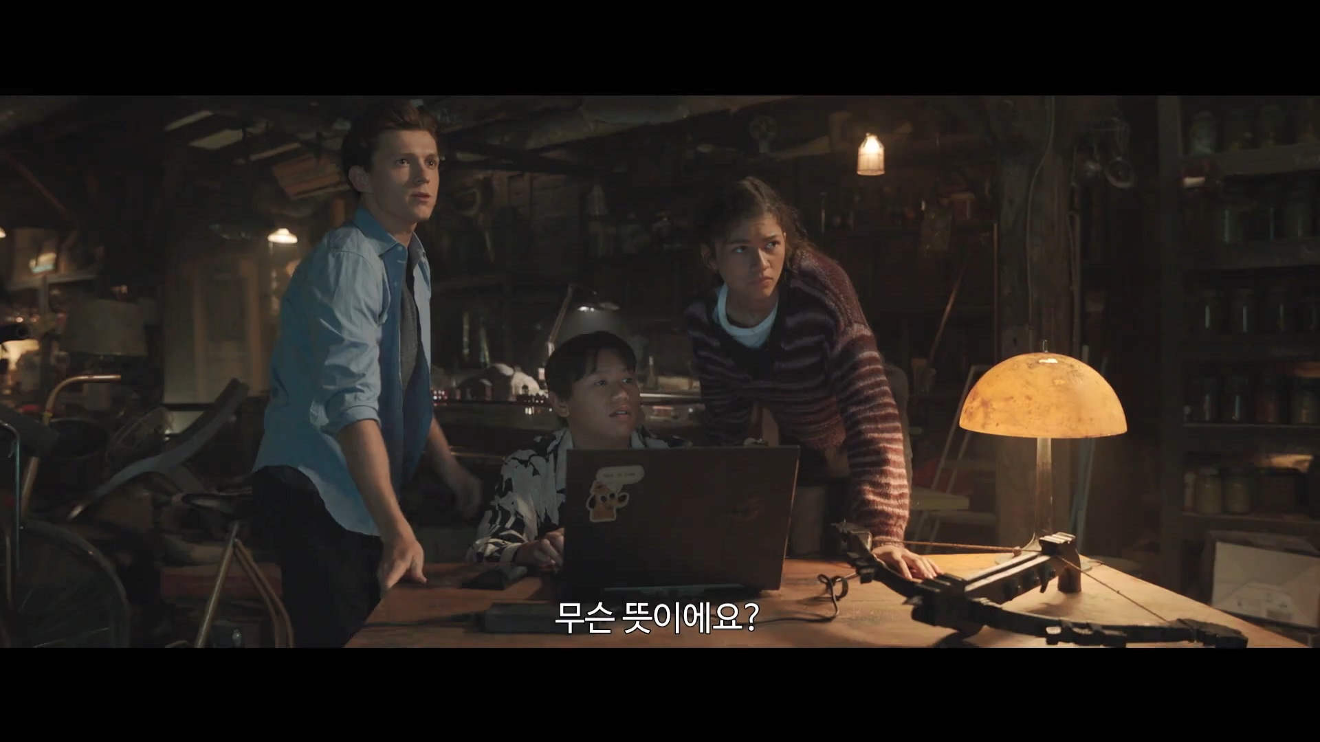 어떤 장치를 빼앗은 피터 파커.