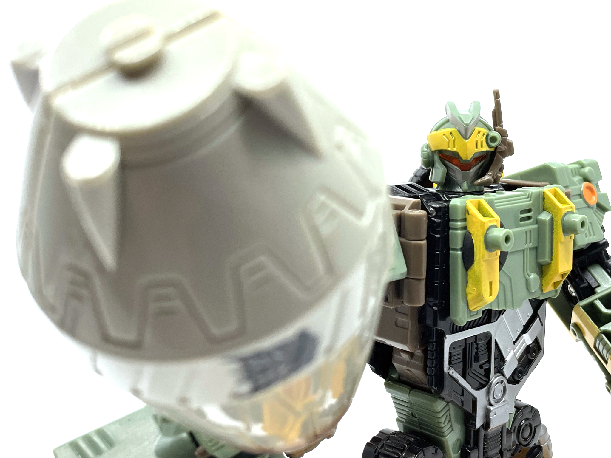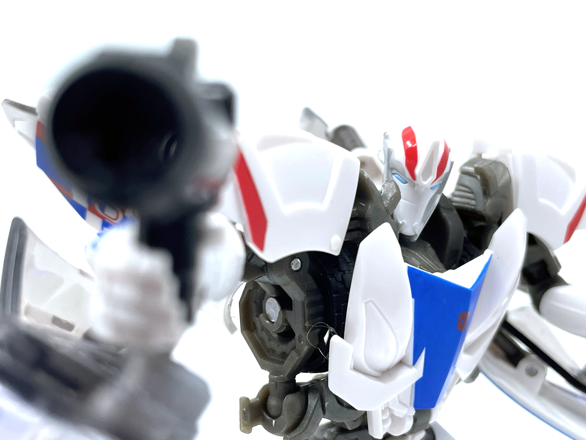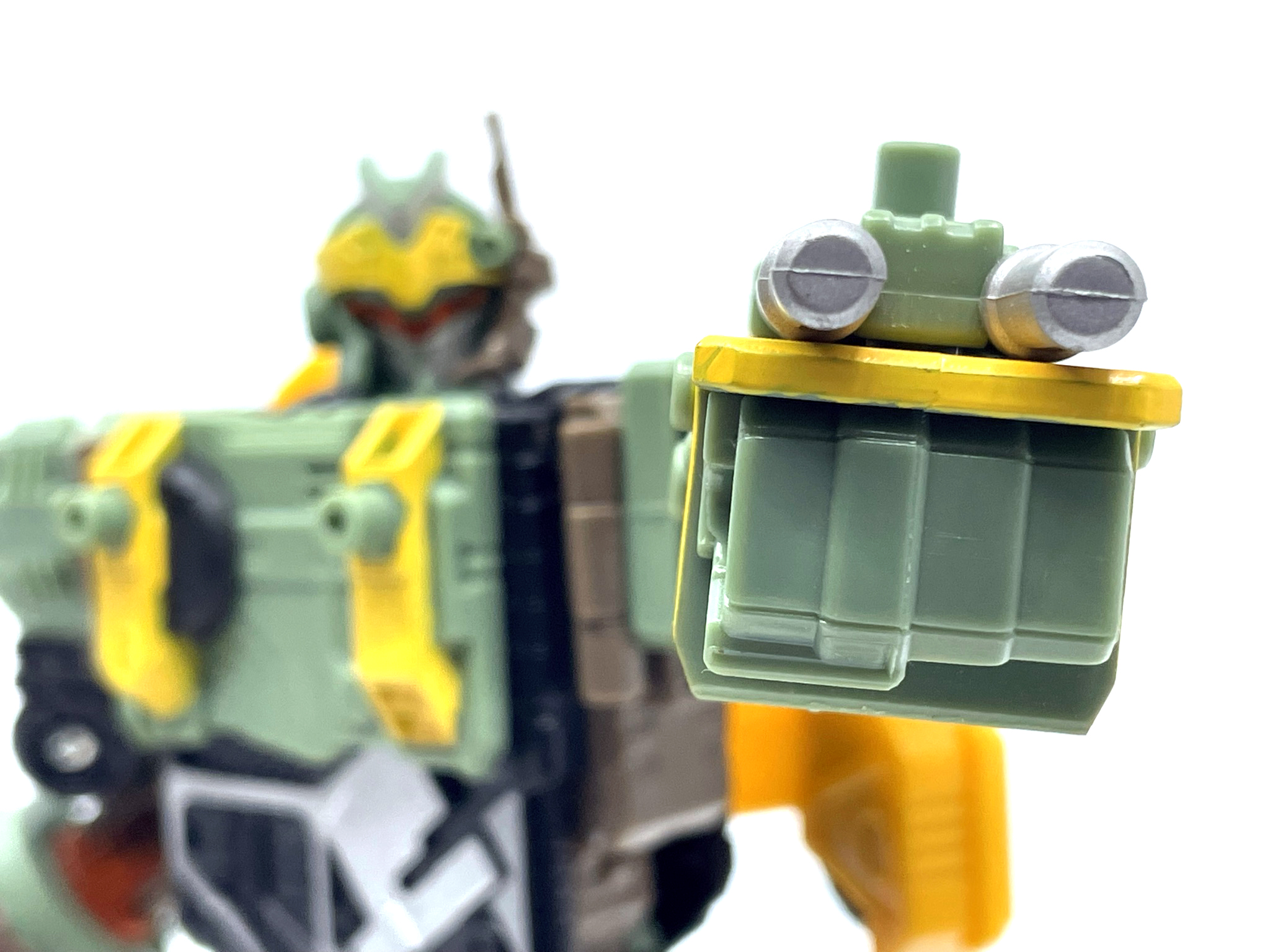 극중에선 손이 변형하면서 블래스터가 생기는 방식이었지만, 완구에선 비콘과 달리 그냥 손으로 무기를 잡는 방식.