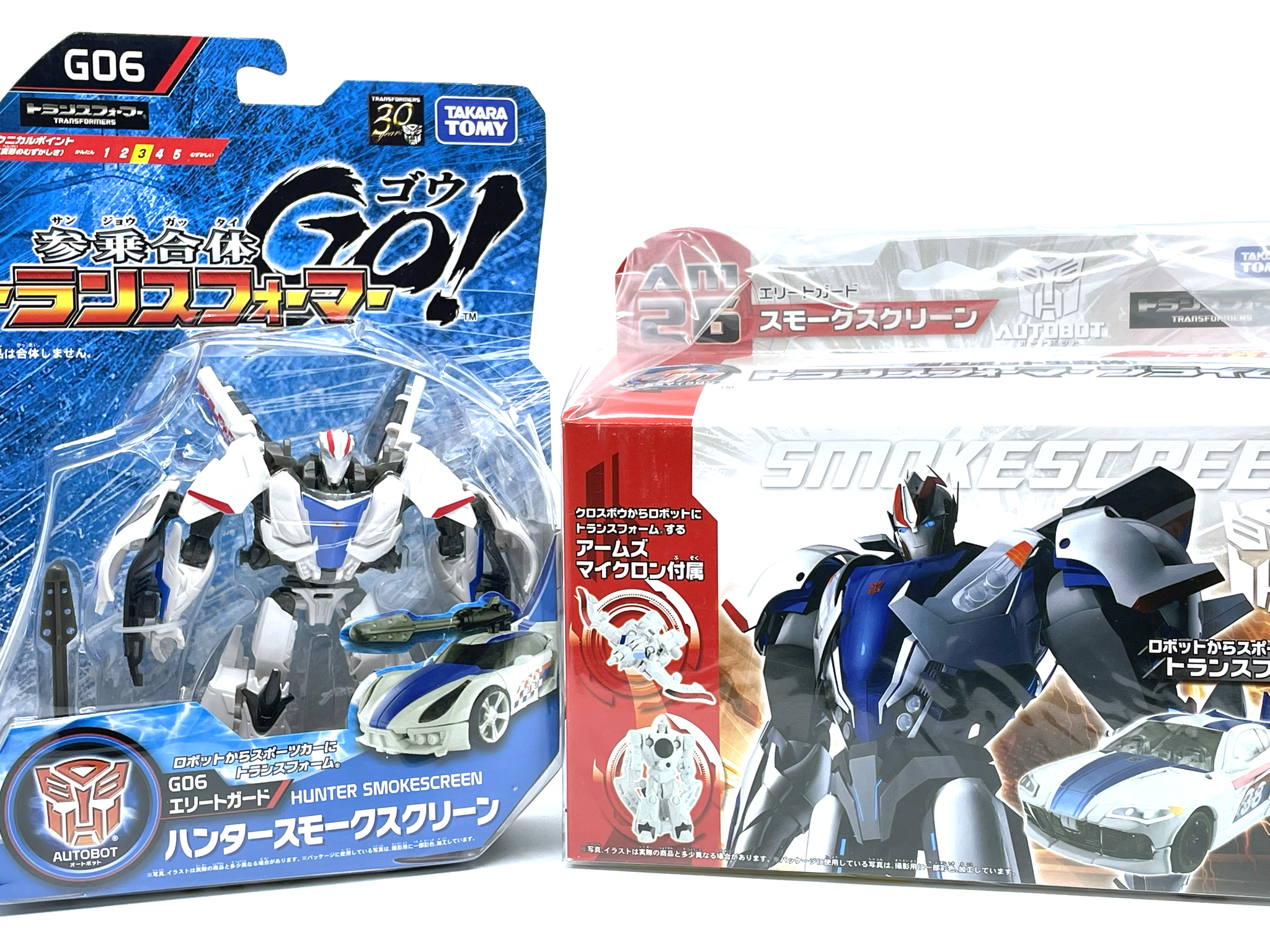 <삼중합체 트랜스포머 Go!>로 나온 헌터 스모크스크린. 이쪽이 <트랜스포머 프라임 비스트 헌터>에서 사용한 스모크스크린 조형으로 타카라토미판은 극중의 모습에 더욱 가까운 컬러링으로 출시됐습니다.
