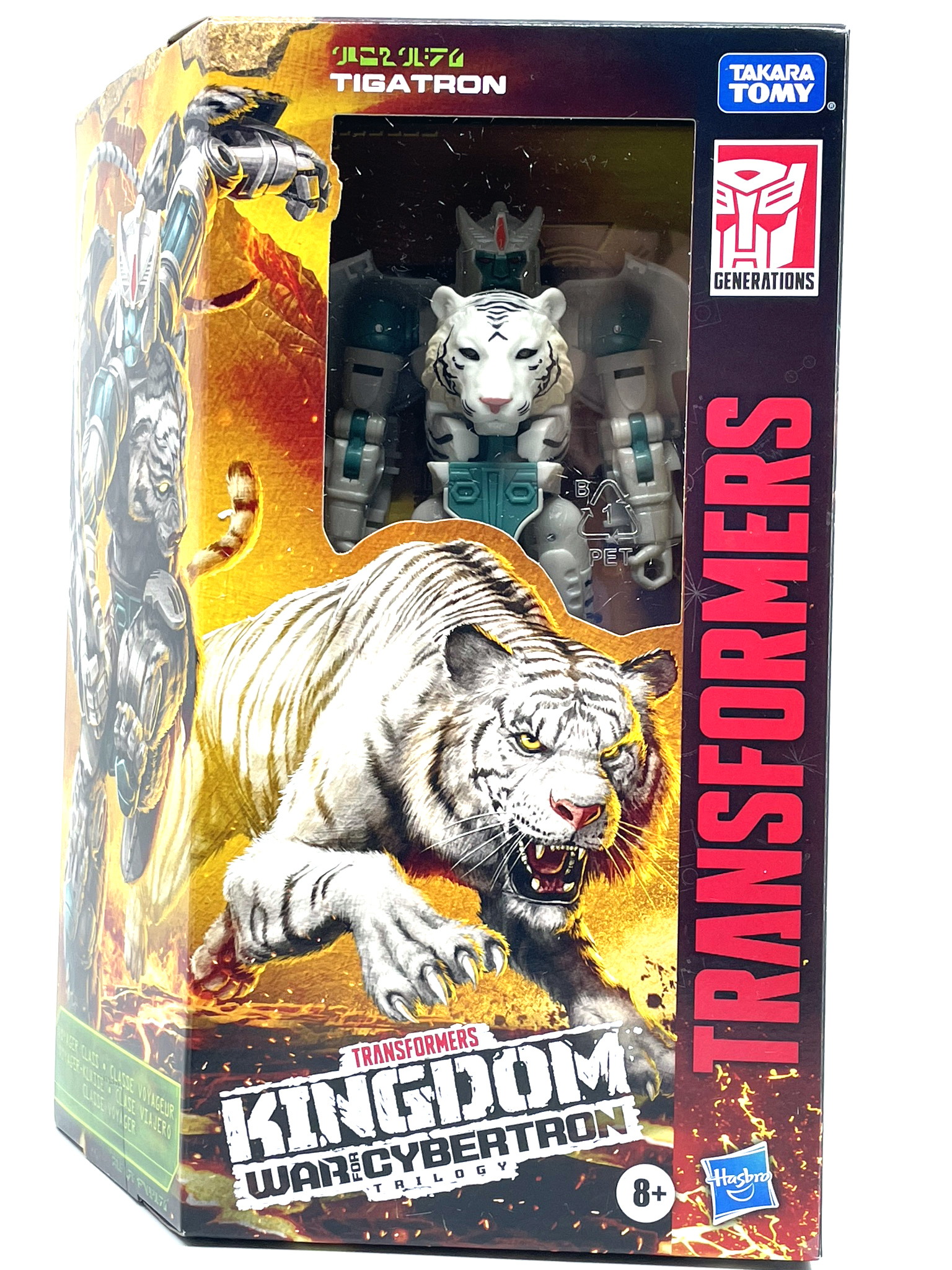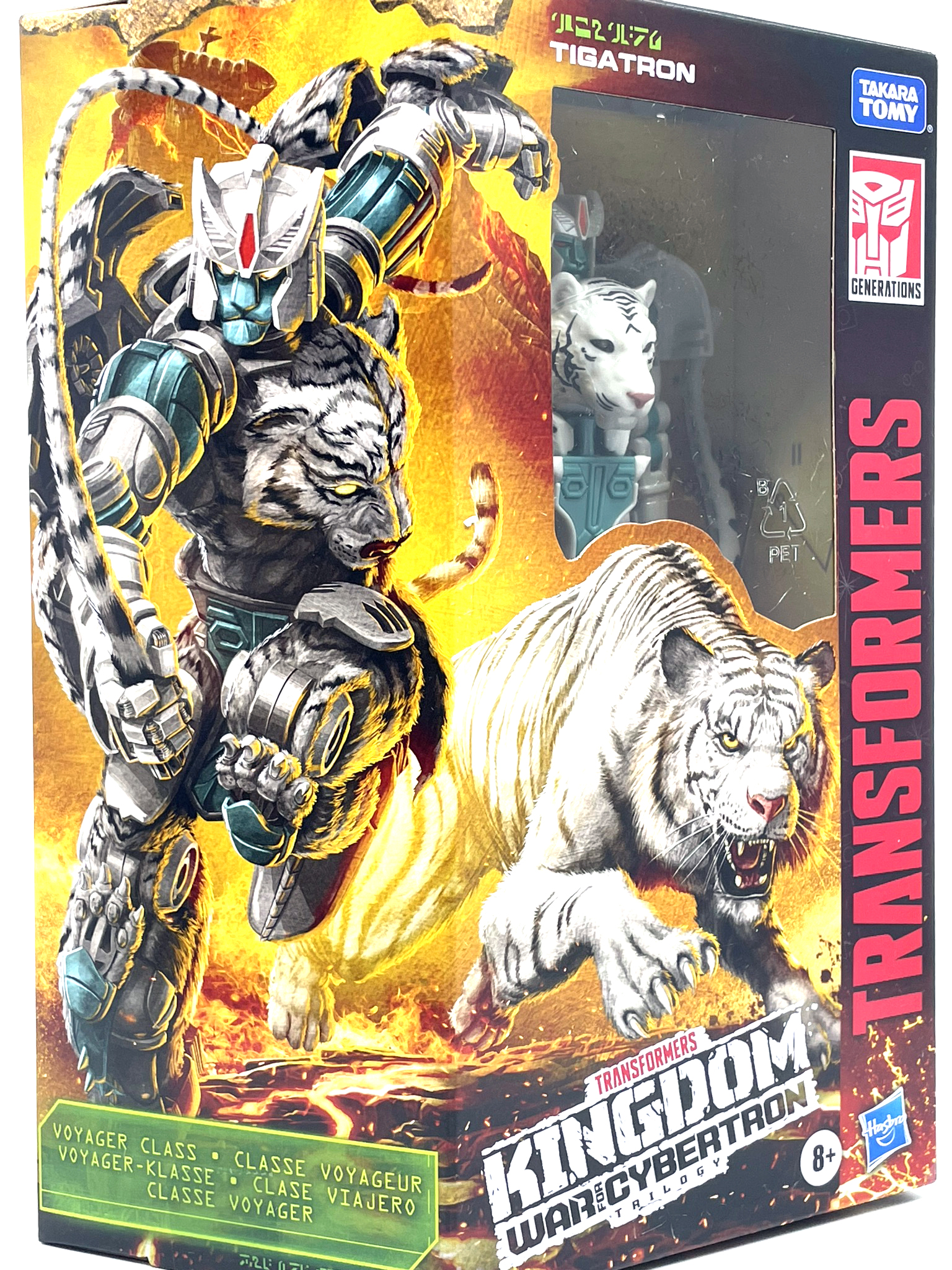 이번에 리뷰할 제품은 <트랜스포머: 워 포 사이버트론 트릴로지>의 마지막 장 '킹덤'의 웨이브 4 보이저급 제품인 맥시멀 타이거트론입니다. 애니메이션 <비스트 워즈>의 첫 신전사 캐릭터로 출연한 타이거트론은 호랑이, 그중에서도 백호로 변신한다는 유니크한 특성과 자연을 사랑하는 면모가 인상적이었던 캐릭터입니다.