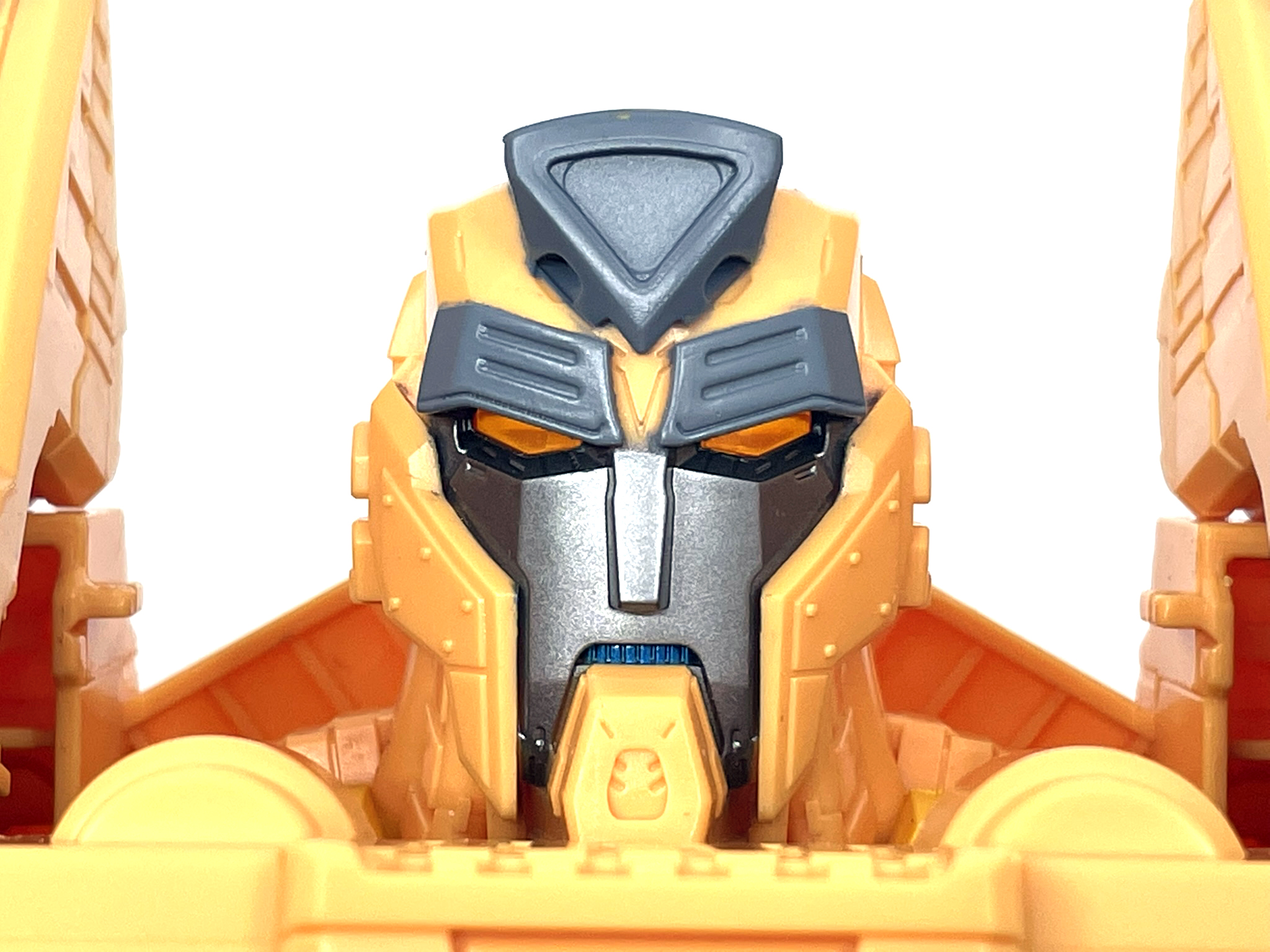 <트랜스포머 사이버트론/트랜스포머 갤럭시 포스>의 벡터 프라임처럼 얼굴은 오토봇 마크와 유사한 형태입니다.