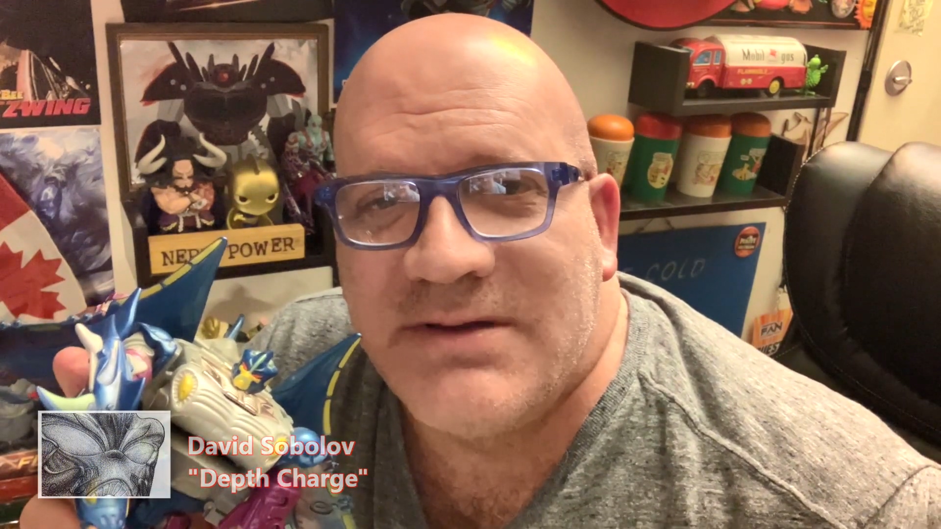 뎁스 차지 역의 데이비드 소볼로프. 소볼로프의 장식장에 그가 맡은 배역의 피규어를 볼 수 있습니다. <트랜스포머 프라임>의 쇼크웨이브, <가디언즈 오브 갤럭시 애니메이션>의 드랙스. <원피스>의 카이도, <인저스티스: 갓 어몽 어스>의 닥터 페이트 등 배역에 대한 애착이 많은 걸 알 수 있는 모습.
