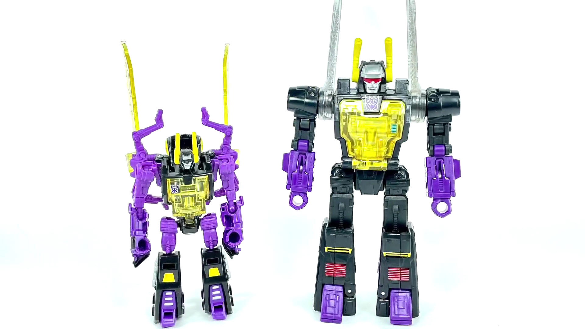 이전에 발매된 레전드급 킥백 제품과 비교. 약간의 각색이 들어간 레전드급과 달리 레거시 킥백은 G1 애니메이션의 모습을 거의 그대로 갖고 있습니다.