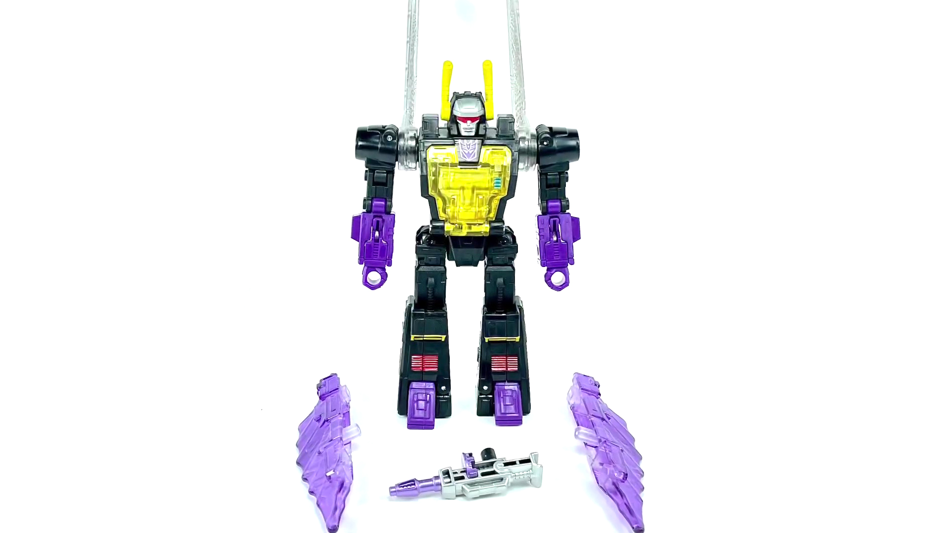 킥백 구성품. 에너존 블레이드와 총 액세서리 구성.