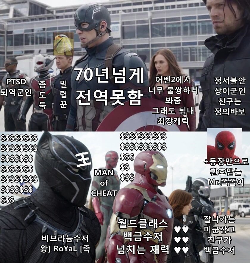 불과 5년 전엔 팀 아이언맨을 찬양하던 짤이 5년만에 뒤바뀐 상황.