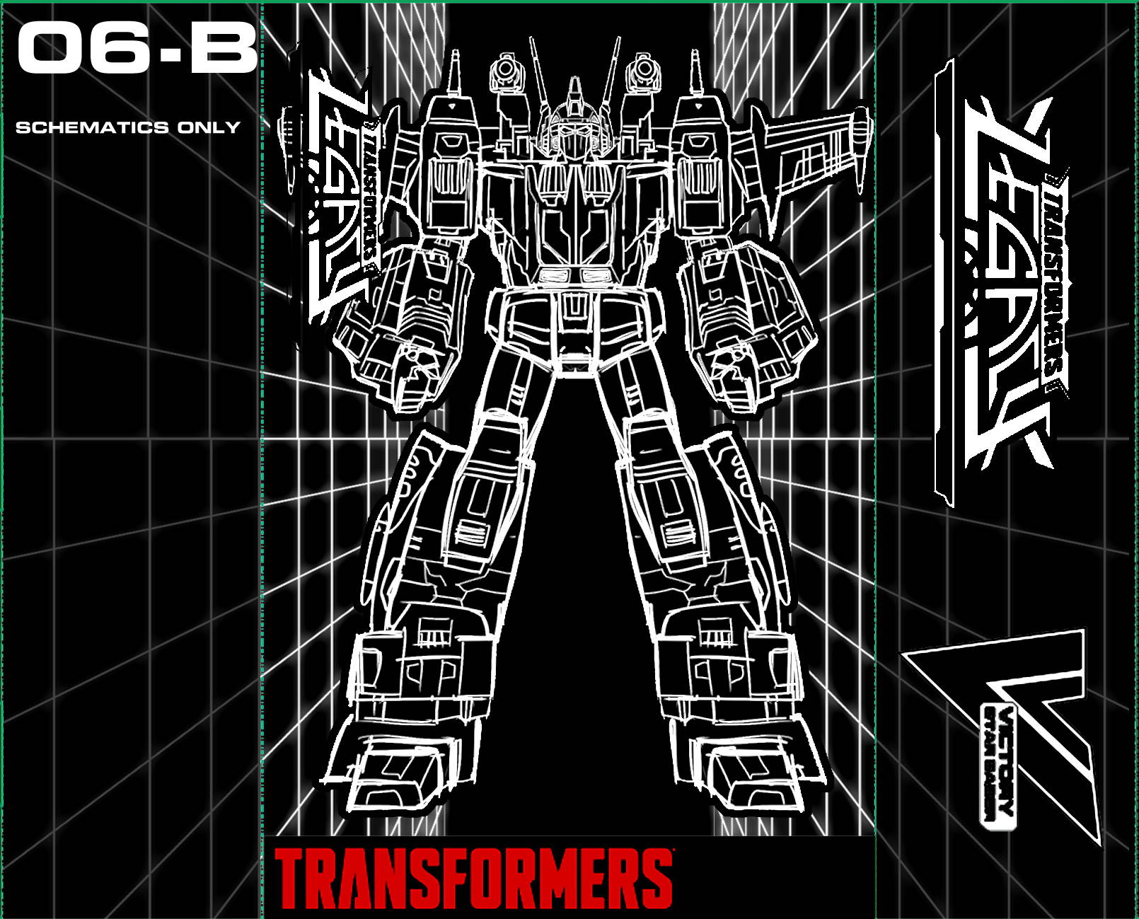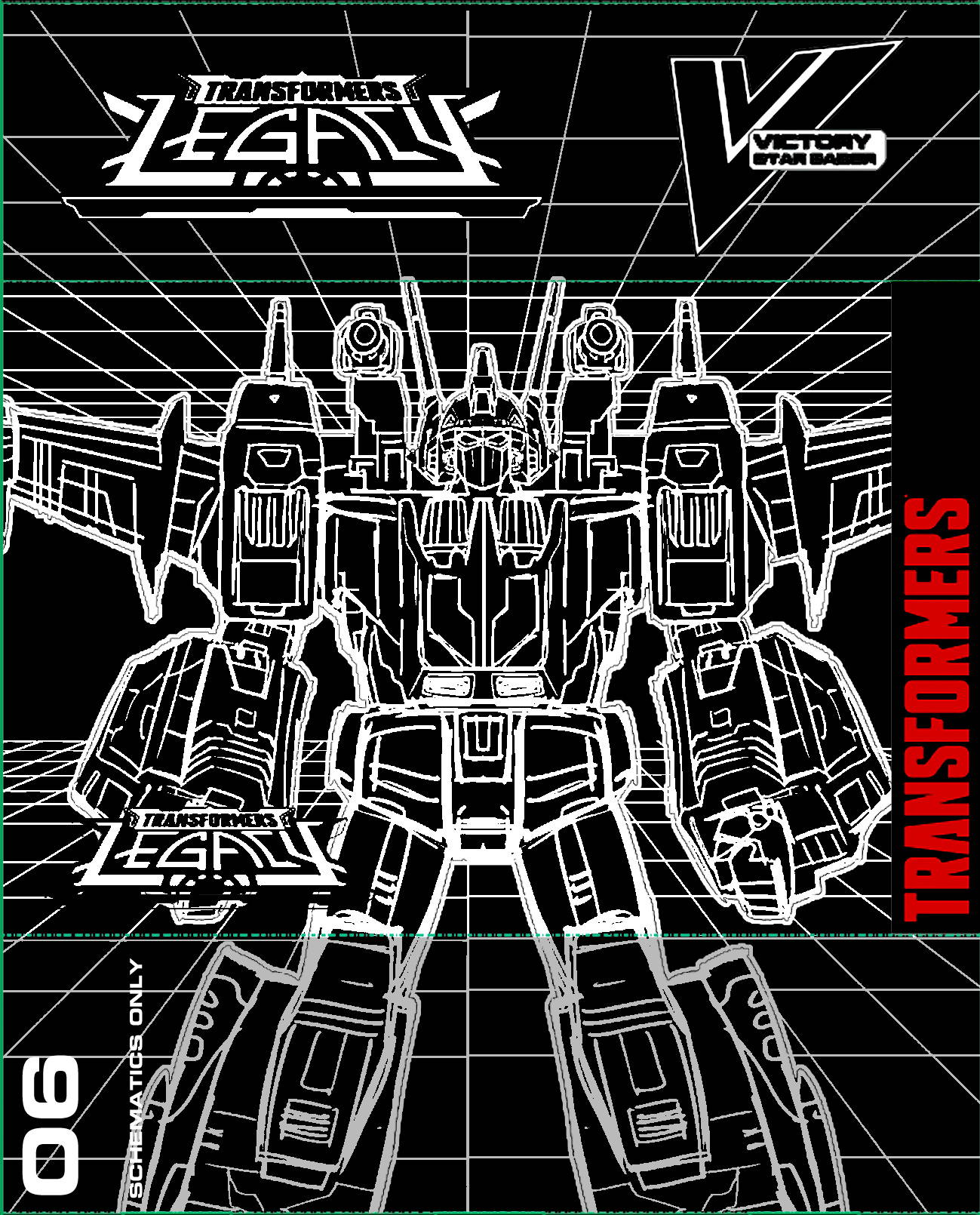 귀도는 우리 디자인 팀과 협력하여 스타 세이버, 빅토리 레오, 빅토리 세이버 결합 모드를 가장 잘 표현할 수 있는 다양한 스타일 옵션을 탐색했습니다. 그 구성이 우리의 포장 제약 조건에 어떻게 들어맞는지 테스트했지만 여전히 당신의 선반에서 멋지게 보일 겁니다. 고전적인 재포맷 격자선과 구조 스캔 디자인은 <트랜스포머 빅토리> 애니메이션의 중요한 부분이었고, 우리는 이를 최종 아트에 통합하고 싶었습니다.