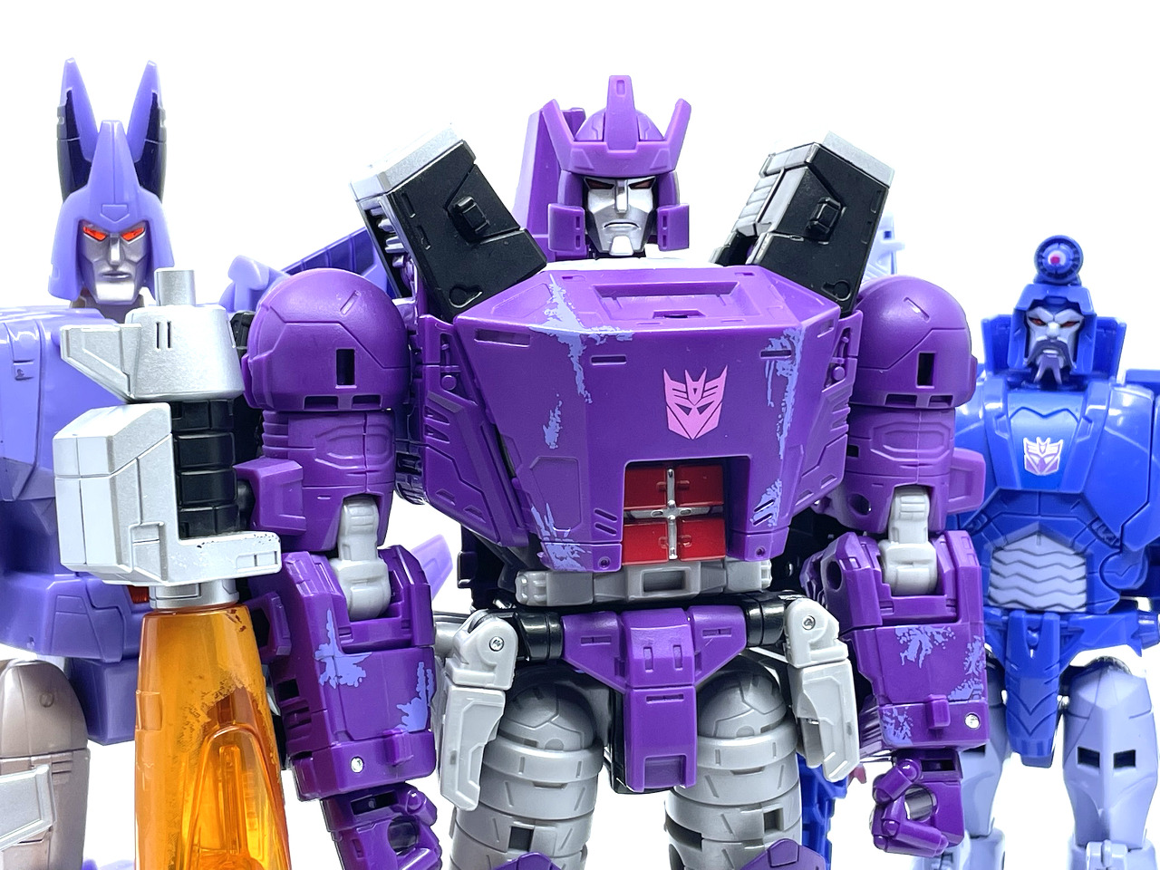 이번 갈바트론의 경우, 2021년에 발매했던 <트랜스포머: 워 포 사이버트론 트릴로지>의 마지막 장 '킹덤'의 리더급 갈바트론의 재포장 상품입니다. 이번에 갈바트론 몰드를 벌써 네 번째로 활용하는 케이스인데 킹덤 버전의 전투 대미지 데코를 지운 상태로 발매하는 것에 주목합니다.