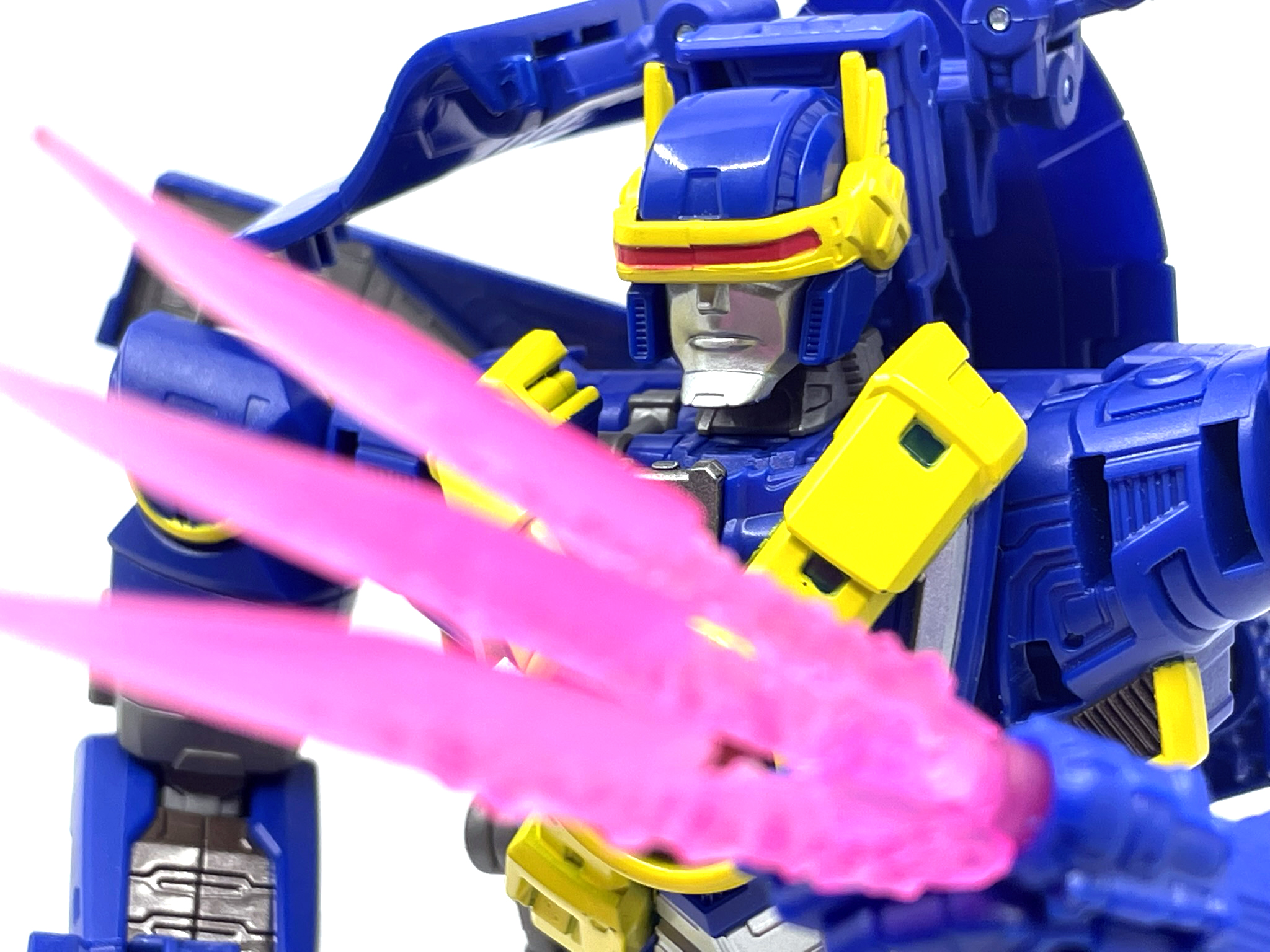 비클 모드는 엑스 제트. 정확히 1990년도에 방영한 엑스맨 애니메이션의 엑스 제트가 모델입니다. 애니메이션에서 나온 엑스제트는 특유의 디자인 탓에 트랜스포머 제품과 다르긴 하지만, 특유의 색감에서 이 녀석이 모티브임을 알 수 있습니다.