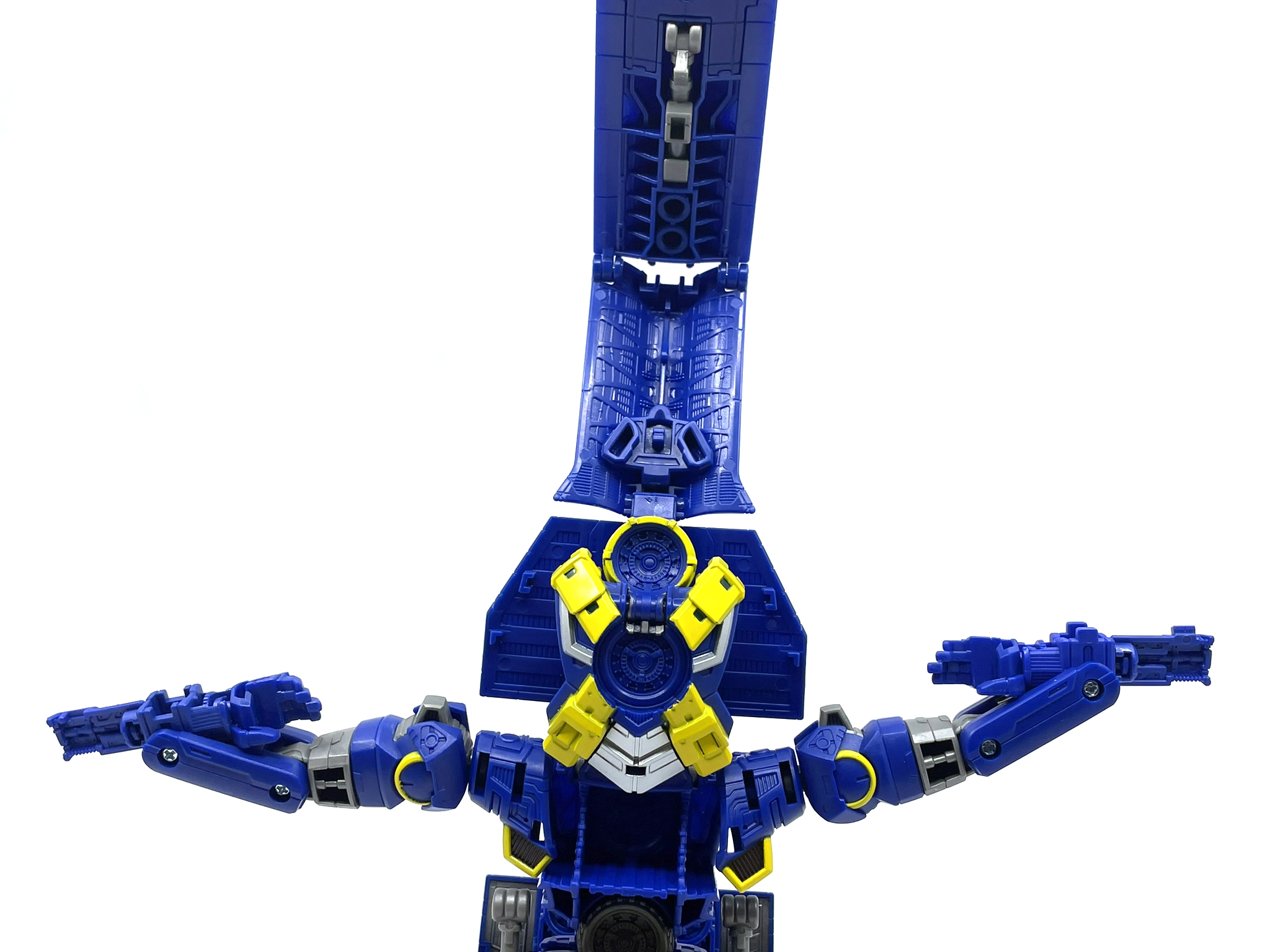 어스라이즈 옵티머스 프라임이 약 17cm 정도이고 스튜디오 86 리더급 그림록이 약 21cm 정도인데, 얼티밋 엑스 스팬스는 머리 높이가 약 23cm 정도입니다. 커맨더급이나 타이탄급을 제외하면 소장하는 리더급 제품 중에선 가장 키가 급니다.