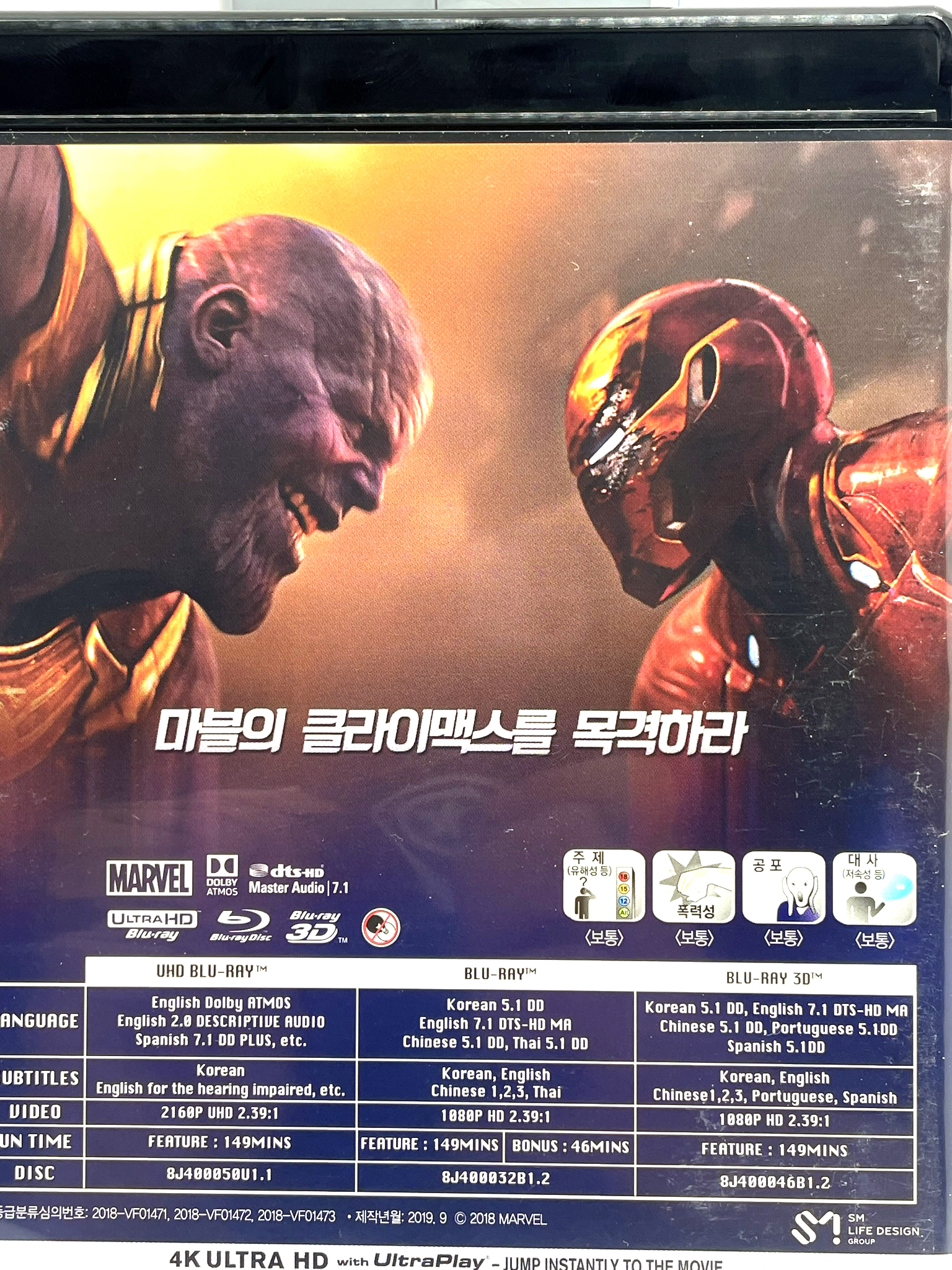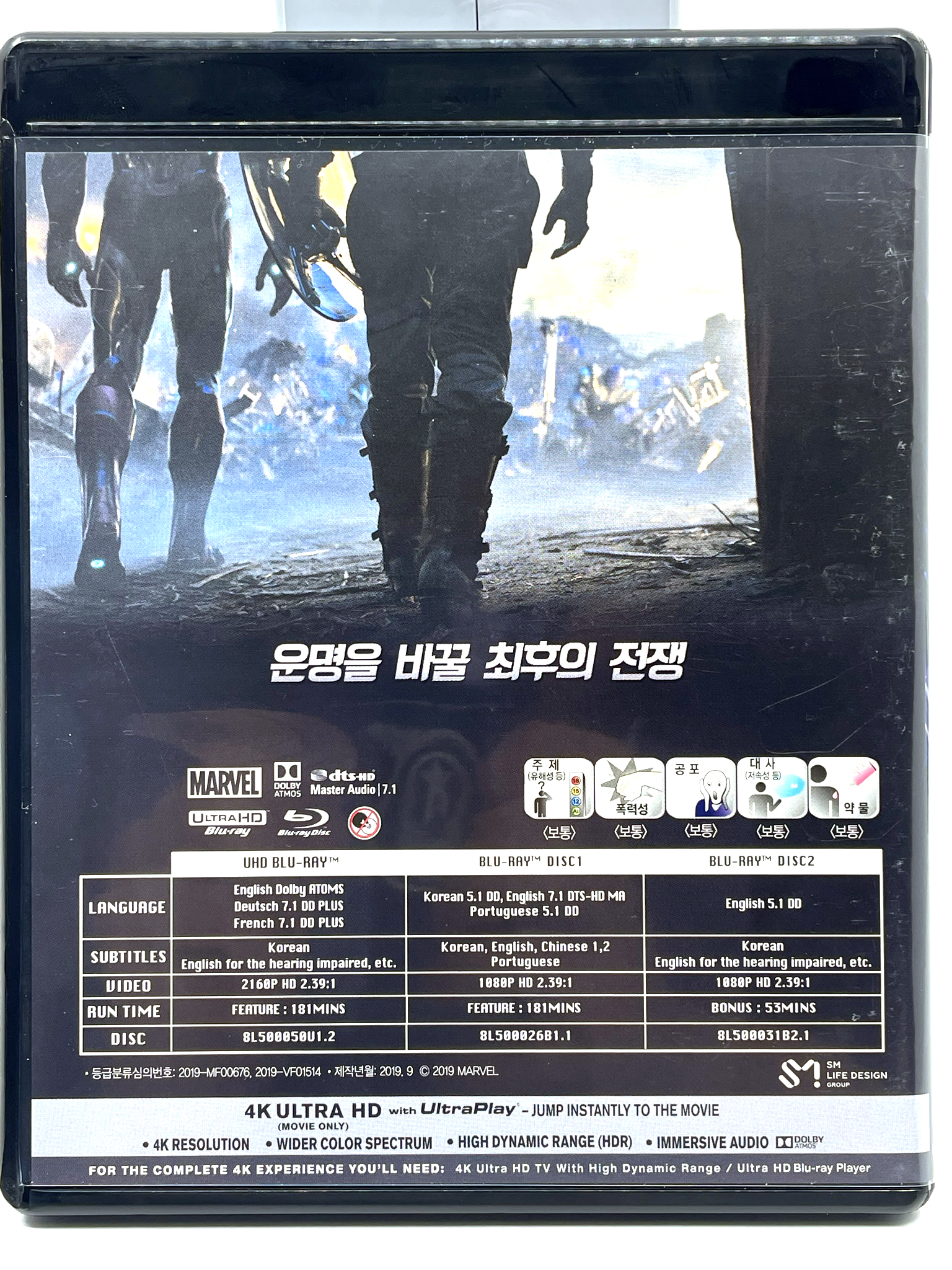 2019년에 개봉한, 사실상 MCU의 마지막 뽕을 책임진 영화 <어벤져스: 엔드게임> 패키지.