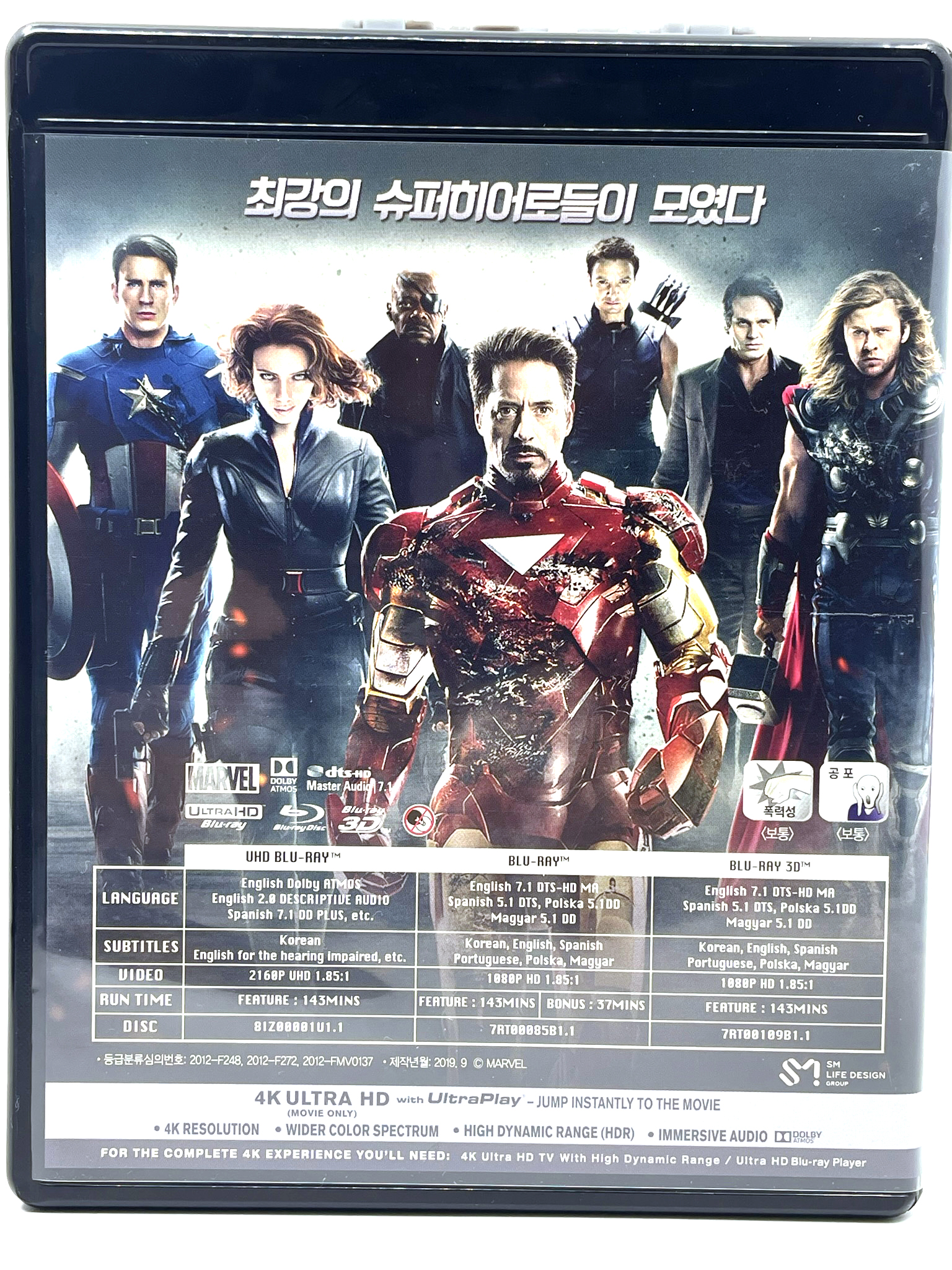 네 개의 어벤져스 영화가 모두 들어간 패키지입니다. 각 작품의 로고를 합친 형상이 인상적.