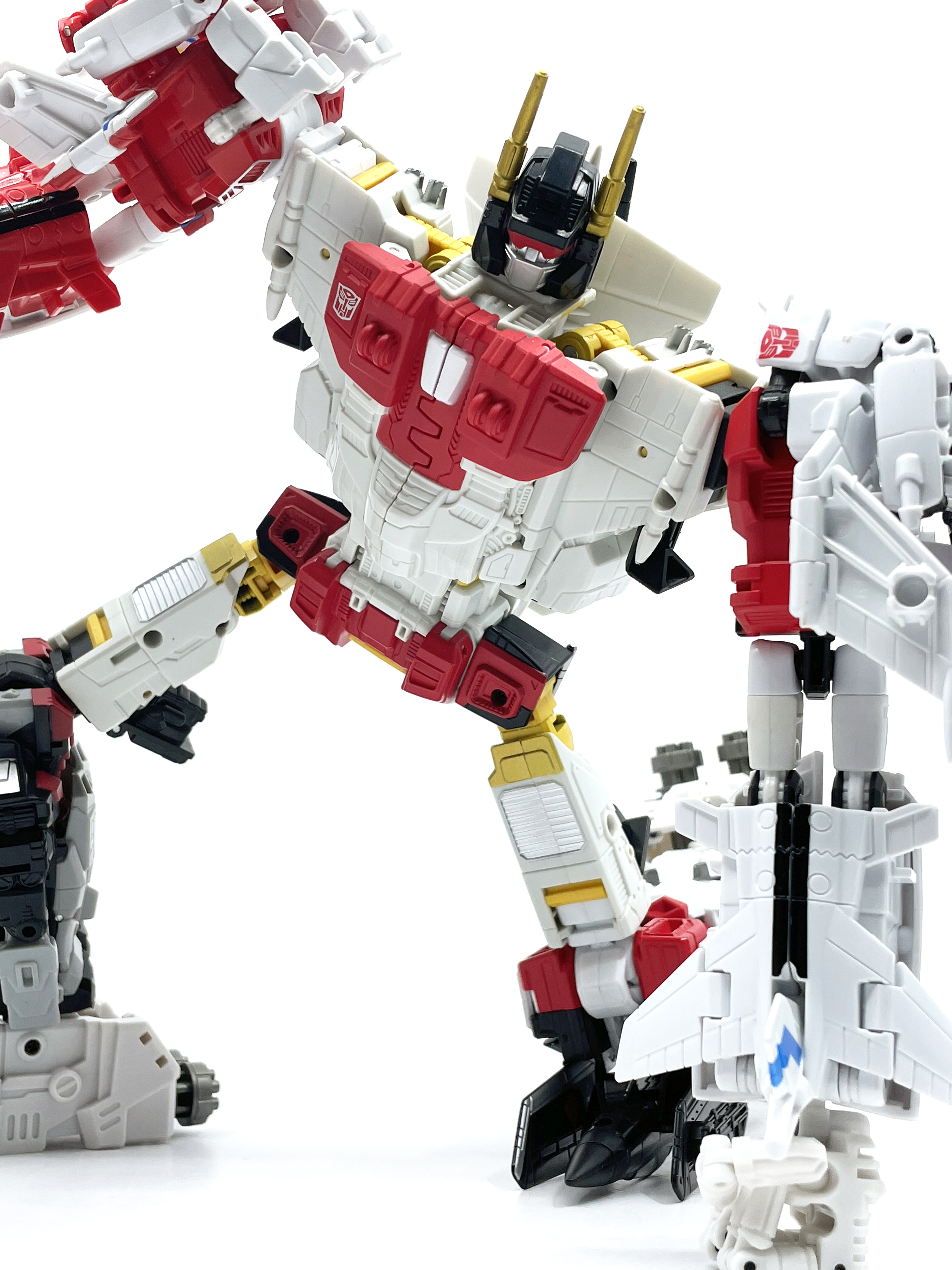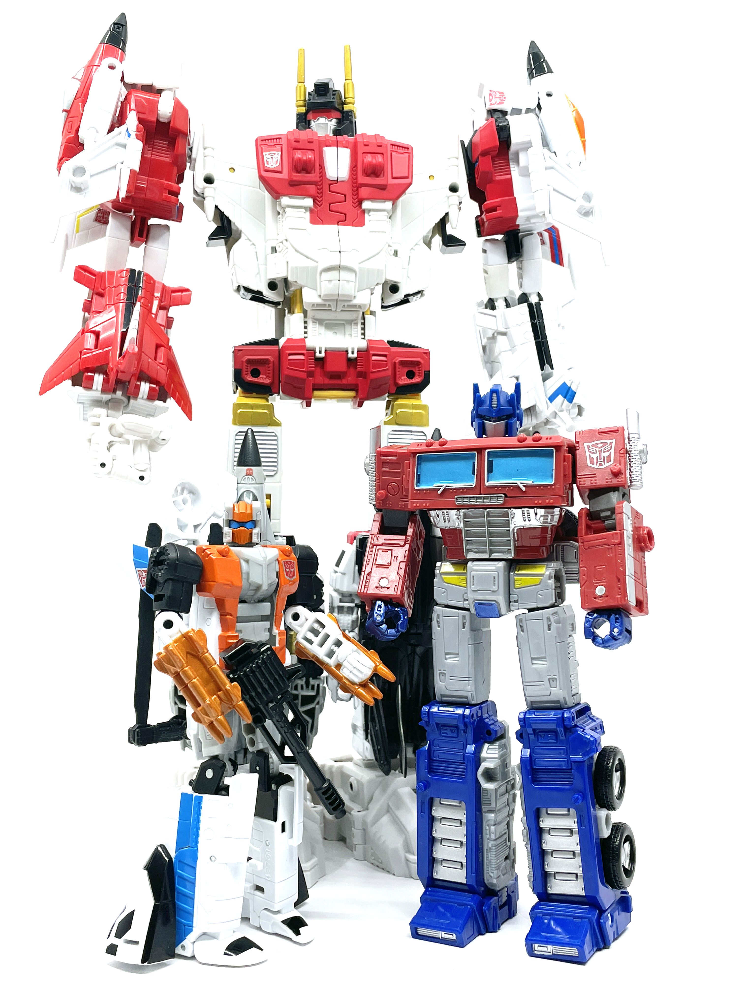신규 멤버인 알파 브라보와 창조자인 옵티머스 프라임과 함께.
