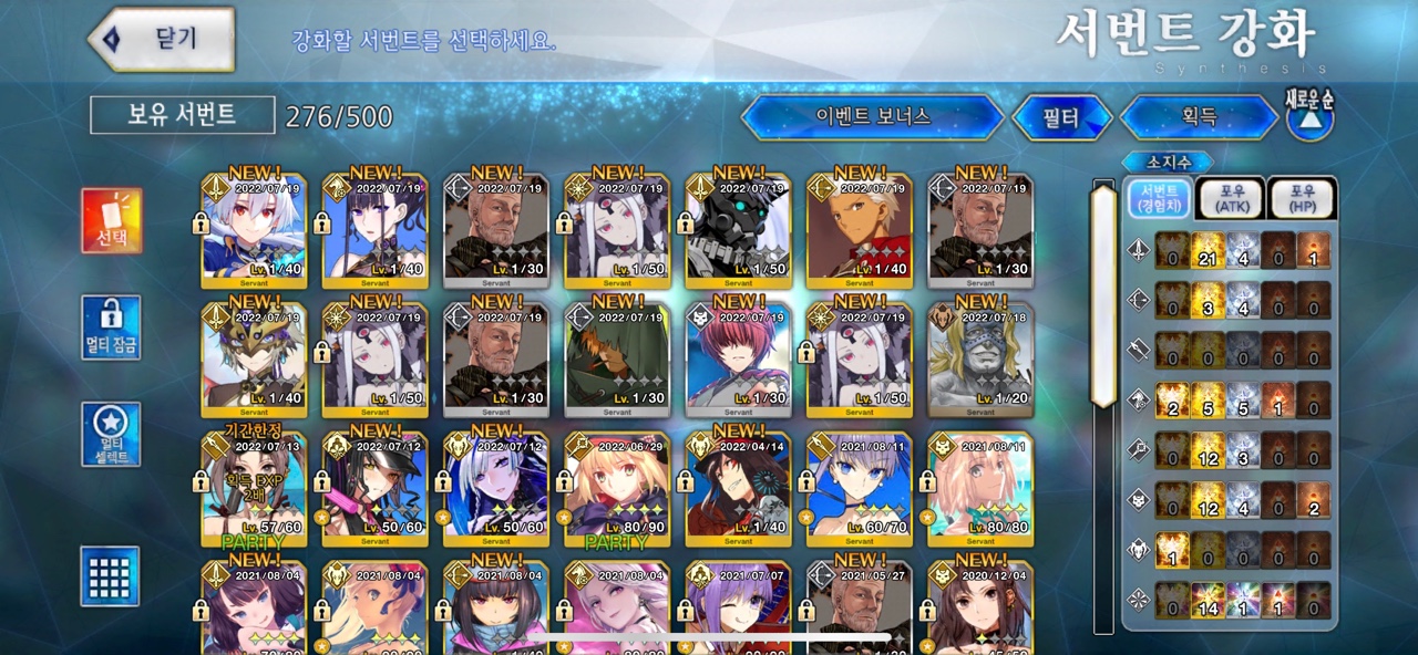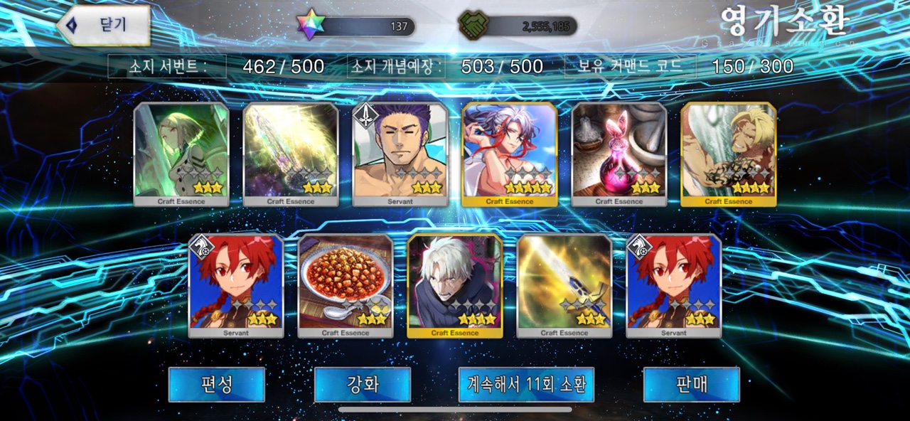 결국 추가 과금 대신 성정편 교환을 선택. 총 60개의 성정편을 교환해 22회 소한을 시도했습니다.