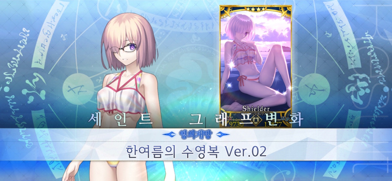 새로운 수영복을 제공 받은 마슈 키리에라이트.