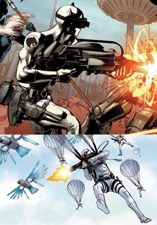 하투트 제라제는 양산형 비브라늄 수트를 입은 와칸다의 특공대 조직입니다. 흰색 복장이 특징.