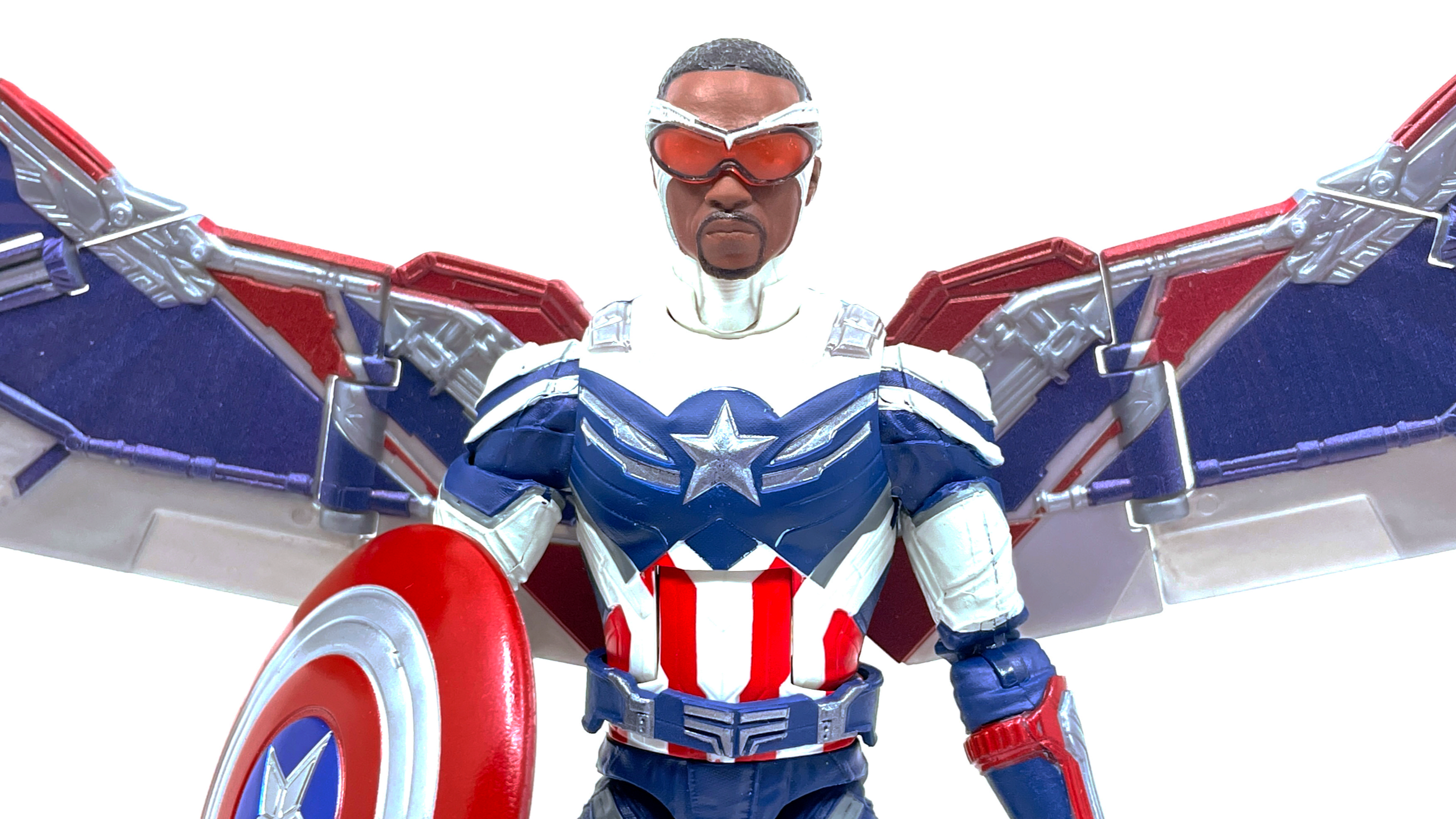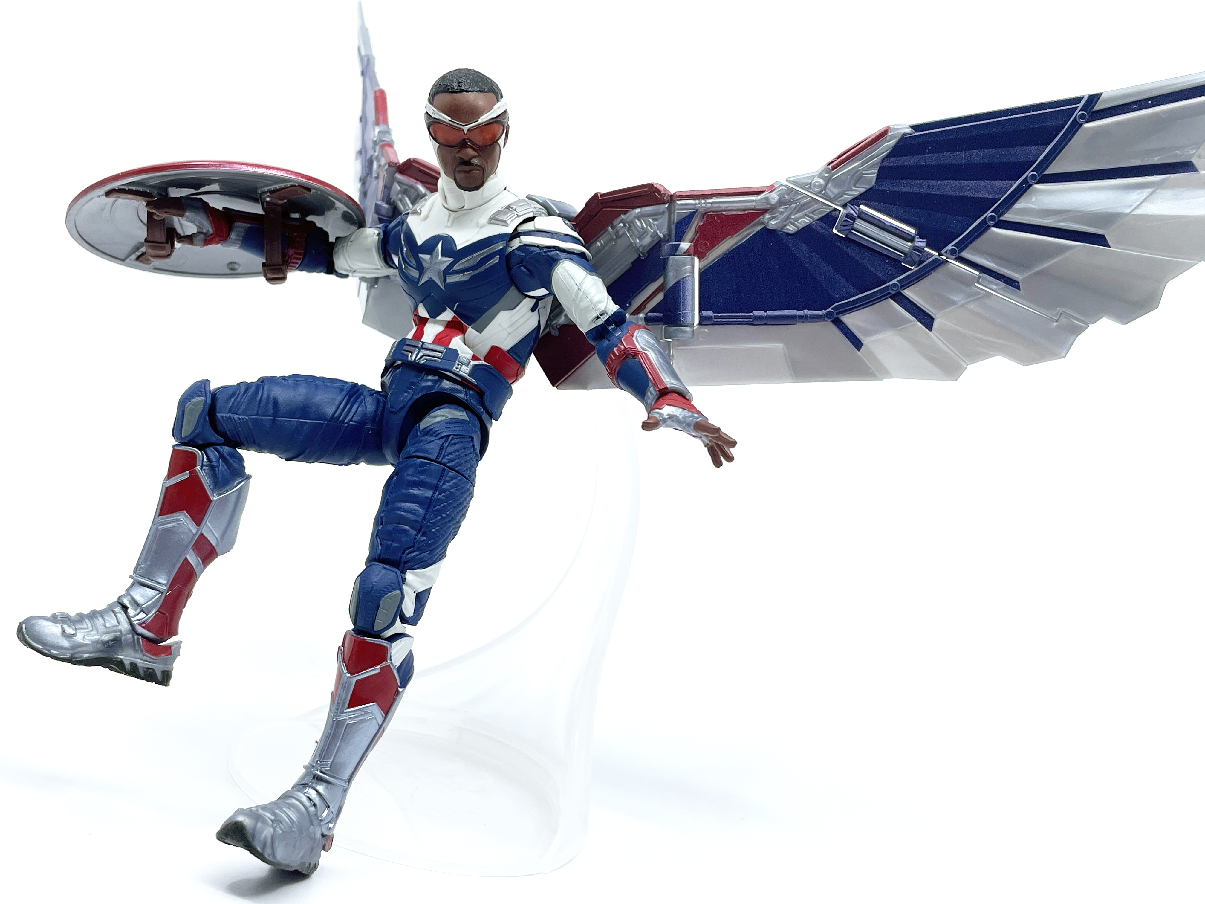 만화에서 나오는 샘 윌슨 캡틴 아메리카의 디자인을 거의 그대로 가져온 느낌입니다. 너무 그대로 가져와서 색이 좀 튀는 감도 있지요.