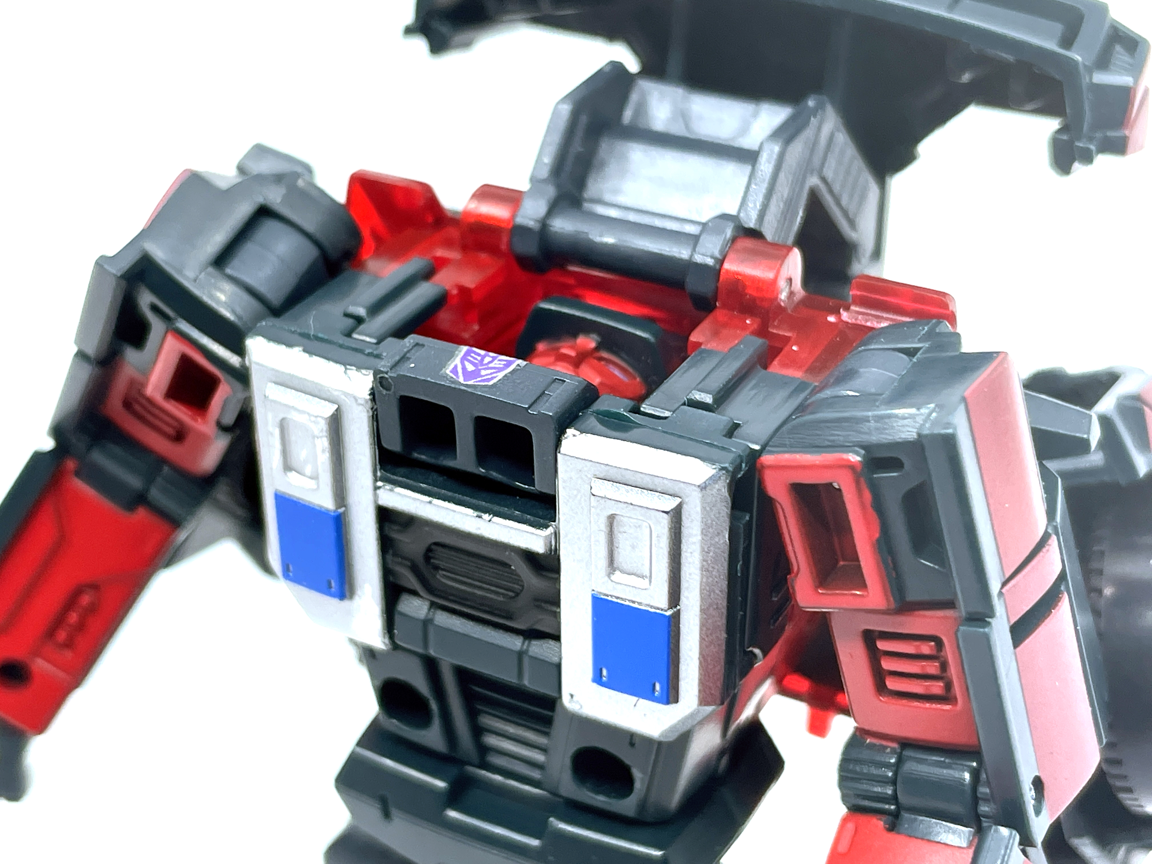 본래 디셉티콘 마크가 달려 있을 곳에 디셉티콘 마크가 없어 데칼 스티커를 붙여줬습니다.