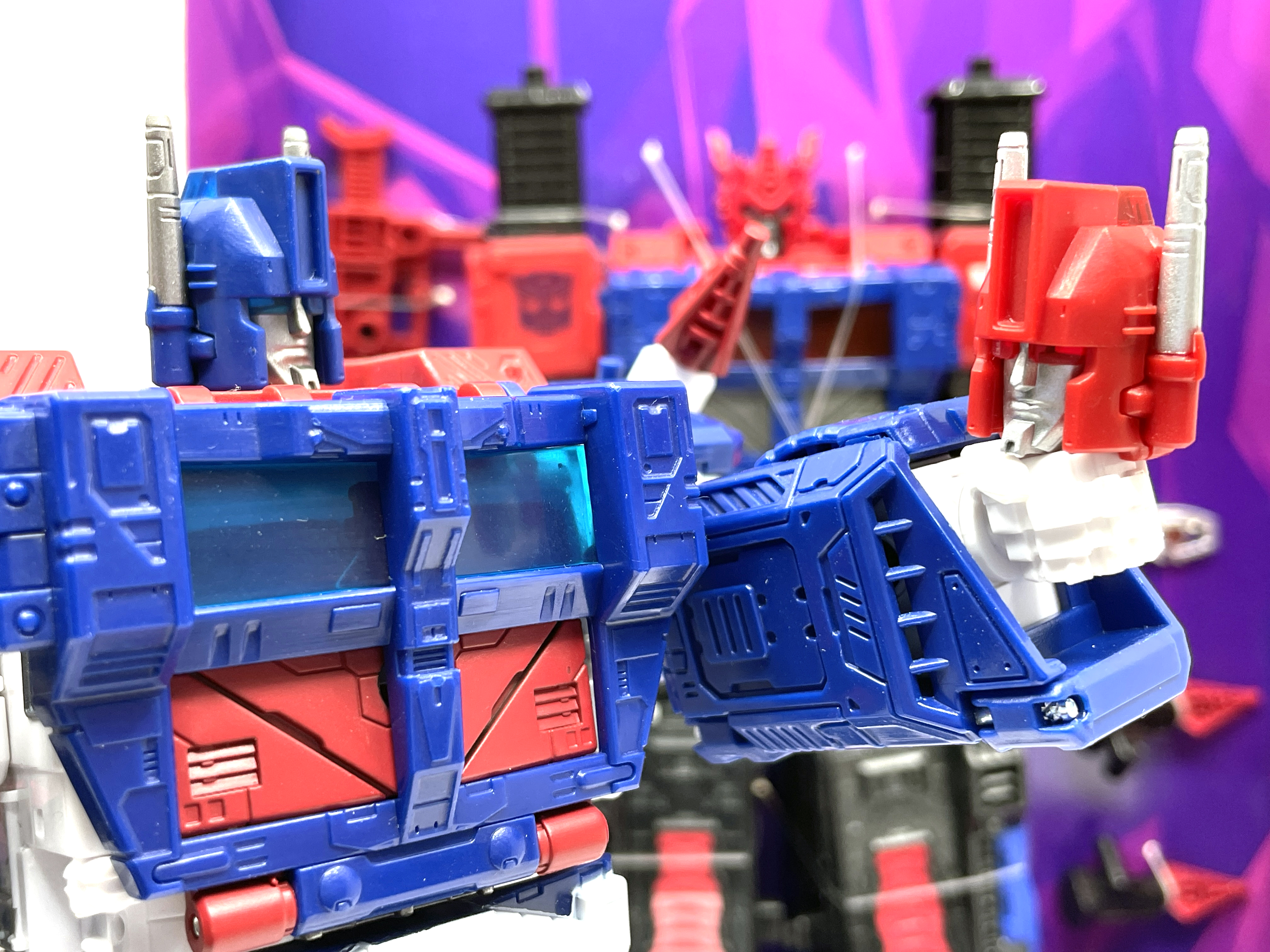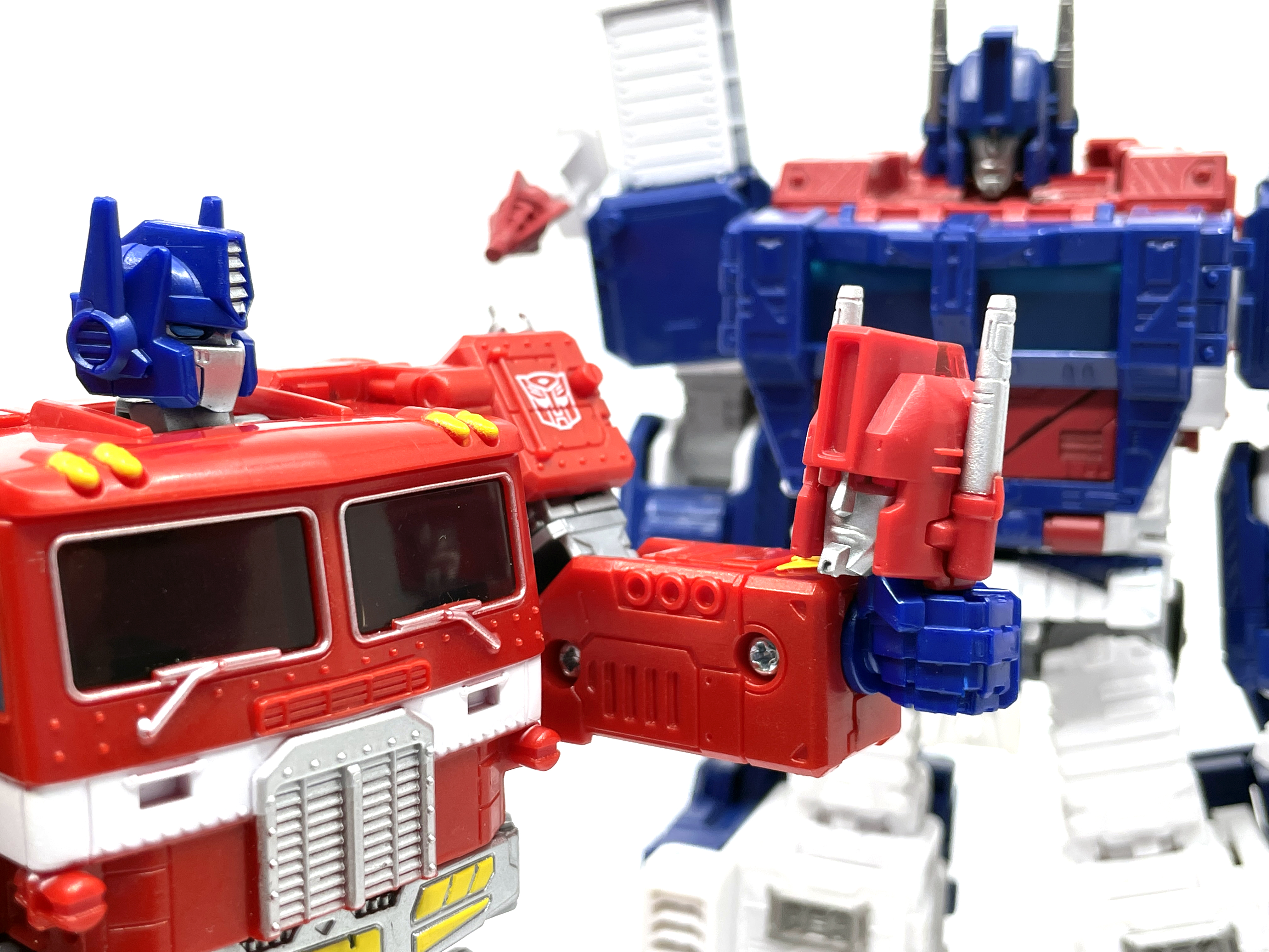 SG 울트라 매그너스를 저지하는데 성공한 옵티머스 프라임. 리부트 전 SG 울트라 매그너스는 다른 차원을 멸망시킨 전적이 있던 녀석이라 타협이 안 되는 적이라 처단했지만, 매그너스는 그래도 다른 우주의 자신이라 좀 찜찜해 합니다.