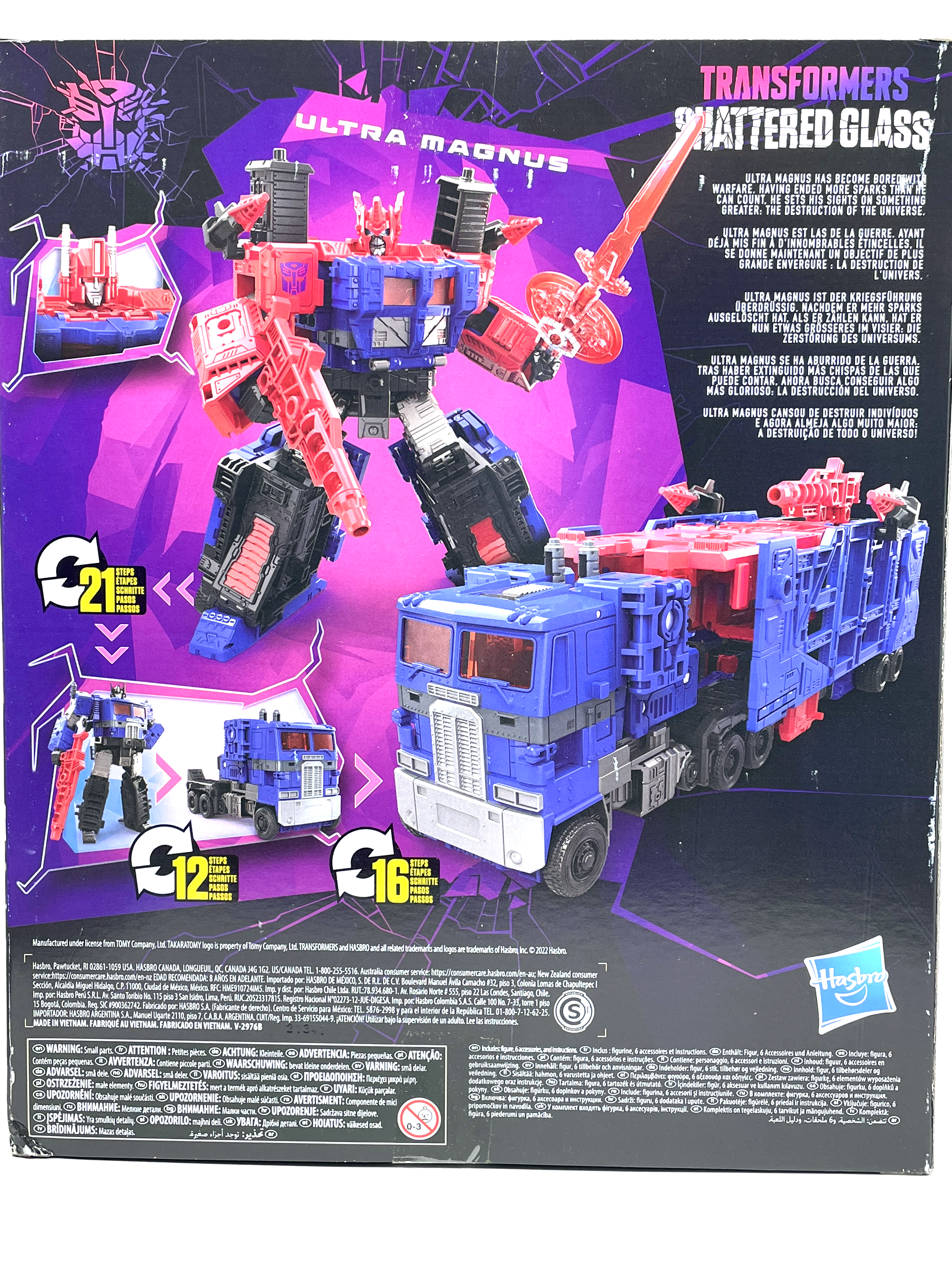 흉악한 SG 울트라 매그너스의 얼굴이 그려진 측면 일러스트와 박스 뒷면.