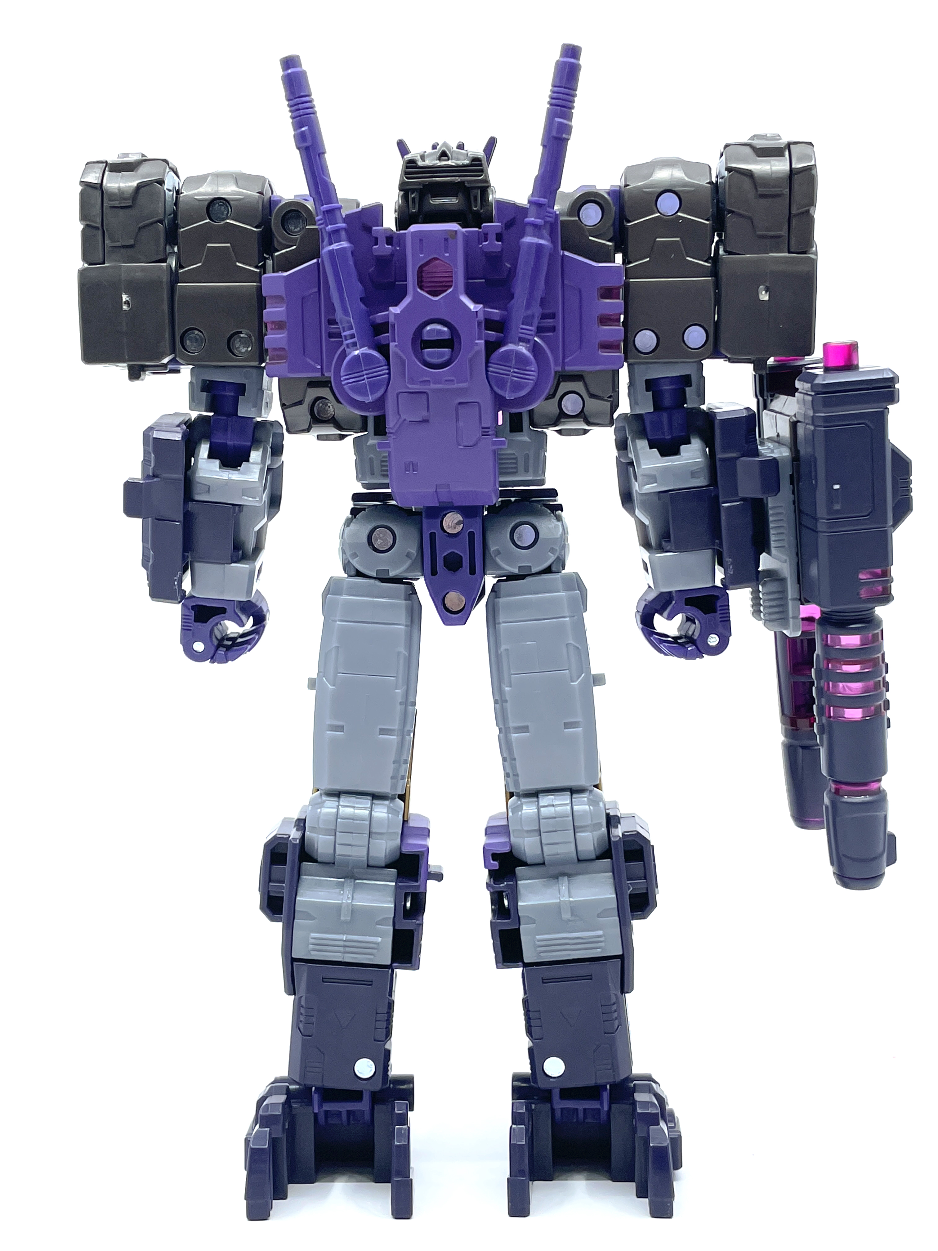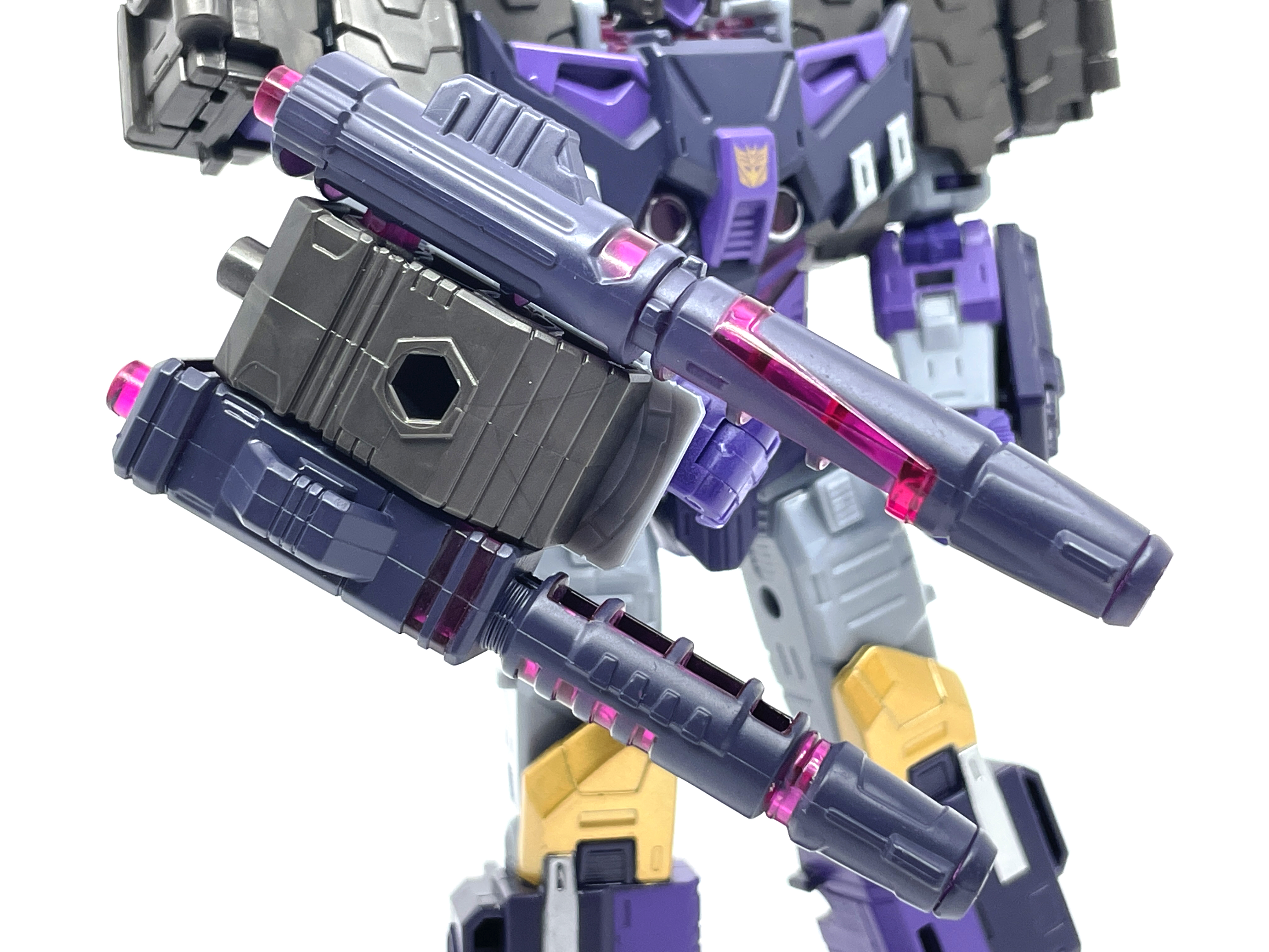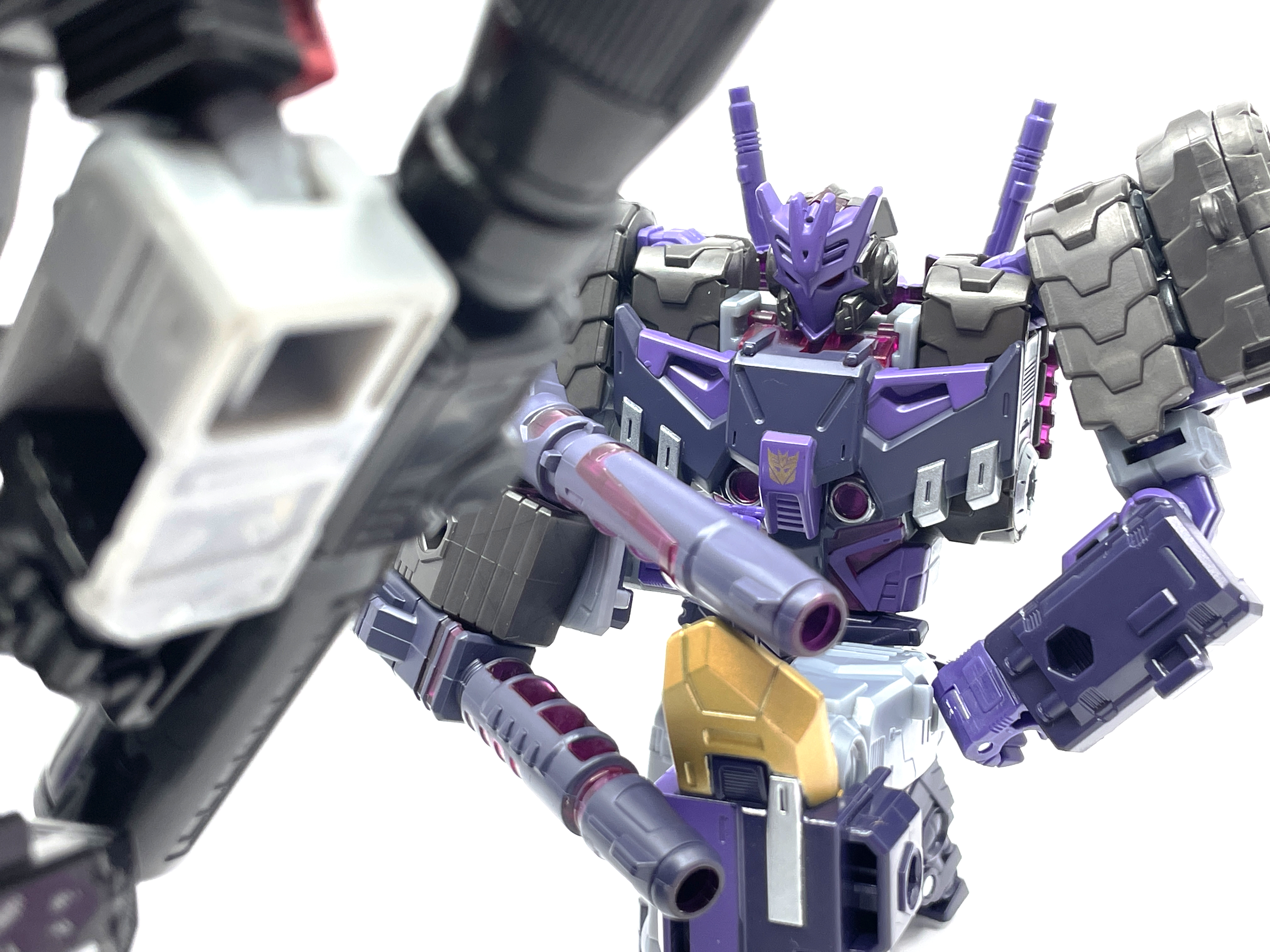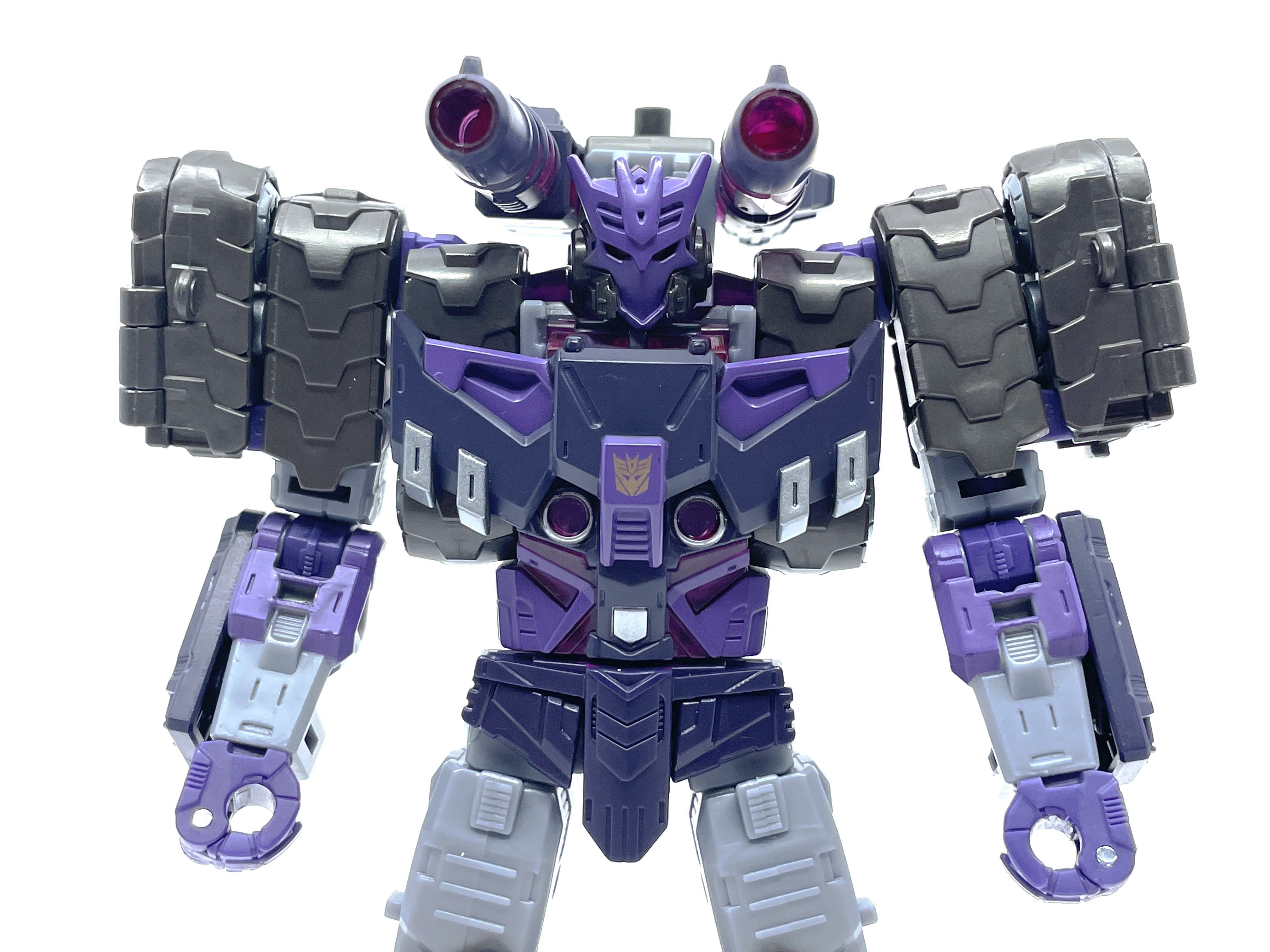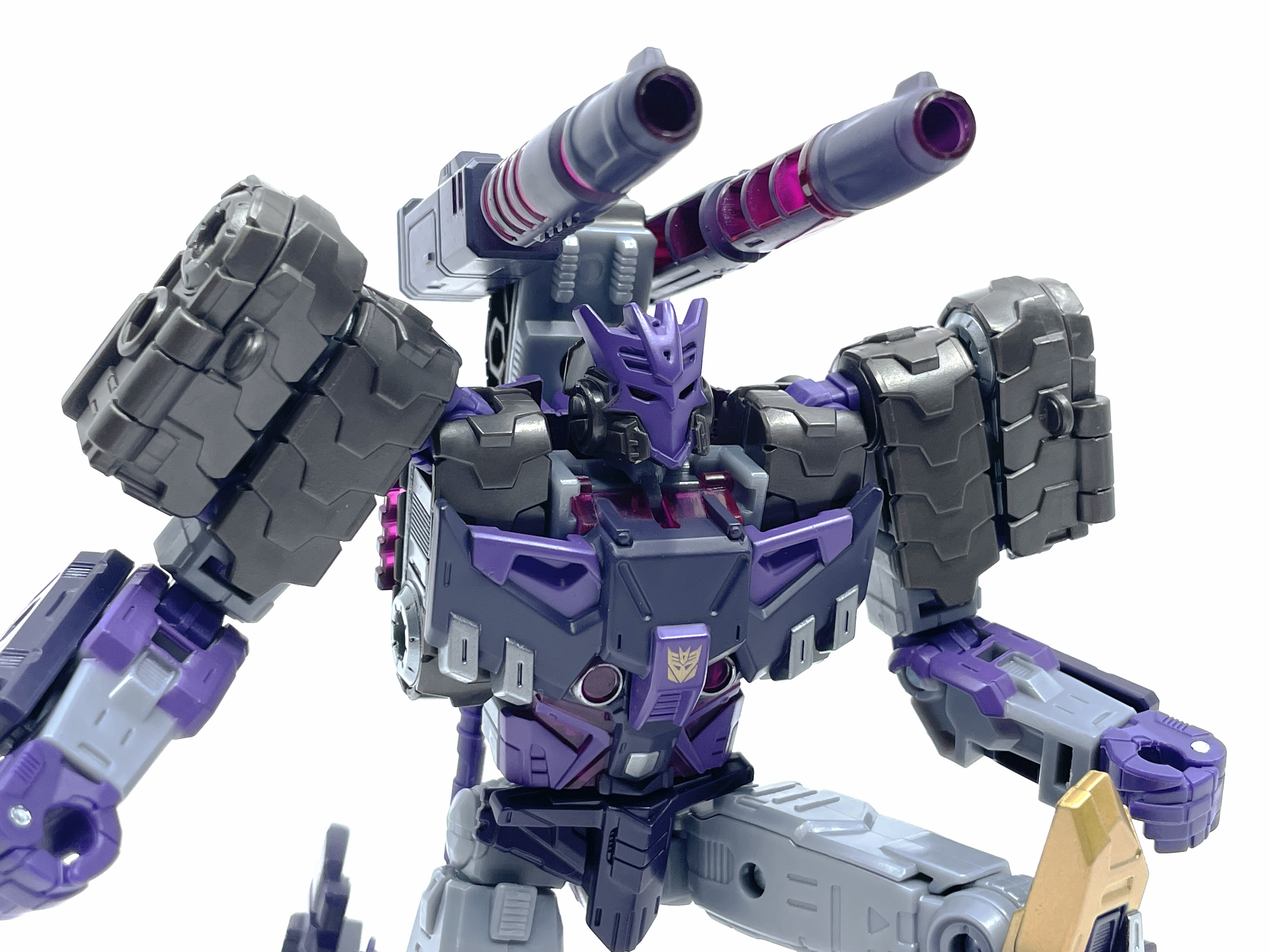 무한궤도 어깨가 인상적이고 한쪽 팔엔 메가트론과 동일한 무장인 융합포가 달린 형상입니다.